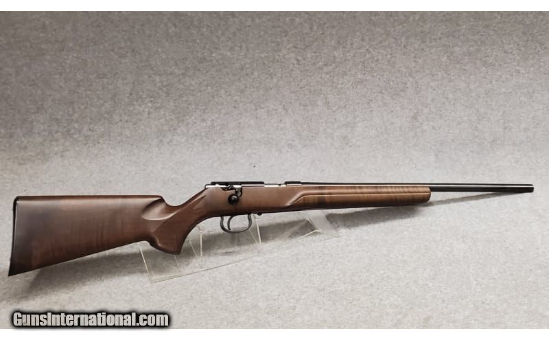 Description: The Anschutz 1517 is a fantastic shooter. The 23-inch Medium weight barrel holds tight groups and the classic walnut stock is a looker. The 1517 is sure to excel at the range as well as in the woods. This easy-to-handle hunting stock, made of lacquered walnut, directs the recoil evenly and horizontally to the rear to the black recoil-reducing synthetic butt plate, considerably reducing recoil that is felt. The action is used in the Anschutz 1517 is the Model 64. This is a bolt action with cam cocking, claw extractor, additional cartridge holder and ejector. Telescopic sight mounting is by an 0.43" wide Anschutz Wave Style V-block dovetail rail or by additional drilled and tapped holes. .17 HMR SOLD Chambers: .17 HMR Metal Condition: Very Good Wood Condition: Very Good Bore Condition: Very Good Barrels: 23" Barrel Weight: 6 lbs Sights: Drilled and tapped Item Location: Berlin |