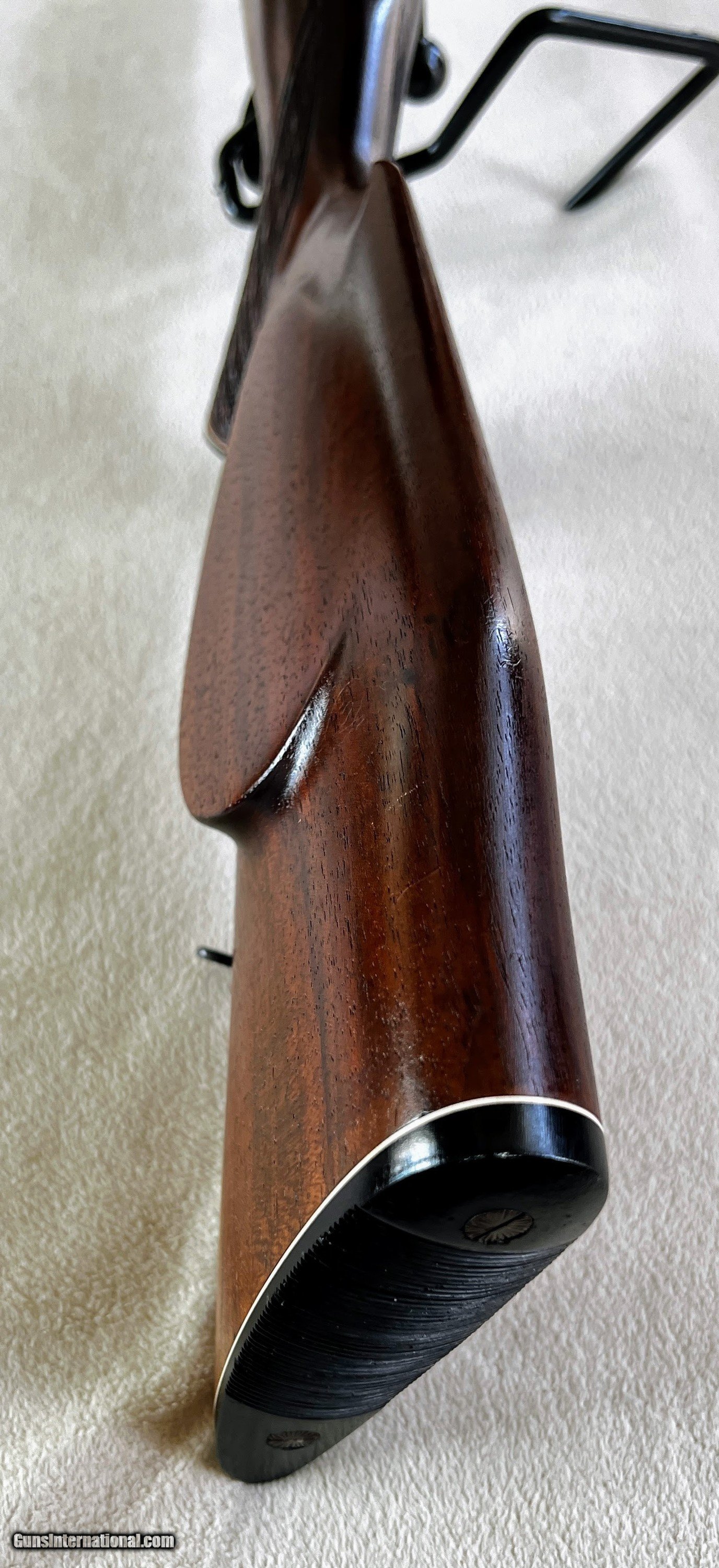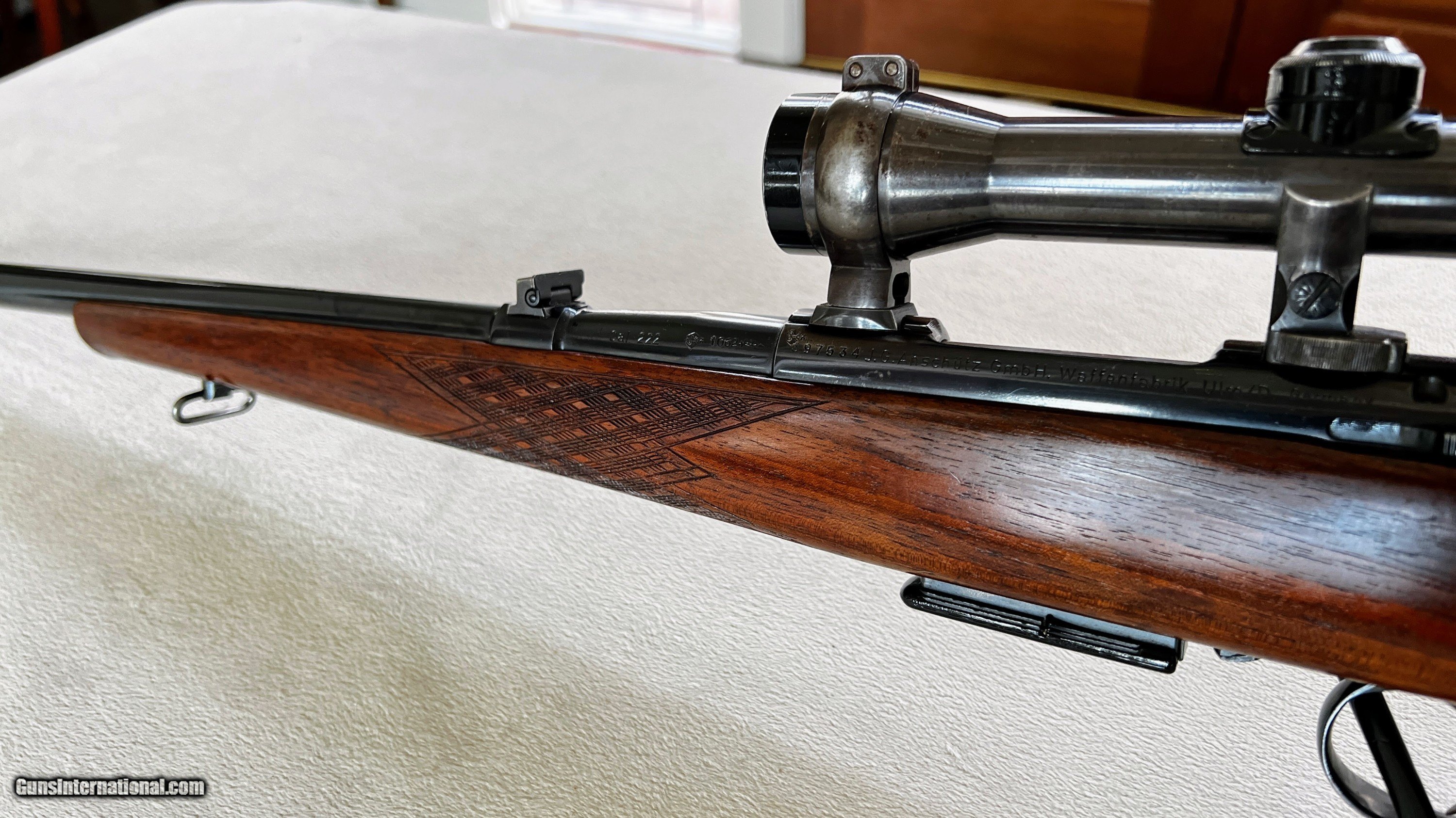 Description: Up for your consideration is a really nice old "Annie". This one was made in 1962 and I have owned it for over 40 years. I did shoot it many years ago when I was younger and it was a tack driver with my reloads. The scope is a 4x Hensoldt and is as clear as the day it left the factory.. It has the type 4 reticle. The condition is remarkable for a 60 year old gun. Please see the numerous high quality photos to determine condition for yourself. Let me know if you have specific questions or need additional photos. Trades for other high quality bolt action rimfires would be considered. I collect Anschutz, Cooper, Canyon Creek, and Kimber. Let me know what you have. Money can go either way. Please ask questions before buying. Sold only where legal to own and you are expected to know your local laws. Price listed represents a 3 1/2% discount for cash. Credit cards are available, but you must call me to use. Shipping will be $50 including insurance to the lower 47 (no shipping to CA). If your FFL will not accept a shipment from an individual, please add $25. The gun is available for sale locally and if there are no offers, I reserve the right to end the sale early. SOLD Rifle Caliber: .222 Remington Manufacturer: Anschutz Model: 1532 Barrel Length: 23 Bore: Excellent Condition: Very Good Metal Condition: Very Good Wood Condition: Very Good Bore Condition: Execellent Barrels: Blued Barrel Type: Sporter Action: Bolt Triggers: Double Set Stock: Walnut |