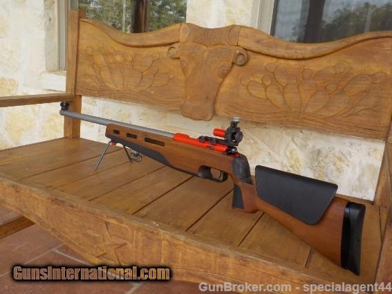 Description: This is an Anschutz 1407/1807 Match 54 action single shot .22lr target rifle. It has been completely refinished and accurized. It is an Anschutz Match 54 1407 action, in an Anschutz 1807 stock. The original used Match 54 Anschutz barrel has been replaced with a newer, more accurate, Match 54 Anschutz factory barrel...shown is a 5 shot test group of .155 inches, center to center, fired at 50 meters outdoors, prone off a sandbag using RWS R50. That is .30 MOA accuracy. How many times can you buy a gun and see the test group before buying? The stock is in excellent condition, hand-rubbed oil finish...no plastic Anschutz factory coating here. The barrel has been custom Cerakoted in a proprietary mix of Stainless and Satin Mag. The action and custom bolt knob have been Cerakoted Stoplight Red for a one of a kind finish. Action screws are Hex head bolts. The trigger is single stage and breaks crisply, and repeatedly, at exactly 1 lb with no take-up, over-travel, nor creep. The rifle comes complete and ready to compete with an Anschutz International rear sight and front sight. Also included are the hand-stop and bipod. This is an excellent value...don't confuse this gun with the Junior model that the CMP sells...that is a Mod 64 action...this is a MATCH 54 ACTION and BARREL. The stock was broken at the wrist but has been professionally repaired to stronger than original by installation of a solid plug. I built this rifle and am a 12 time World Champion in various shooting sports and holder of a National Record in Int'l 3 Position, and many State Championships. You will not be disappointed in the performance and style of this gun. FREE SHIPPING by Priority USPS to your FFL, payment by USPS Money Order SOLD Manufacturer: Anschutz Model: 1807 Caliber Info: .22 Condition: excellent Metal Condition: excellent Wood Condition: excellent Bore Condition: excellent |