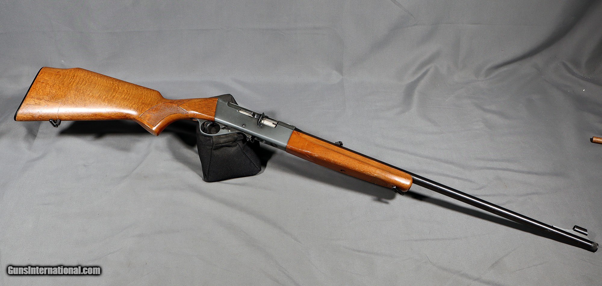 Description: You may purchase this used firearm by clicking "Order Online." For more information, click "Request Info" or you may contact the Wichita, Kansas Gun Library at (316) 854-0748. Your purchase will be shipped free of charge to the Bass Pro Shops/Cabelas store nearest to your location. Thank You for your interest and for shopping Bass Pro Shops/Cabelas. .22 Long Rifle Metal Condition: "Bluing is in fair to good condition, with the only noticeable small rust spot on the front sight hood Wood Condition: "Wood is in generally good condition, with some considerable handling wear Bore Condition: Good Barrels: 23" barrel Triggers: Curved Grooved Stock Dimensions: 43" overall 14.5" LOP Fore End: Checkered Wood fore end Butt Pad: Hard plastic checkered butt plate Weight: 5 Sights: "Hooded post front sight, flip up v-notch rear sight Item Location: Wichita, KS Price: $299.99 Contact Seller |