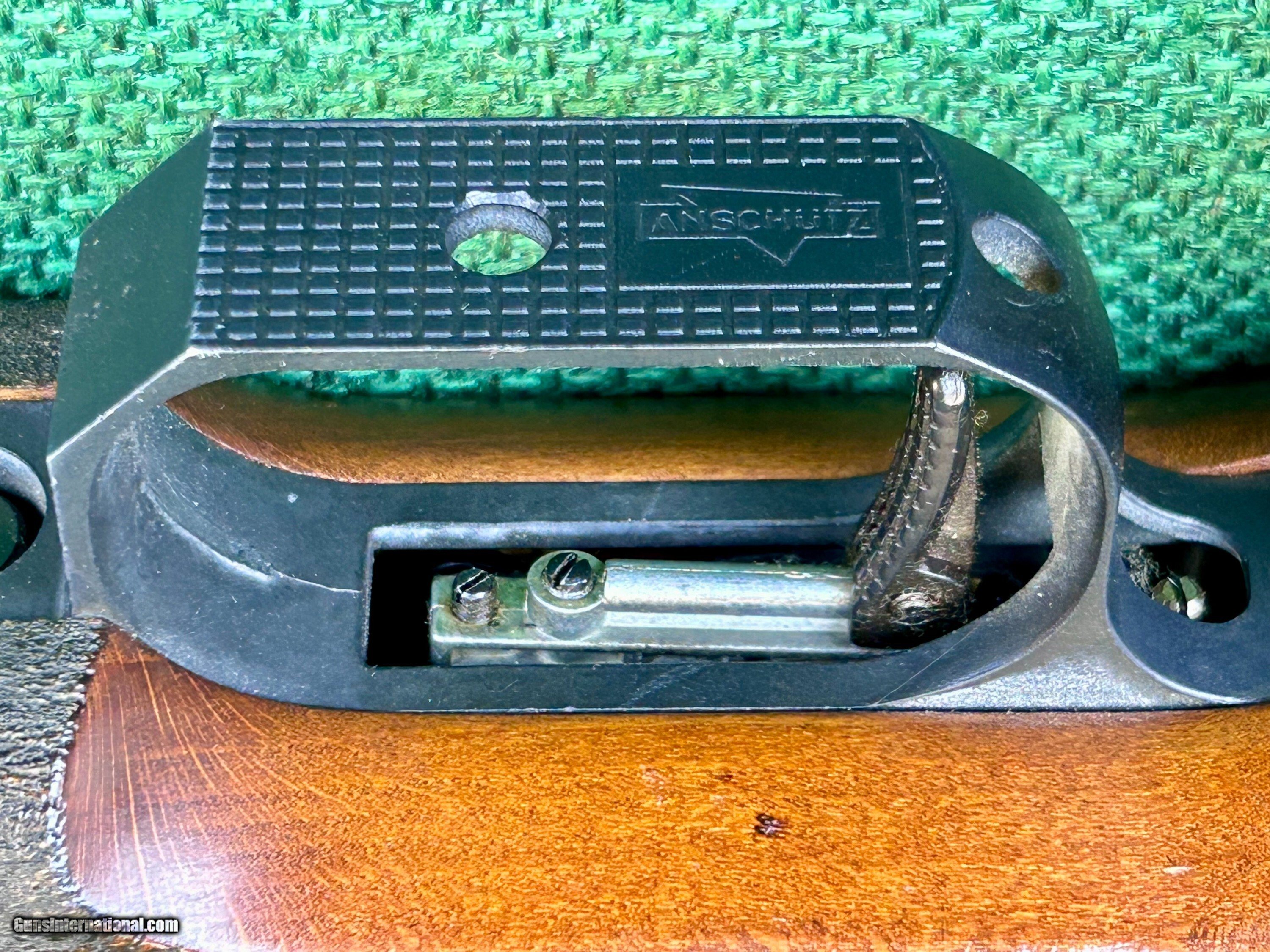 Description: Pictures added per requests This Anschutz 54MS (Metallic Silhouette) is a West-German bolt action single shot target rifle with a 20.5" heavy barrel. The walnut stock with raised cheekplate has stippling around the pistol grip and bottom of the stock in front of the trigger guard. The factory trigger has been measured at a 2 oz. pull. On our postal scale complete rifle ways 9 lb 14.8 Oz This rifle also features a Leupold 10x scope with target knobs. The rifle is in outstanding condition with a low round count. There is no bluing loss and the stock is in in excellent condition as well. Please see pictures for details. All used firearms should be inspected by a qualified gunsmith prior to firing. All items are sold as photographed unless other arrangements are made. We accept USPS Money Order, cashier’s check, or credit card for immediate shipping. Please note credit card sales are subject to an additional 3% fee. Shipping & Handling ($50):