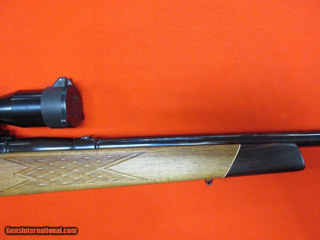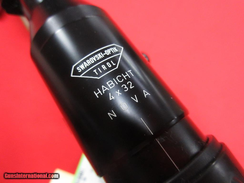 Description: Anschutz M153 222 Remington 24" w/ Swarovski -- Factory original and excellent condition: satin finished stock with a rollover cheek piece, contrasting forend tip and grip cap, topped with a Swarovski Habicht 4X32 on Talley rings. Comes with an extra magazine. SOLD |