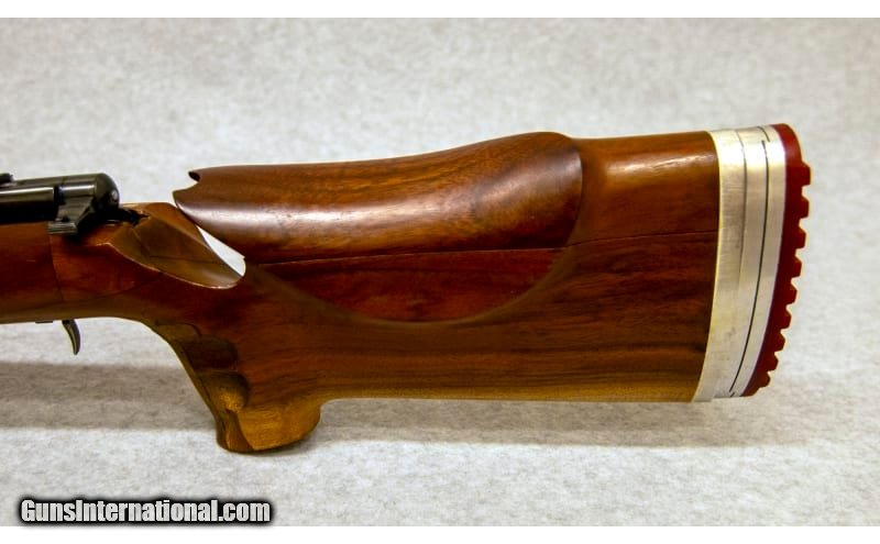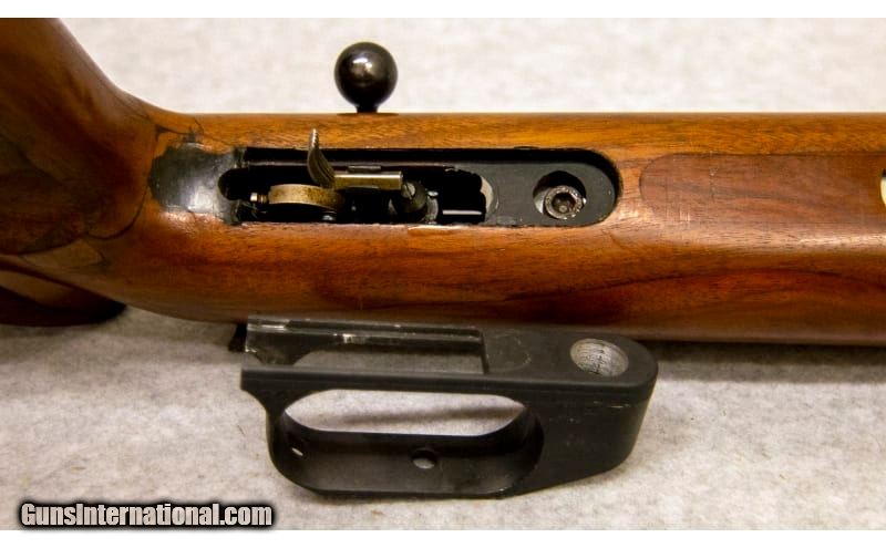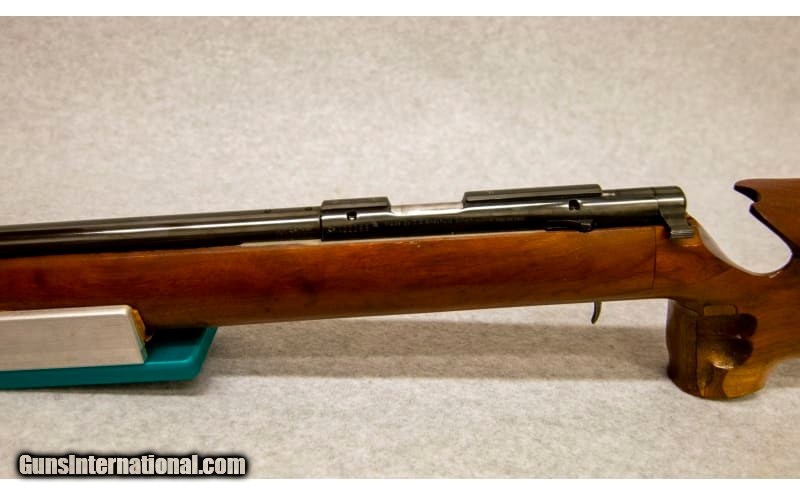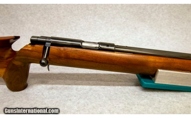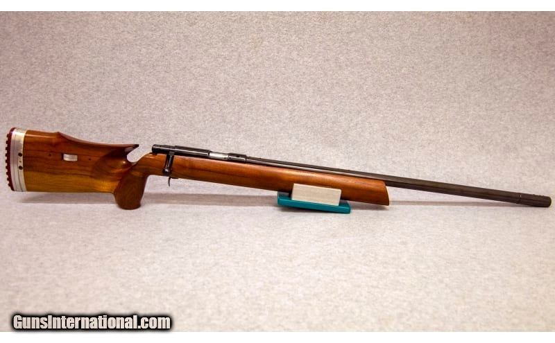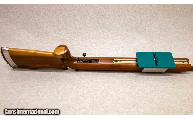 Description: Anschutz Match 54, chambered in .22 LR. Features include: prone position target model, heavy barrel, pivoting safety, fast lock time, adj. cheekpiece, hard rubber butt plate with removable plate extenders. Trigger guard has broken off but can be fixed. Bluing is in excellent and bore is shiny. .22 Long Rifle SOLD Chambers: .22 LR Metal Condition: Excellent Wood Condition: Excellent Bore Condition: Excellent Barrels: 27' Stock Dimensions: 13' Butt Pad: Hard Rubber Sights: None Item Location: Fort Mill, SC |