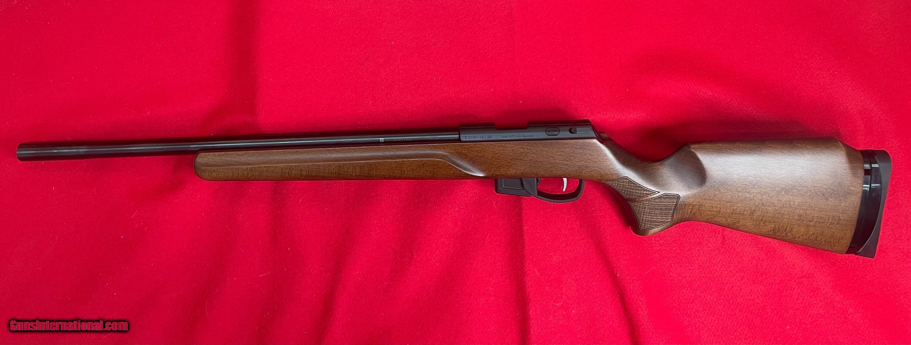 Description: New Caliber: 22LR System: 1761 bolt action repeater blued finish Weight: 7.72 lbs. Receiver: Scope mount attachment with 11mm dovetail Barrel Length: 21.4" (544mm) Muzzle Diameter: 0.866" (22mm), this is the last 3 inches of barrel Barrel Diameter: 0.807" (20.5mm) before the last 3 inches of barrel Barrel feature: 11mm dovetail at muzzle end for diopter front sight Trigger: 5061 two stage light trigger Magazine Capacity: 5 Stock Style: MPR Stock Stock LOP: Approximately 14.2" (360mm) (Trigger position is adjustable) Mega Case included Manufacturer: Anschutz Model: 1761 Barrel Length: 21.4 Price: $2,399.00 Shipping: $45.00 Pay with