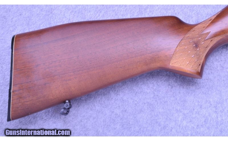 Description: Excellent throughout showing little use. No box. SOLD Manufacturer: S/N 134XXXX Caliber Info: .22 LR Metal Condition: Excellent Wood Condition: Excellent Bore Condition: Excellent Barrels: 19 1/2 Triggers: Original Stock: Checkered Walnut Pistol Grip Stock Dimensions: 14" LOP Fore End: Checkered Walnut Fullstock Butt Pad: Black Plastic Weight: 5 3/4 LB Sights: Hooded Bead Front - Adjustable Folding Notch Rear Item Location: Wheeling, WV |