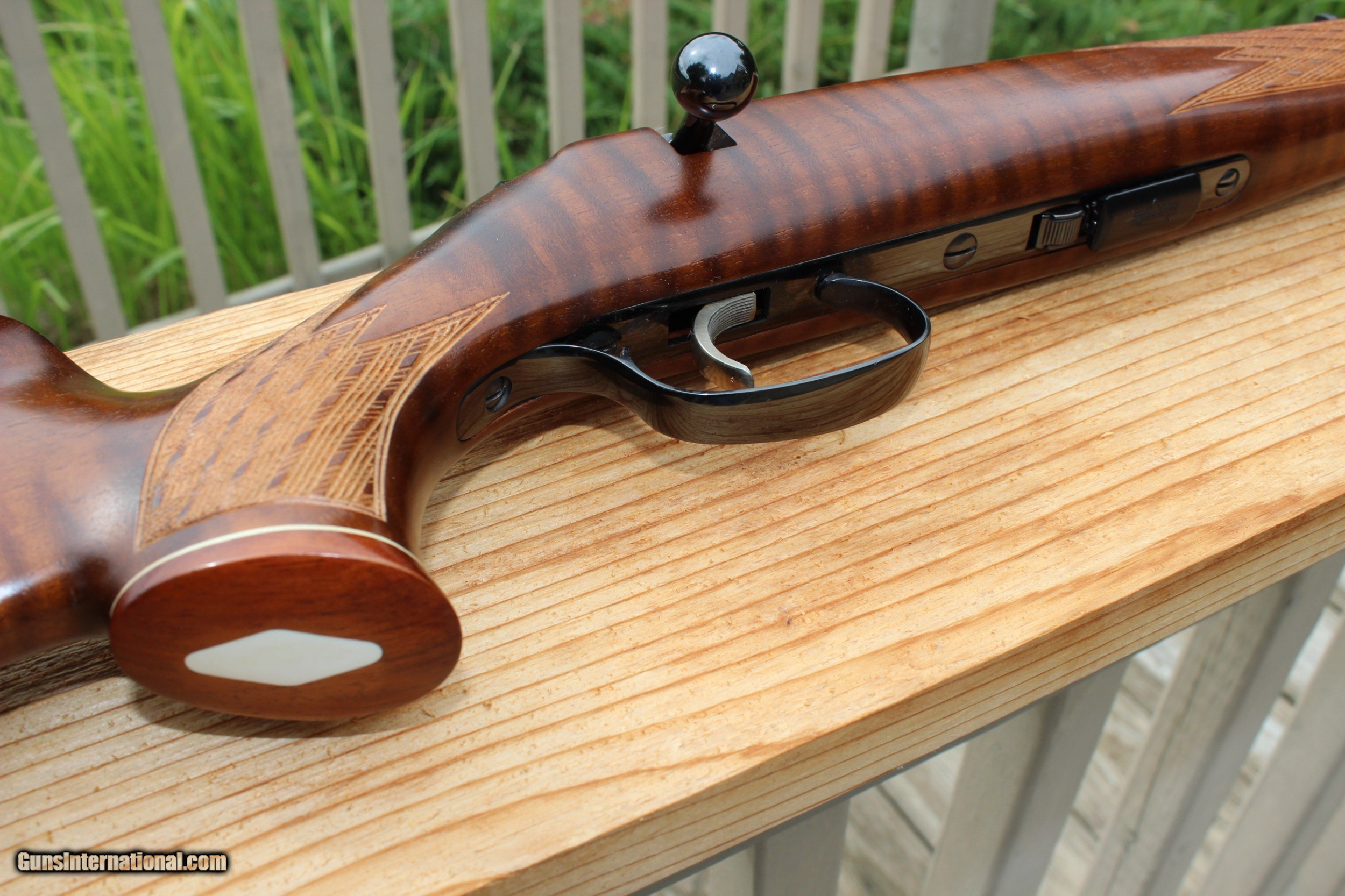 Description: I have collected Anschutz rifles for many years. I believe that the 1422 series Anschutz 22LR rifles exhibit the finest material and build quality along with their superior accuracy, of any other series. In my opinion, these models are the "sweet spot" among Anschutz 54 actioned Sporter's. They have high polished blued metal trigger guards, bottom metal and bolt knobs in contrast to the the plastic pieces manufactured today. This particular rifle is in MINT condition. I will call it a safe 99% to err on the side of conservancy. This beautiful piece of walnut is "top tier" amoung it's Anschutz counterparts exhibiting heel to toe fiddleback and is certainly of Meistergrade quality. Take a look at the new ones available and you can readily see the quality exuded in this example. If you have been on the hunt for a hand built "Flagship" 22 long rifle for your collection, you just found it. I have never fired the rifle and I do not believe it has been fired since it left the Anschutz factory in Ulm, West Germany in 1986. A very hard one to let go of, no apologies on this rifles condition. "Carpe Momentum". SOLD Rifle Caliber: .22 Long Rifle Manufacturer: Anschutz Model: 1422 Condition: Mint Metal Condition: Mint Wood Condition: Excellent Bore Condition: Excellent Action: 54 Manufacture Date: 1986 |