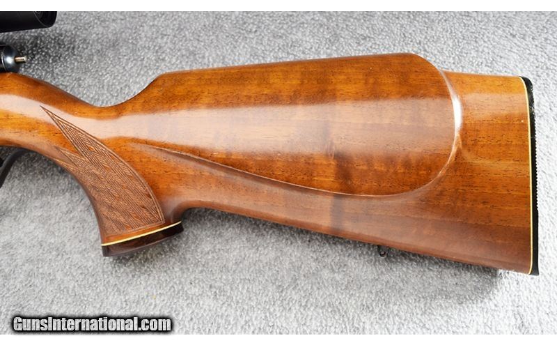 Description: This Anschutz was manufactured in Ulm, West Germany and remains in very good overall condition. Wood is solid with just a few light marks on stock. Front sling swivel stud is missing. Blue and bore are excellent. Front sight has been removed and screws have been cut off. Original folding notch rear is still attached. Gun has a Leupold Rifleman 3-9x40 scope with Duplex Reticle on Redfield mounts attached. Schnabel forend, right hand palm swell and Monte Carlo fold-over cheekpiece. Beautiful little gun! .22 Hornet SOLD Metal Condition: Excellent Wood Condition: Excellent Bore Condition: Excellent Barrels: 24 Triggers: Factory Stock Dimensions: 13 3/4" LOP Fore End: Double Skip Line Checkered Walnut with Rosewood Pistol Grip Cap & Right-Hand Palm Swell - Double Skip Line Checkered Schnabel Forend Butt Pad: Ribber Black Plastic Butt Plate Weight: 7 1/2 lb. Sights: Front Sight Removed - Folding Notch Rear - Leupold Rifleman 3-9x40 Scope with Duplex Reticle Item Location: Wheeling |