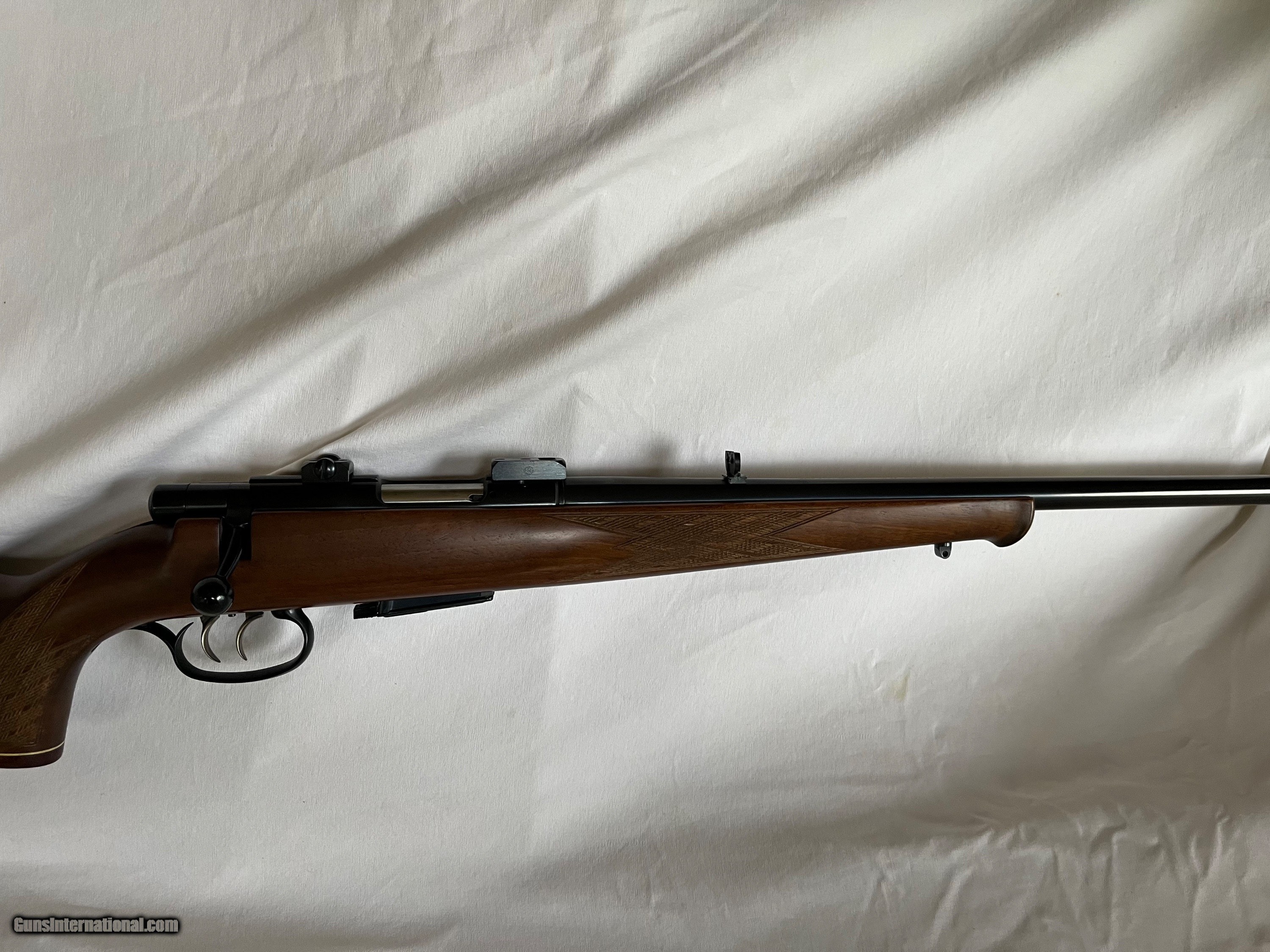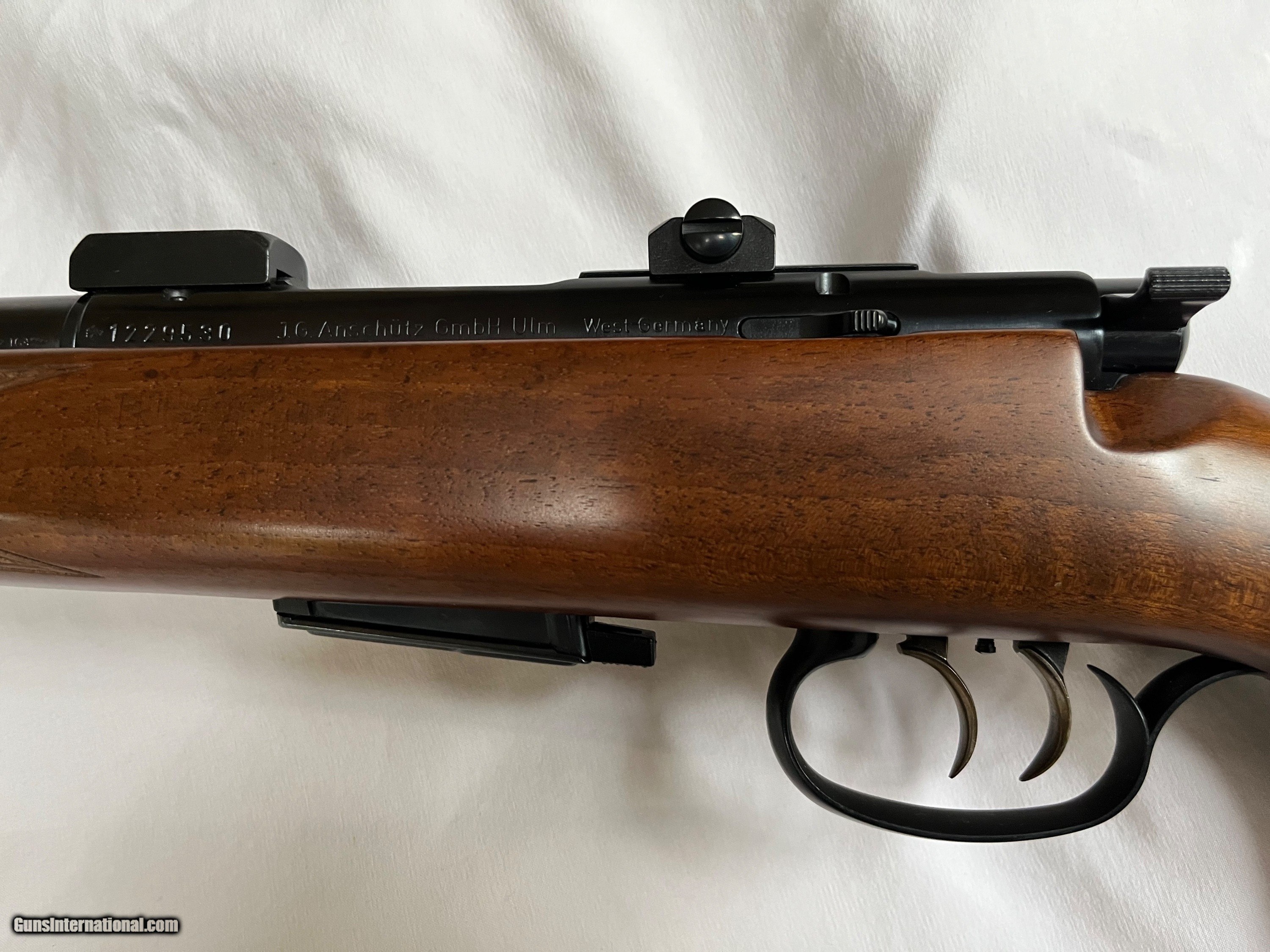 Description: Anschutz 1432 .22 Hornet. 24" Barrel, Excellent condition, used very little. Tiny marks at rear of cheek piece, otherwise immaculate. Double set triggers, Redfield scope bases, or can use rail. Original iron sights & hood. Magazine shows no wear. Rollover cheekpiece & skip line checkering. Schnabel forend, sling swivel bases, contrasting grip cap. Perfect mechanically. SOLD Rifle Caliber: .22 Hornet Manufacturer: Anschutz Model: 1432 Barrel Length: 24” Condition: Excellent Triggers: Double Set LOP: 14 1/4” Item Location: Ca |