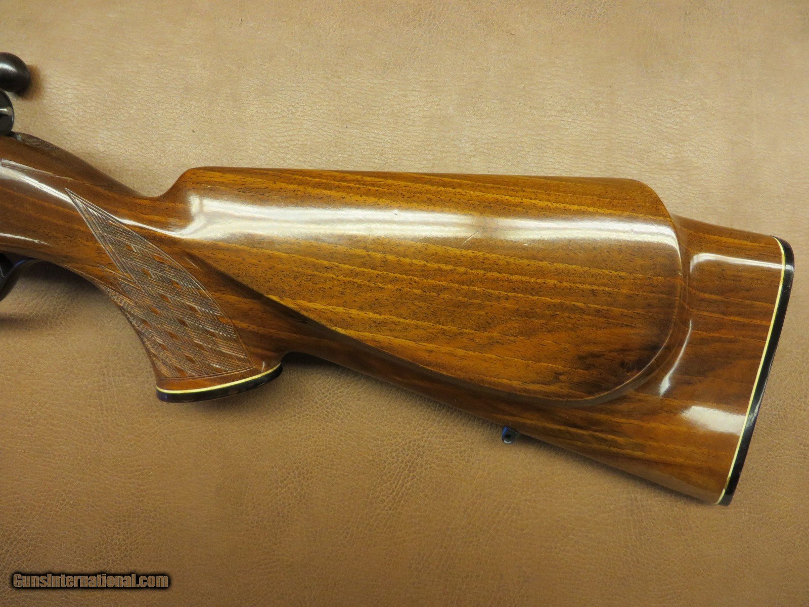 Description: .222 Remington has 23 1/2 inch barrel with original sights missing the front hood. Weaver scope mounting bases on receiver that is also grooved for scope mounting. High gloss checkered walnut stock has rosewood forend tip and pistol grip cap, rollover cheekpiece, sling swivel studs, palm swell, and original butt plate. One factory magazine. Savage import. Blue is 99% and the wood is 90%. SOLD Rifle Caliber: .222 Remington |