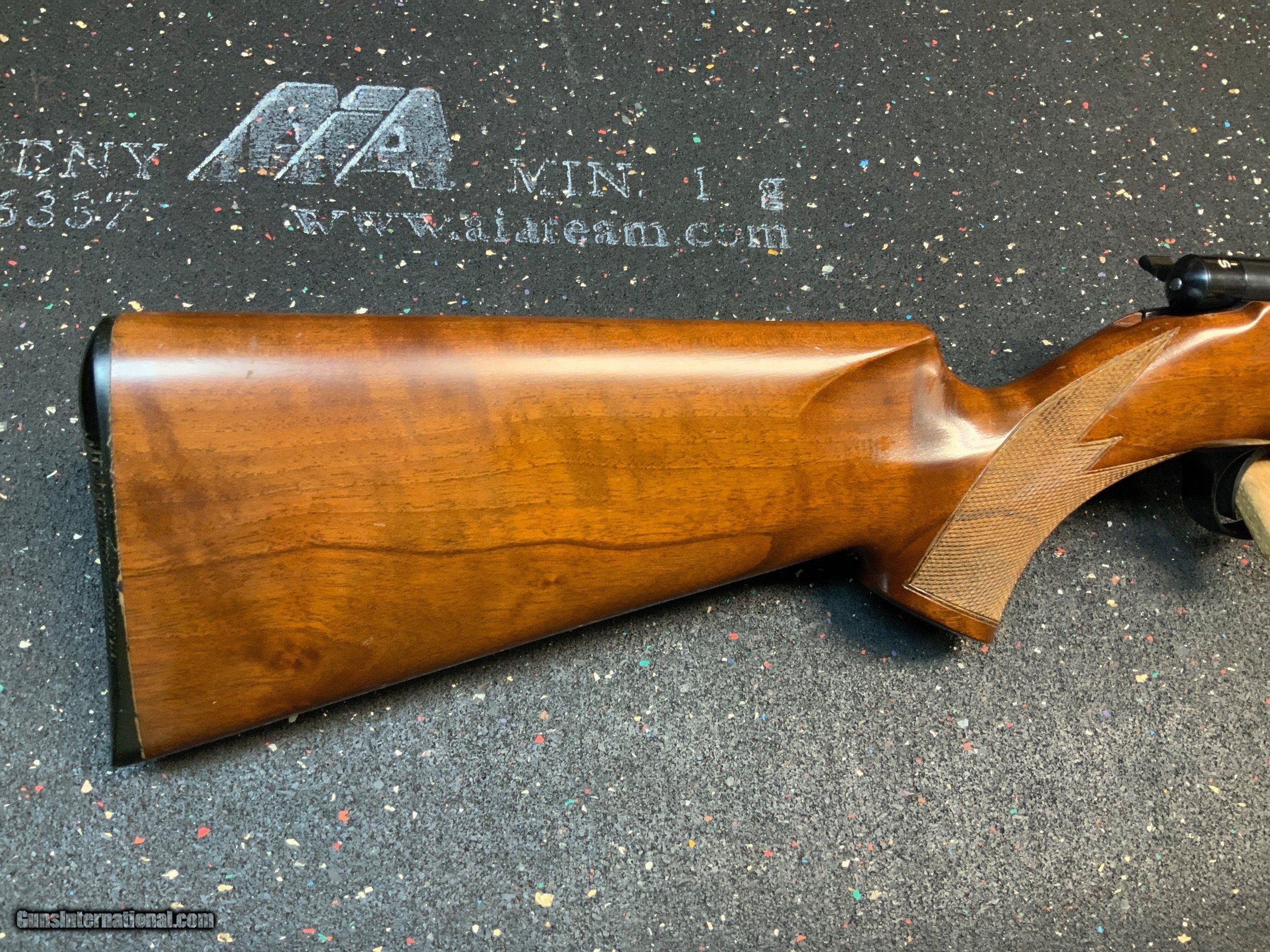 Description: Anschutz model 1710 Sporting rifle. This 22 long rifle caliber gun is made with the famous German model 54 Anschutz action. Gun appears to have been shot very little by looking at the bolt face and magazine follower wear. Downside is there are various handling marks and scratches in the wood. No splits or gouging but some varnish wear. If someone was to refinish the stock the gun would appear near new. Bluing is excellent. You won't find many of these for sale at this price, but it needs to go before I decide to keep it. I have several of these and they are the most amazingly accurate guns I have owned. Please add $50 for shipping and insurance to your FFL. if you're FFL dealer will not except from a private party please add $20 to the cost of shipping for my FFL dealer's transfer fee. SOLD Rifle Caliber: .22 Long Rifle Manufacturer: Anschutz Model: 1710 Condition: Very Good Metal Condition: Excellent Wood Condition: Good Bore Condition: Excellent |