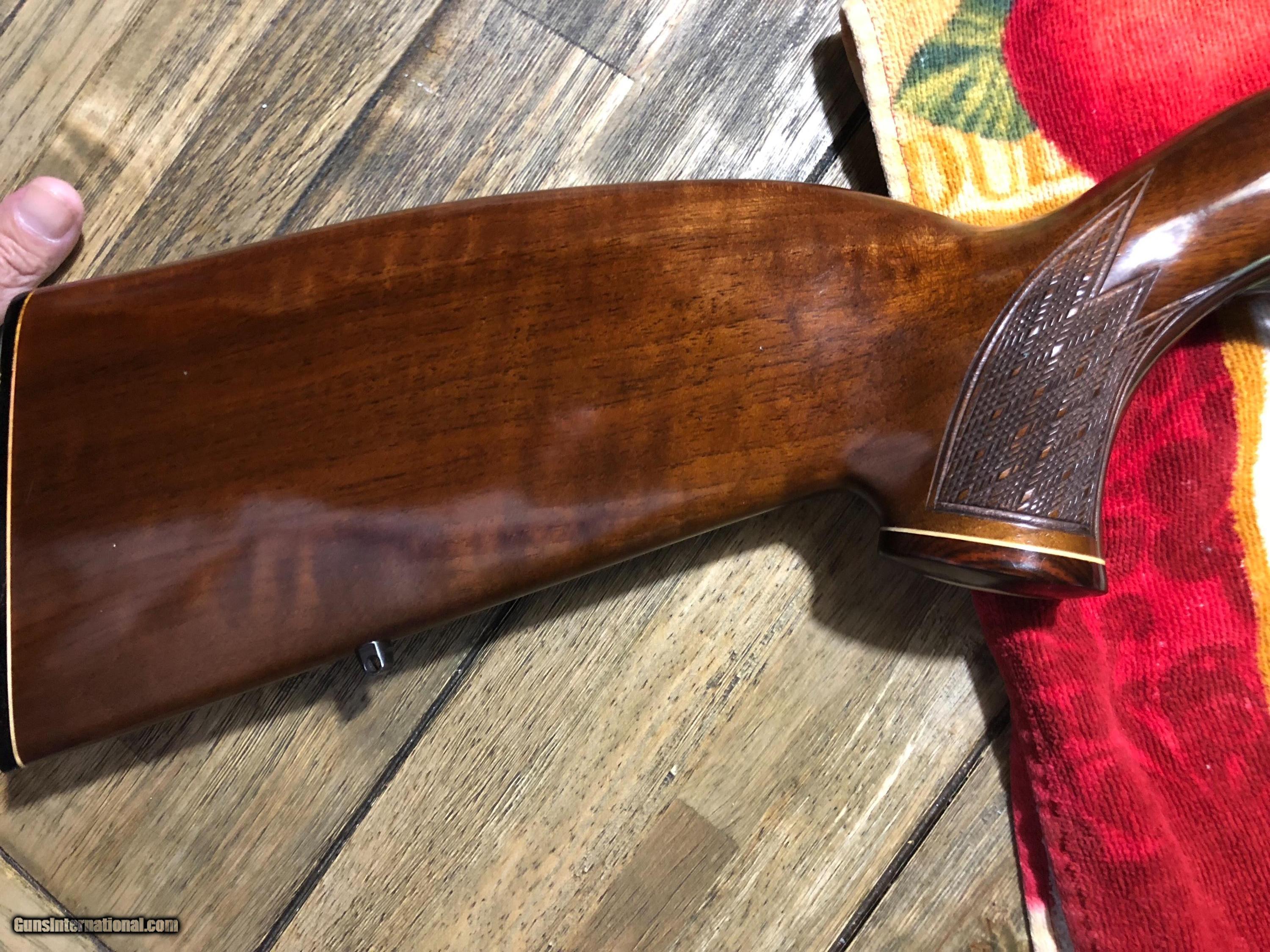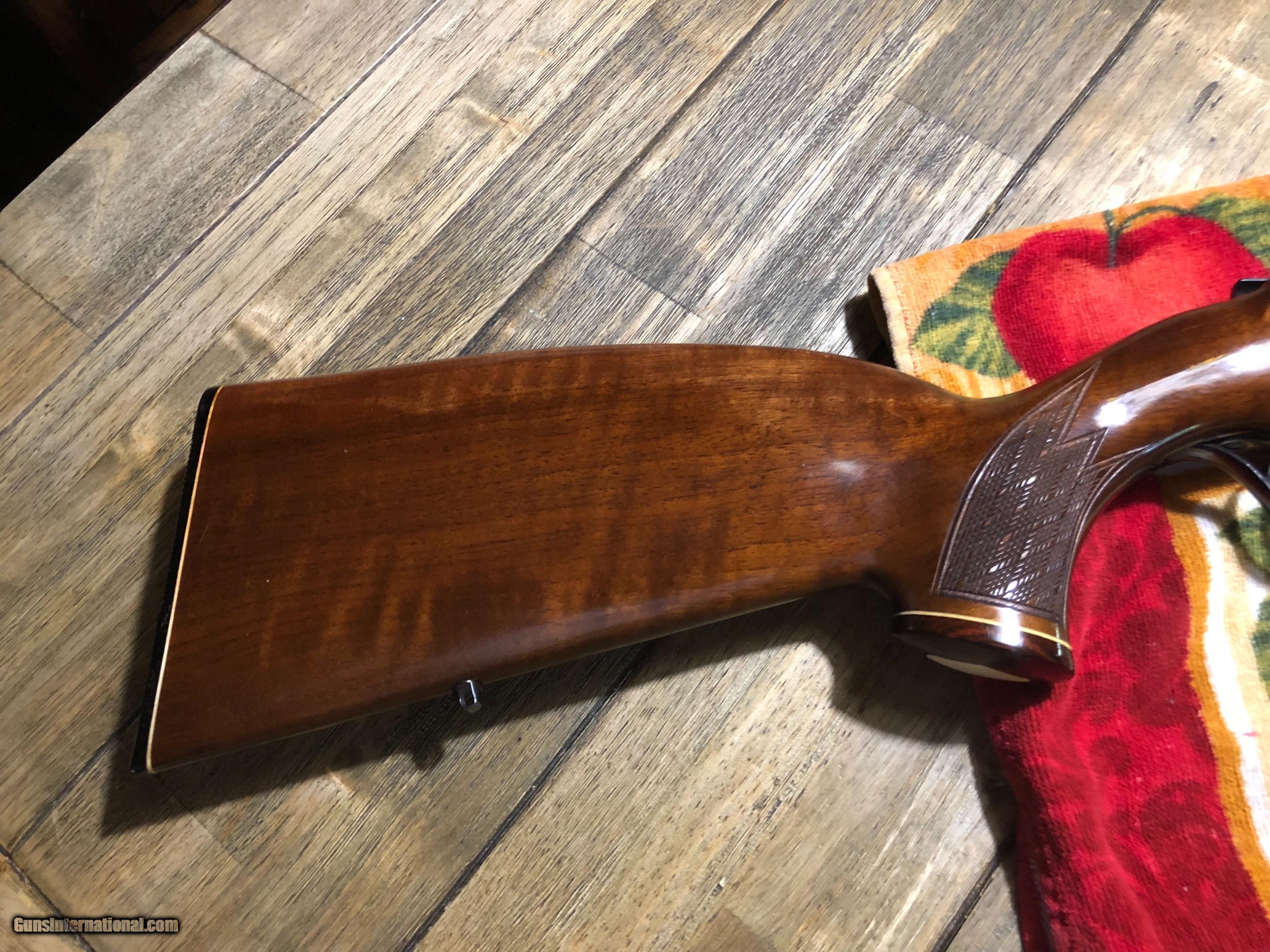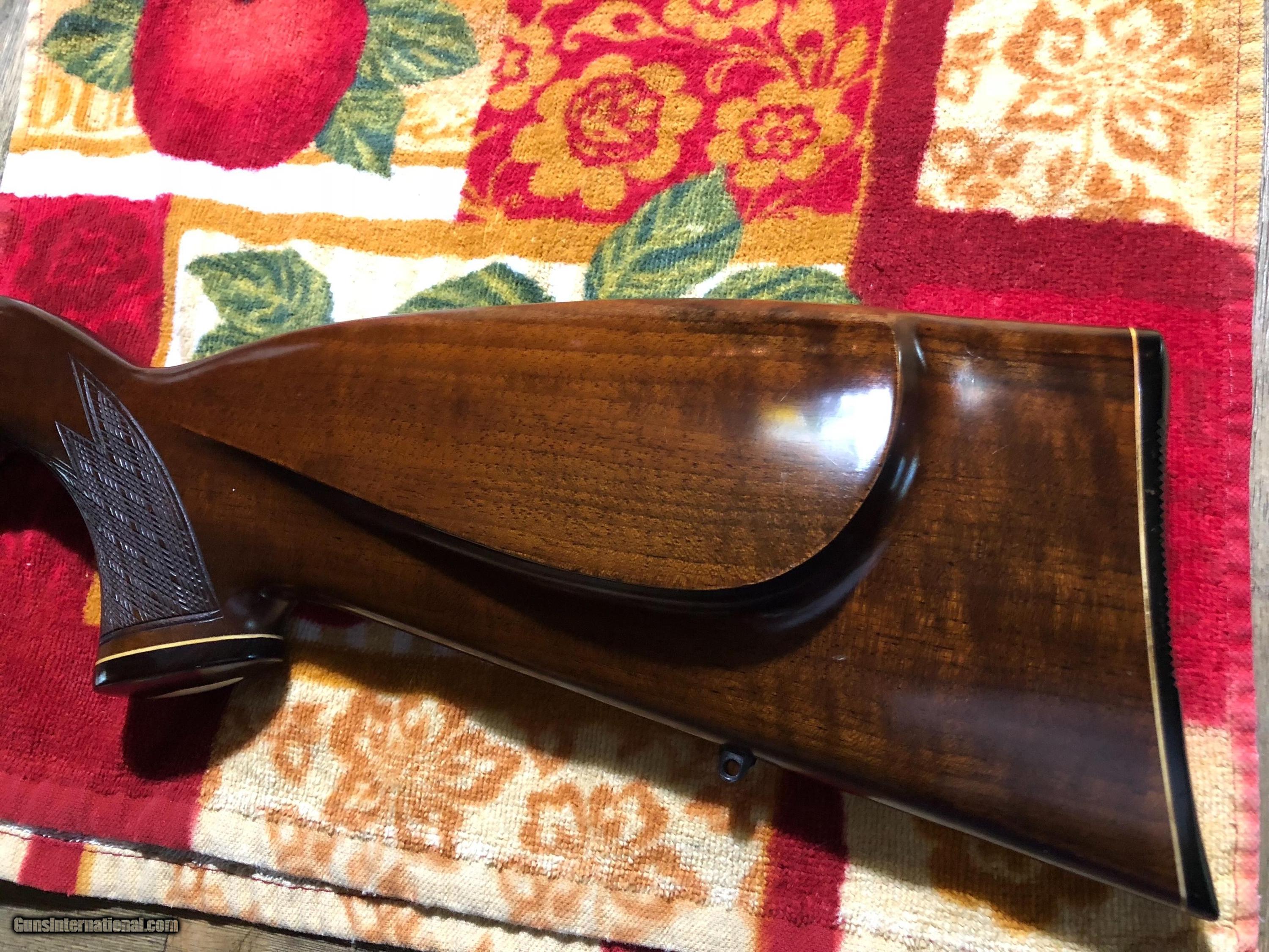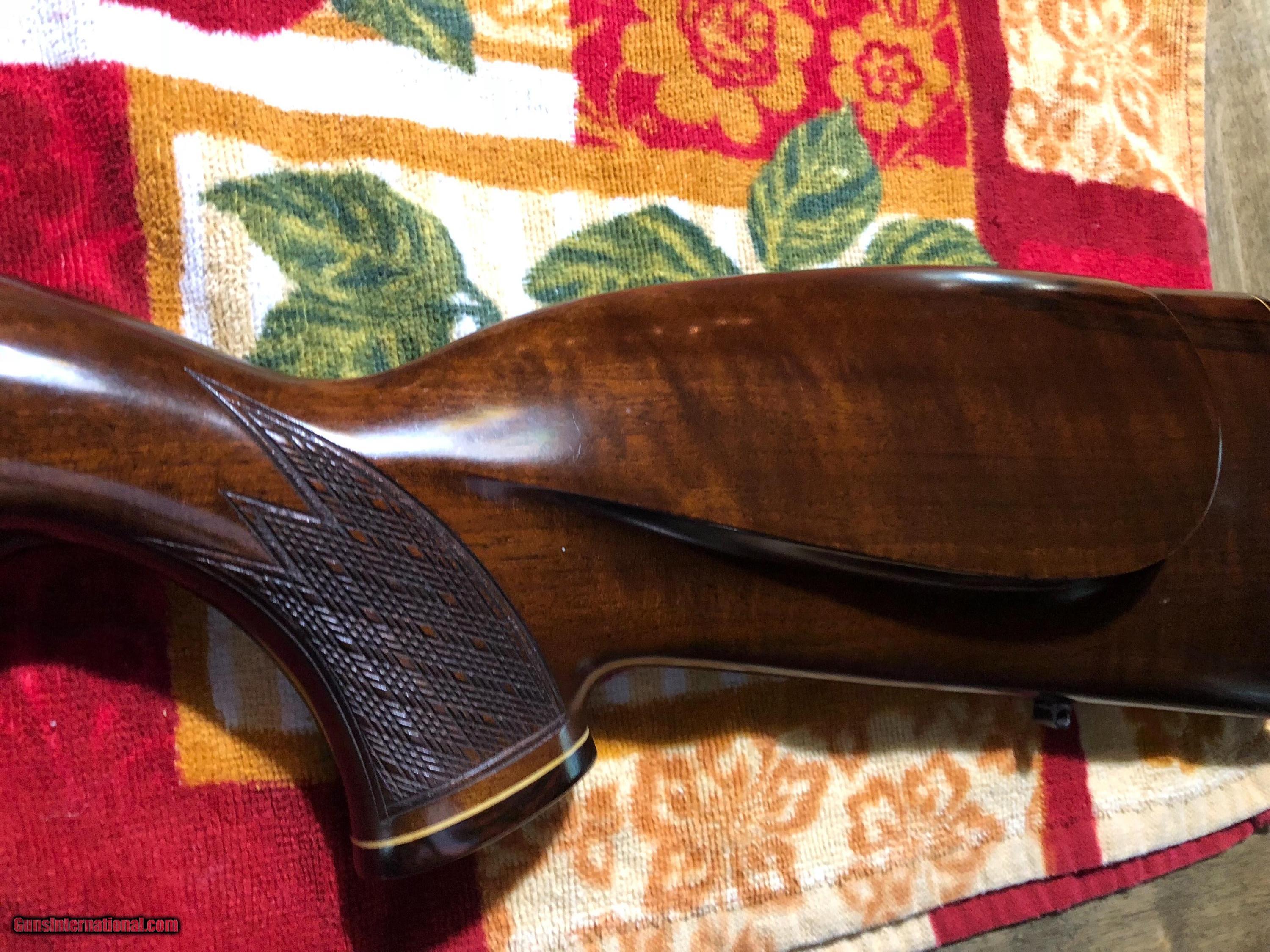 Description: Model 54 in 22 Hornet in Excellent condition. European style stock. No blue loss one mark in wood under cheekpiece pic 12. Looks little shot as magazine & chamber shows. Anything that looks like glare is glare. Only mark on the gun is in pic #12. Call for information or to buy. S & I $45. SOLD |