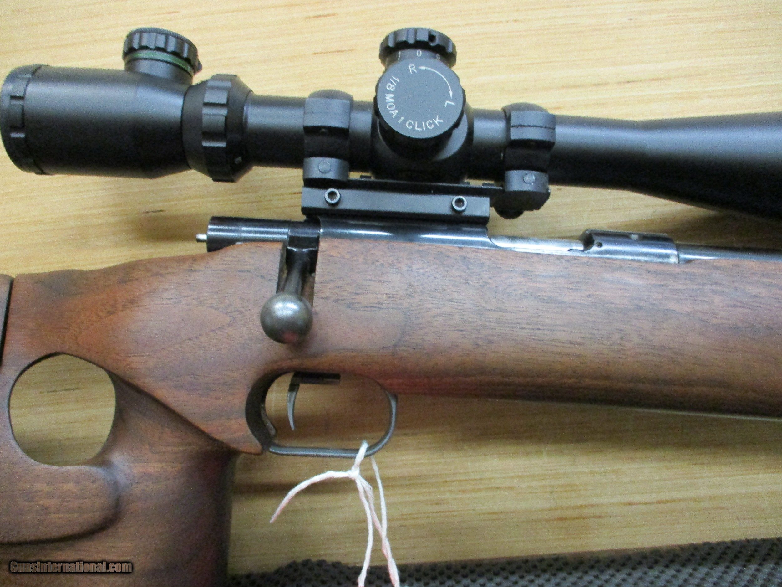 Description: USED GOOD CONDITION ANSCHUTZ MODEL 54 .22 LR -- 27" HEAVY BARREL -- ADJ LH THUMBHOLE STOCK WALNUT W/ RIGHT HAND BOLT W/ OSPREY INTERNATIONAL SCOPE 10-40X50 IL RANGEFINDING RETICLE & TARGET PEEP SITE & GLOBE FRONT SIGHT BARREL HAS BEEN SHORTENED AND RE-CHAMBERED -- ****PLEASE CALL IN THE WITH THE SELLER’S INVENTORY NUMBER IF INQUIRING ABOUT A FIREARM****** WE DO NOT SHIP FIREARMS AND/OR FIREARMS’ PARTS OUT OF THE 50 UNITED STATES, SO DON’T ASK—YOU NEED TO KNOW IF FIREARM IS LEGAL FOR YOUR STATE PRICE REFLECTS PAYMENT BY MONEY ORDER / CASHIERS CHECK. A 3% PREMIUM IS ADDED FOR CREDIT CARDS. WE DO ACCEPT PERSONAL OR BUSINESS CHECKS, BUT THERE IS A GRACE PERIOD OF 10 BUSINESSS DAYS ON THEM. Shipping is $40 for handgun and $30 for long gun. Shipping to Alaska and Hawaii will be more based on weight of firearm. WE DO OFFER LAYAWAY PLANS FOR 30,60, OR 90 DAYS. THERE IS A $5.00 CHARGE FOR EVERY 30 DAYS ITEM IS ON LAYAWAY. WE ALSO REQUIRE A 20% DOWN PAYMENT ON TOTAL OF LAYAWAY SALE. LAYAWAYS ARE NON- REFUNDABLE. HERE IS HOW THIS PROCESS WORKS. YOU WOULD CALL US AT 540-337-9218 WITH LISTER # TO PURCHASE THE GUN. THEN ONCE I HAVE RECEIVED PAYMENT AND AN FFL (FEDERAL FIREARMS LICENSE) FROM A LICENSED DEALER IN YOUR AREA OF YOUR CHOICE. WE WILL THEN SHIP THE GUN TO THEM. YOU WOULD THEN PICK UP THE GUN AT YOUR LOCAL DEALER AND DO PAPER WORK THERE. Please have your FFL Dealers contact information when you call. DOMINION OUTDOORS 15 ANGELA COURT FISHERSVILLE, VA 22939 540-337-9218 540-337-2422 fax M – F 9 a.m. to 6 p.m. ETZ Sat 9 a.m. to 4 p.m. ETZ ****PLEASE CALL IN THE WITH THE SELLER’S INVENTORY NUMBER**** ***PLANO HARD CASES AVAIABLE FOR PURCHASE $19.99 WITH THE PURCHASE OF A FIREARM** *** Online prices compared to in store prices will vary. *** SOLD |