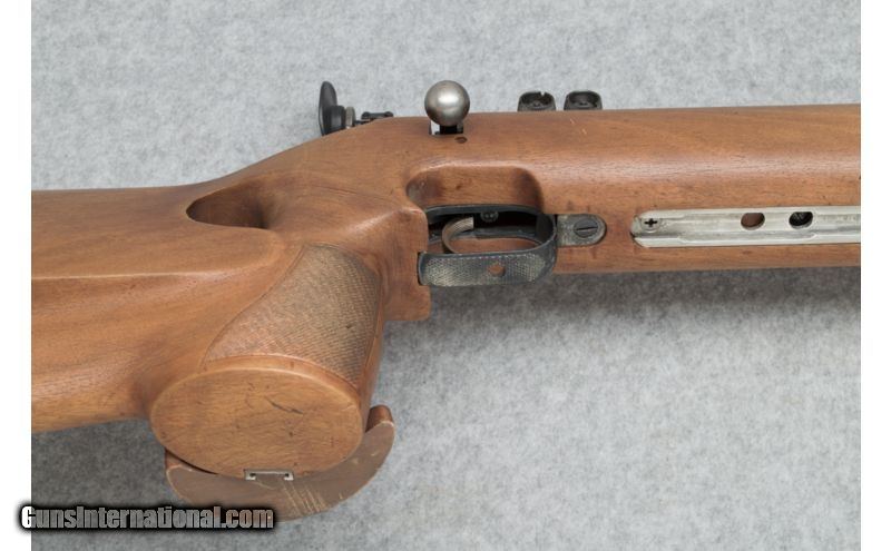 Description: Used. SOLD Caliber Info: .22 Cal. Metal Condition: Excellent Wood Condition: Very good: a few dents & scratches Bore Condition: Clean and sharp Barrels: 27" - Heavy weight Triggers: Grooved, steel Stock: Checkered thumbhole style hardwood Stock Dimensions: Adjustable butt and LOP Fore End: Wide, flat bench-rest style Butt Pad: Adjustable aluminum butt with shoulder hook Weight: 12 lbs. 6 oz. Sights: Redfield target sights; aperture rear; globe front Extras: (2) different forearm attachments; various sight discs; papers & accessories. Item Location: Sun Prairie, WI |