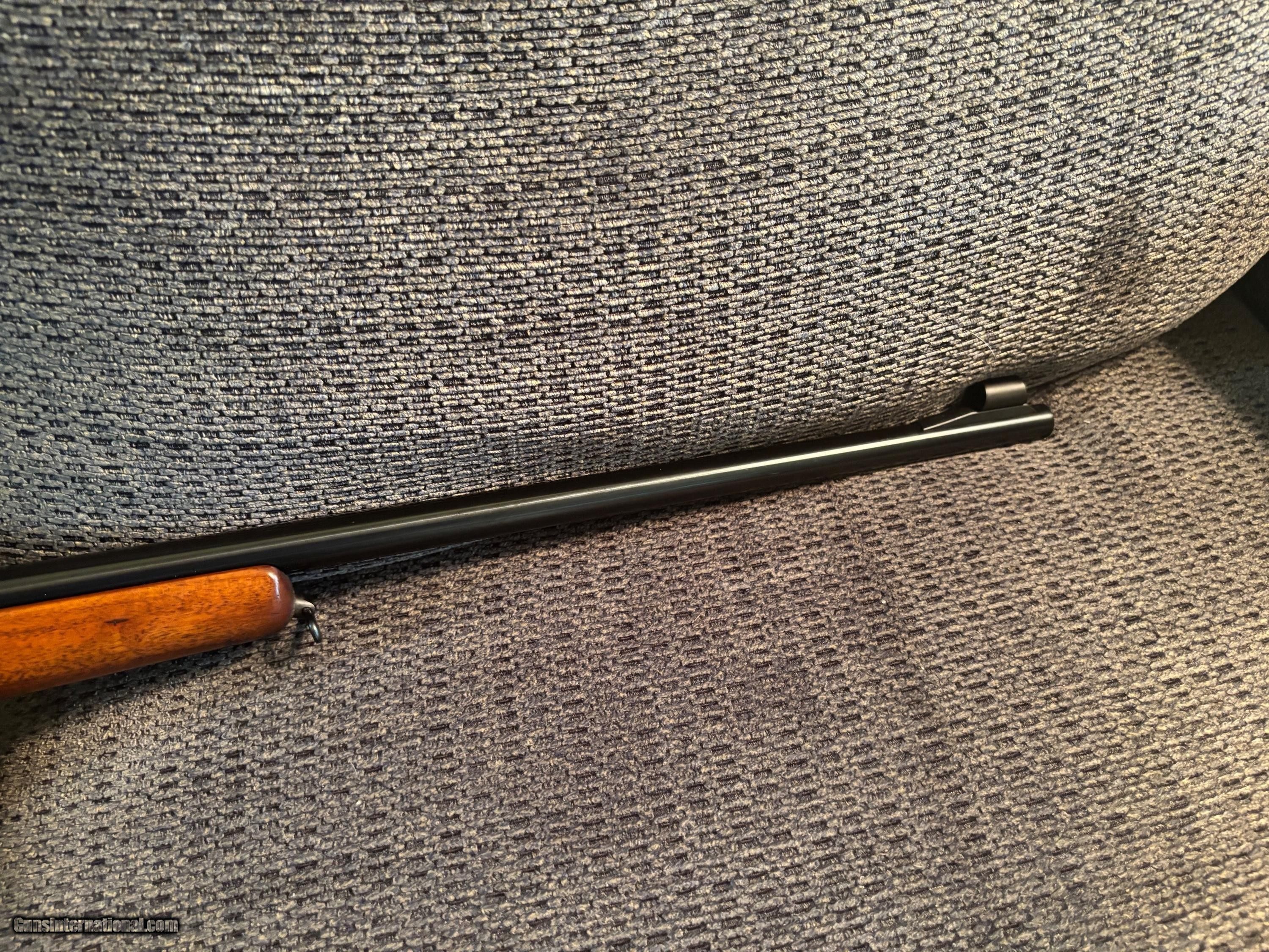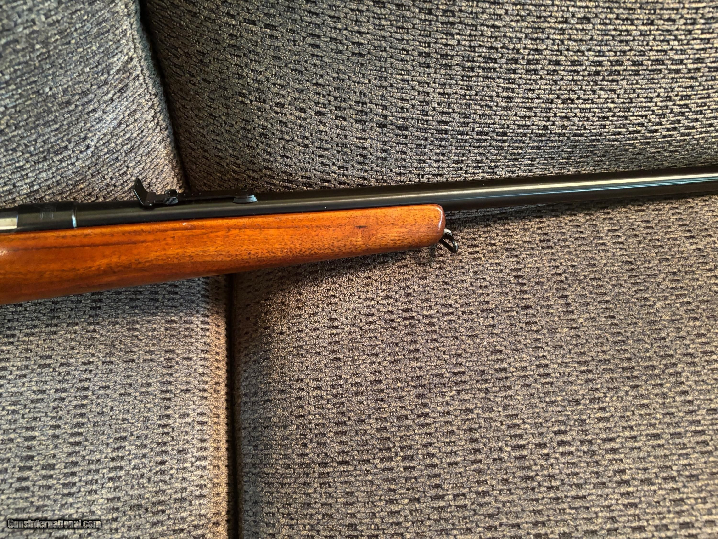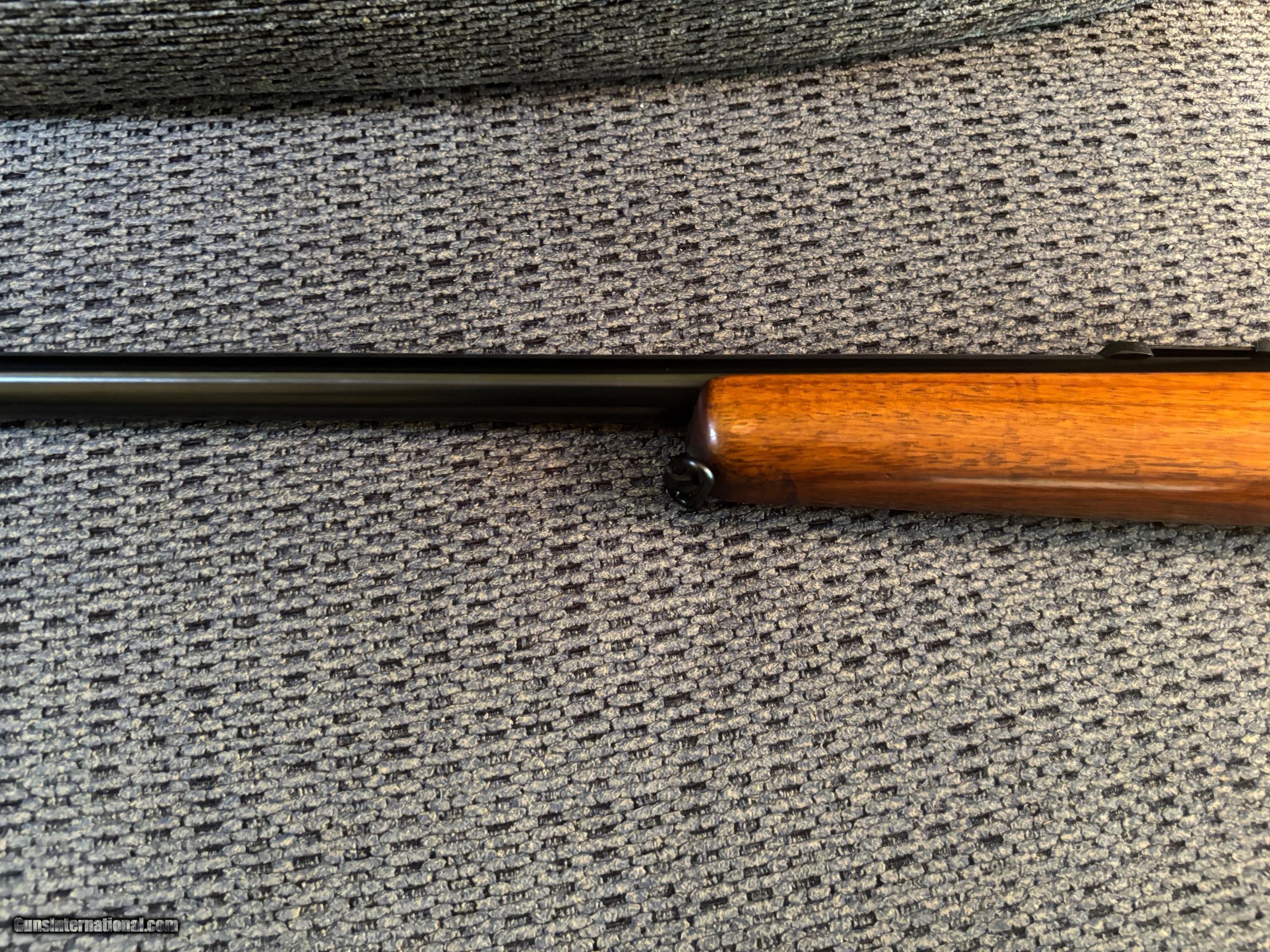 Description: Very rare 22 short only. Will not accept a 22LR cartridge. No designated model number. Caliber 22 short. Really nice bluing. A few light handling marks. Wood is in great shape. Very nice bright bore with good rifling. No pitting. Made in 1961. 21" barrel and weighs about 4.5 lbs. SOLD |