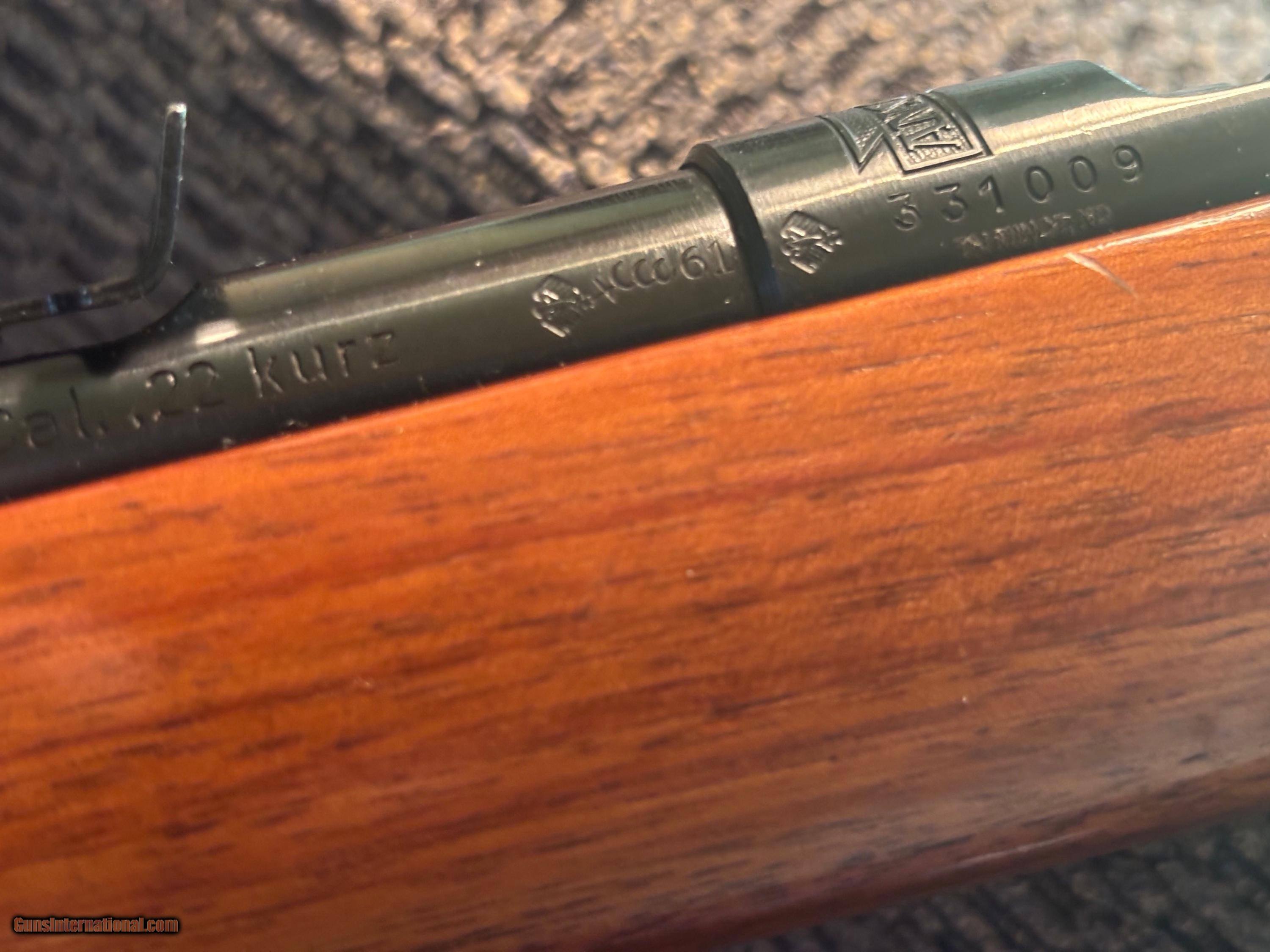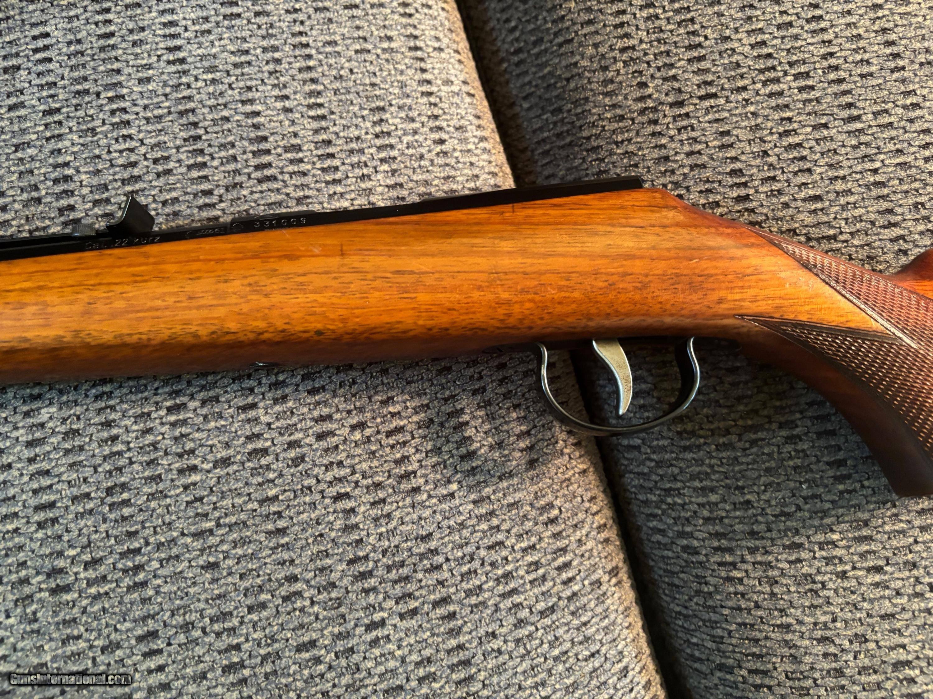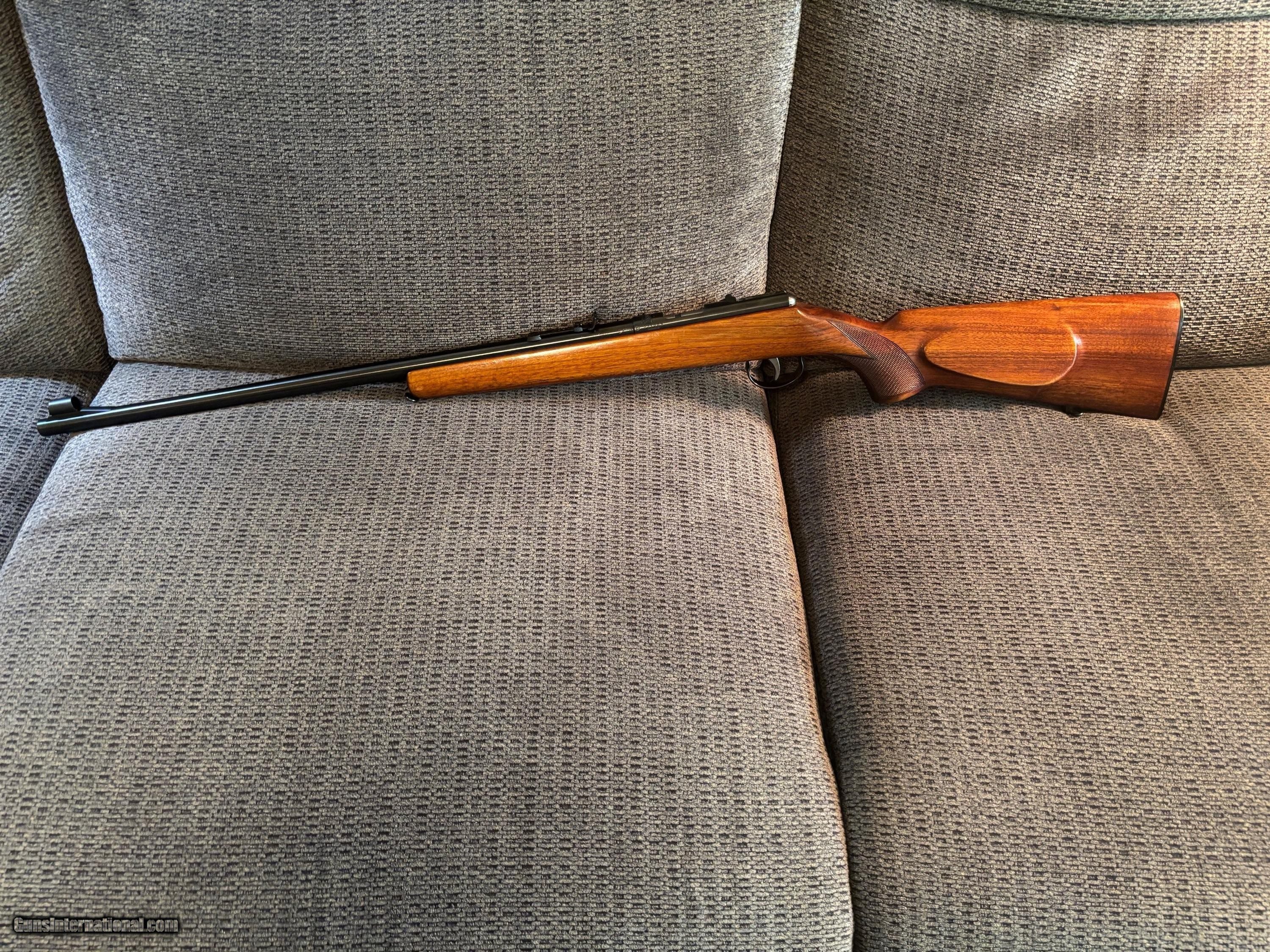 Description: Very rare 22 short only. Will not accept a 22LR cartridge. No designated model number. Caliber 22 short. Really nice bluing. A few light handling marks. Wood is in great shape. Very nice bright bore with good rifling. No pitting. Made in 1961. 21" barrel and weighs about 4.5 lbs. SOLD |