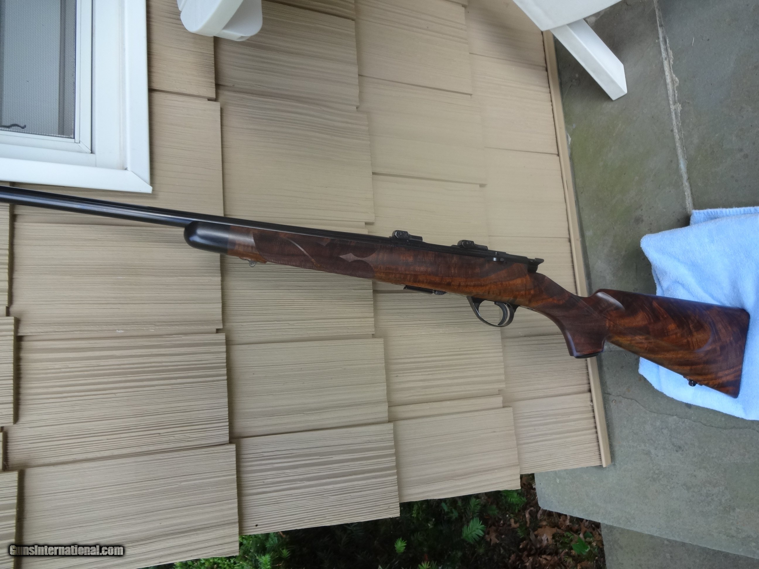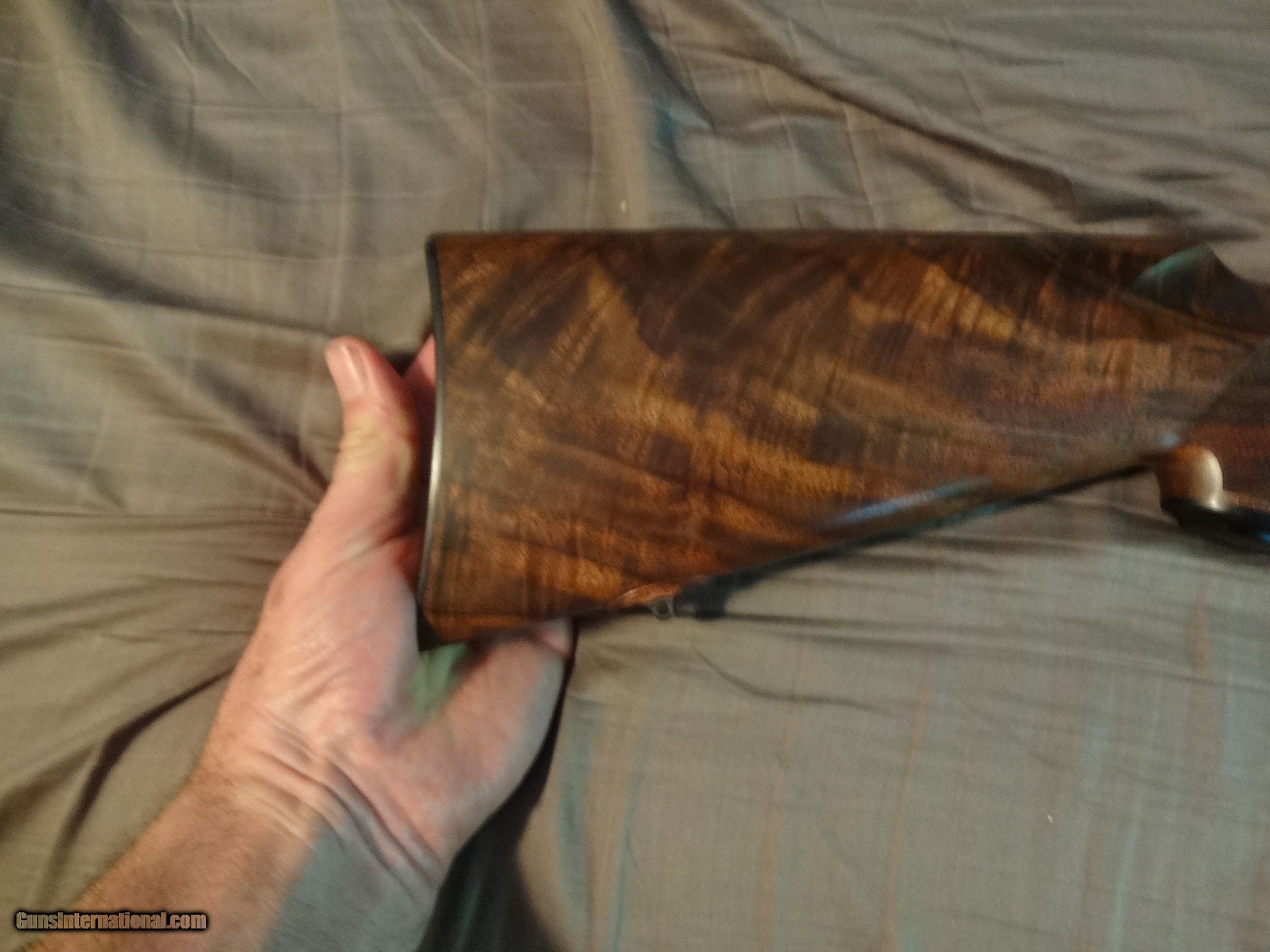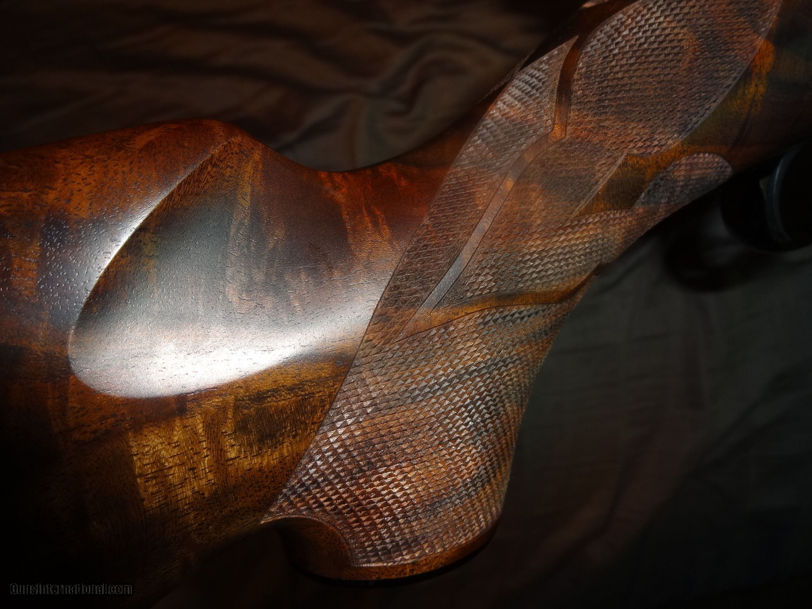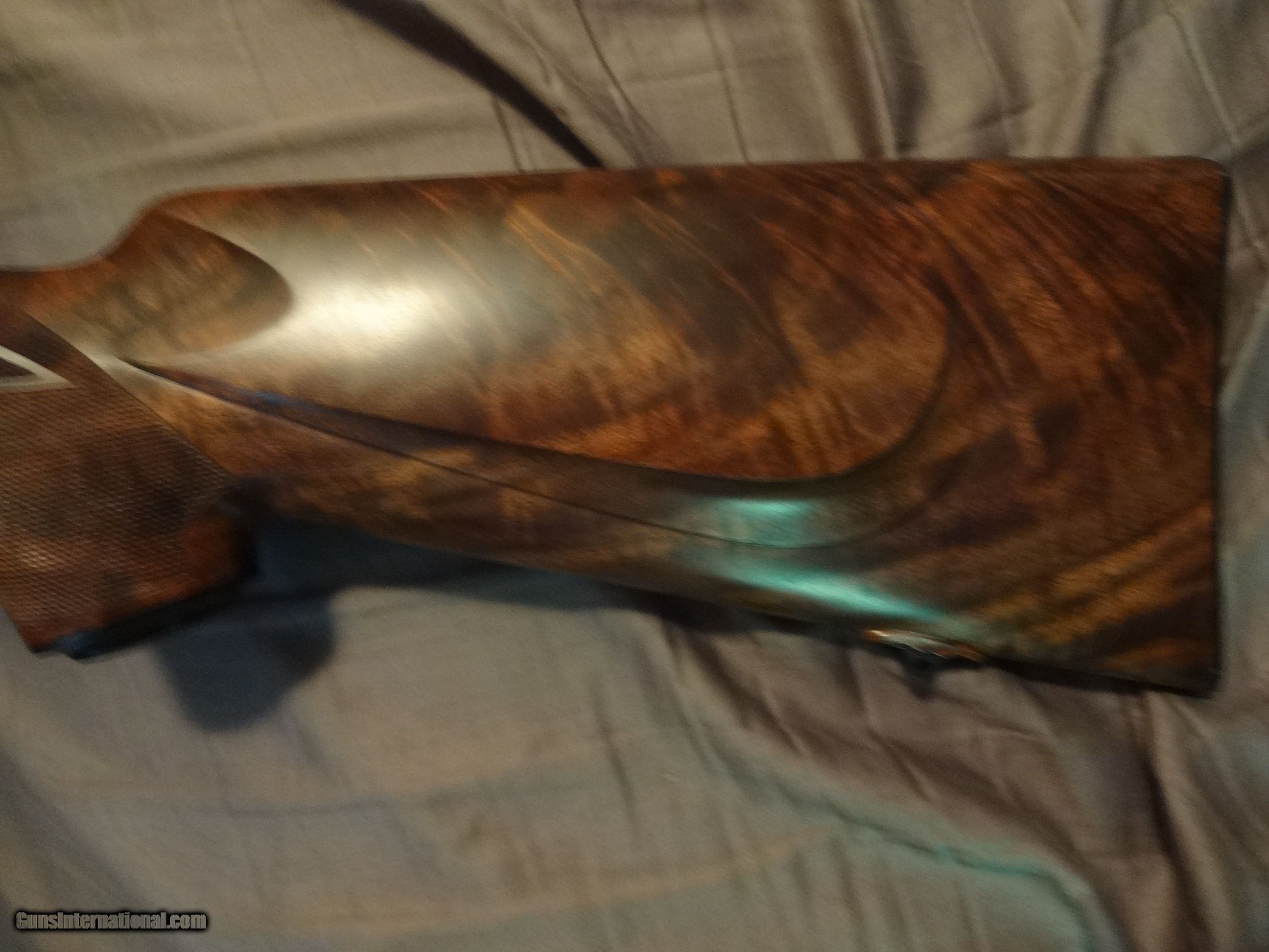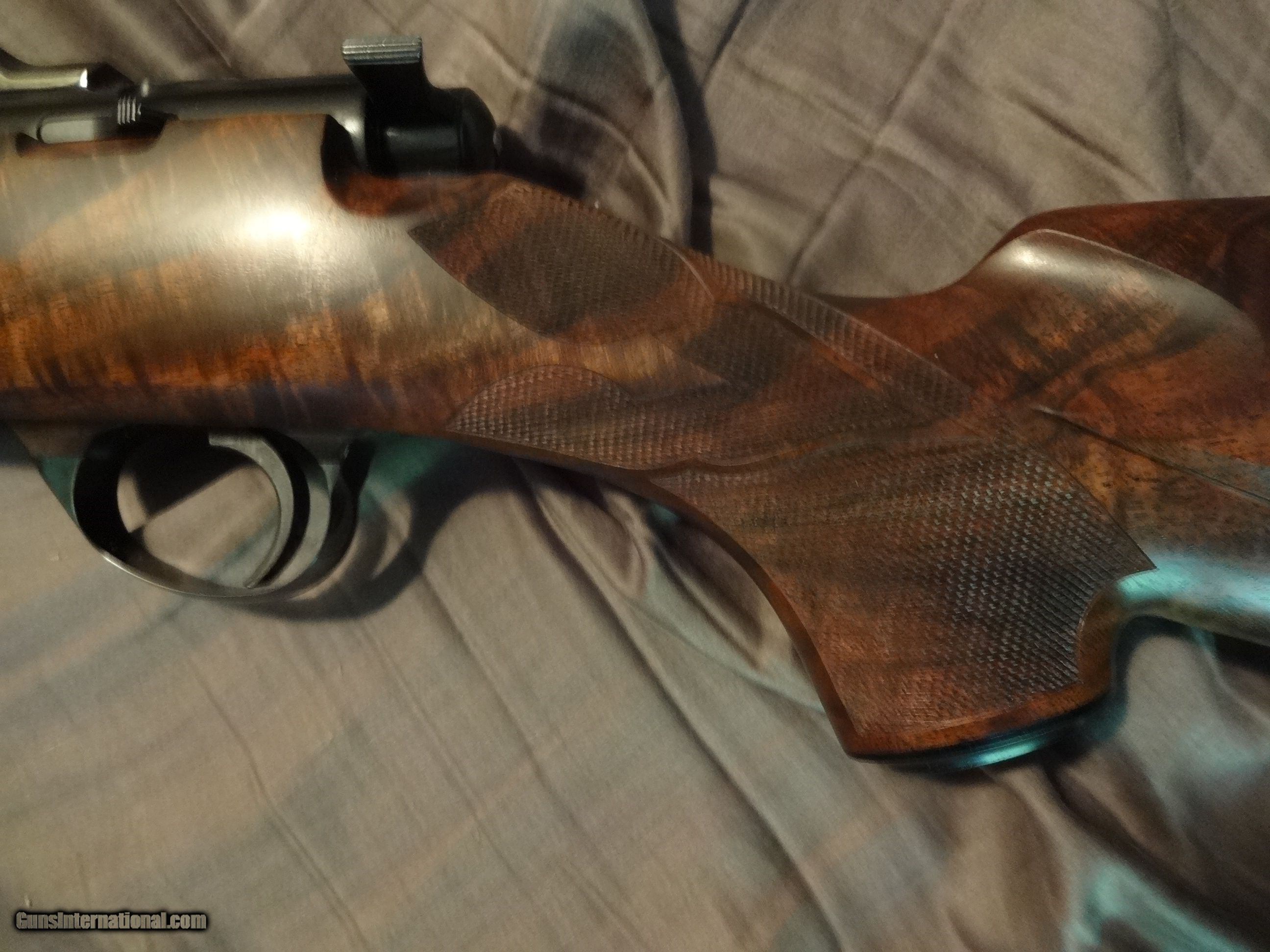 Description: SPF Built in 2007 using a new 2006 wing safety action.14" LOP. Exhibition claro.It remains unfired and flawless(other than factory test group) Manual is present.Fitted with a single stage trigger,with a lighter spring installed. Weight is 7 lbs 3 ounces with the bases installed.Well below current build cost,if you could even find some of the components.Not interested in trades or offers.Thank you. Options: Ebony tip Deluxe handmade ebony grip cap One piece steel triggerguard Steel bolt knob Checkering for knob Jeweled bolt Canyon Creek checkering pattern with spades Neidner buttplate Raised inletted swivels(guns with this option have a more slender stock) NOS S/A magazine,fitted with a gloss steel Cooper floorplate. Add the full gloss S&K bases and low rings for $100. Shipped in a plastic hard case,insured,FFL to FFL. Shipping with be $80. SOLD |