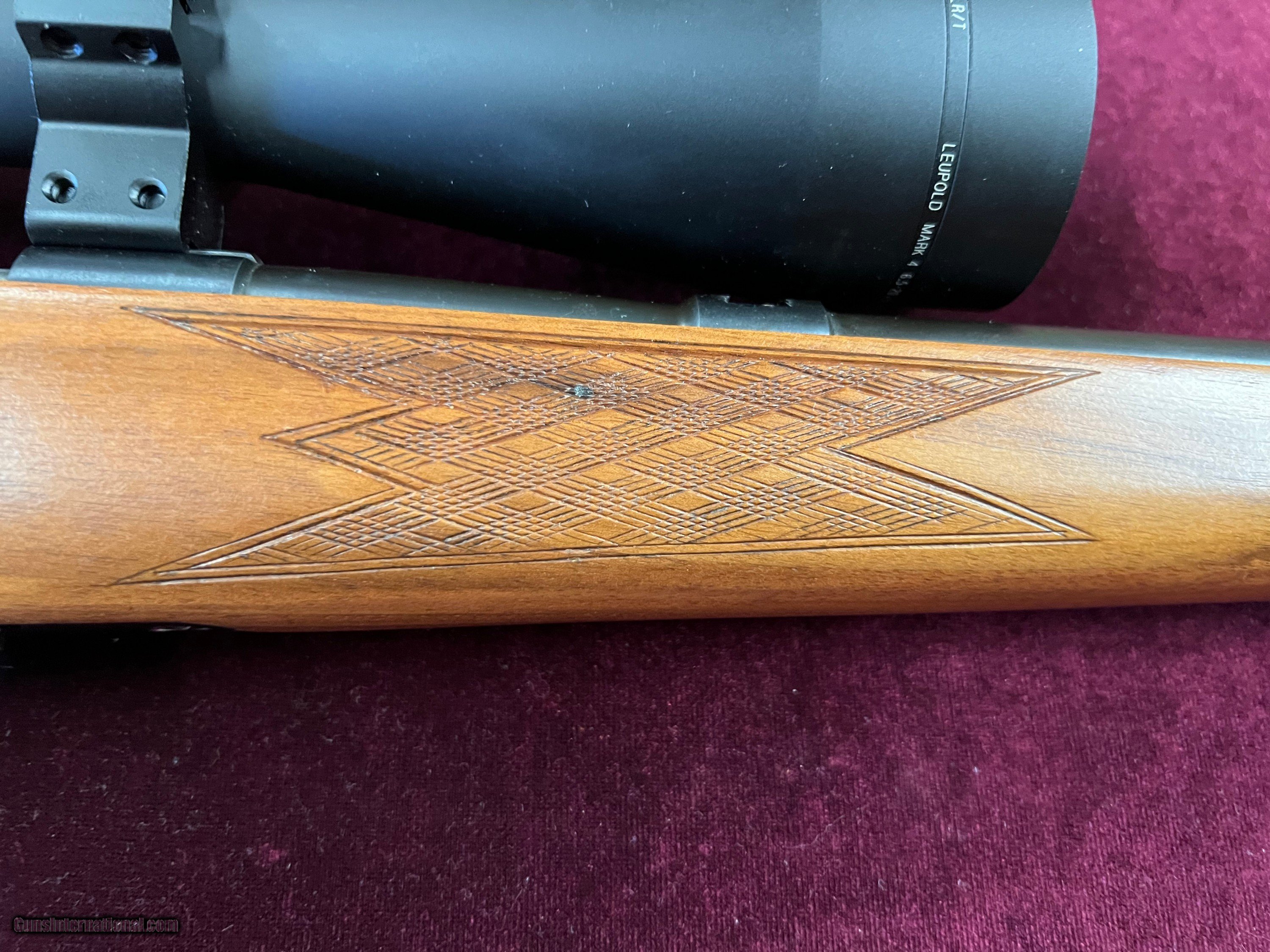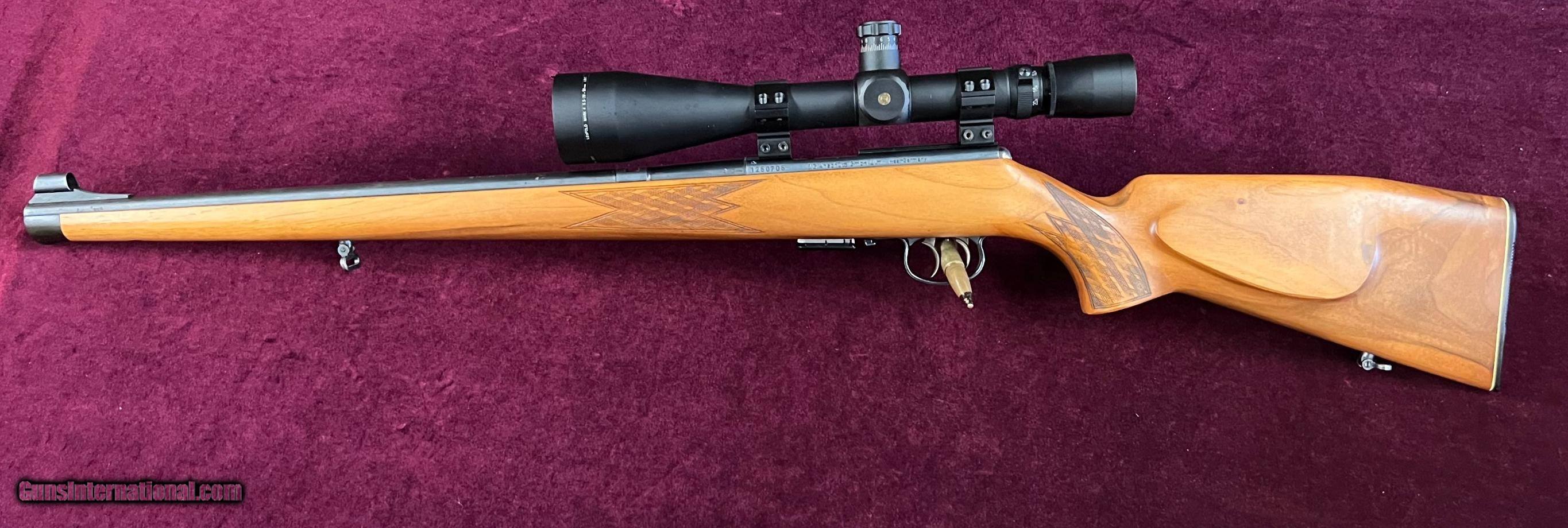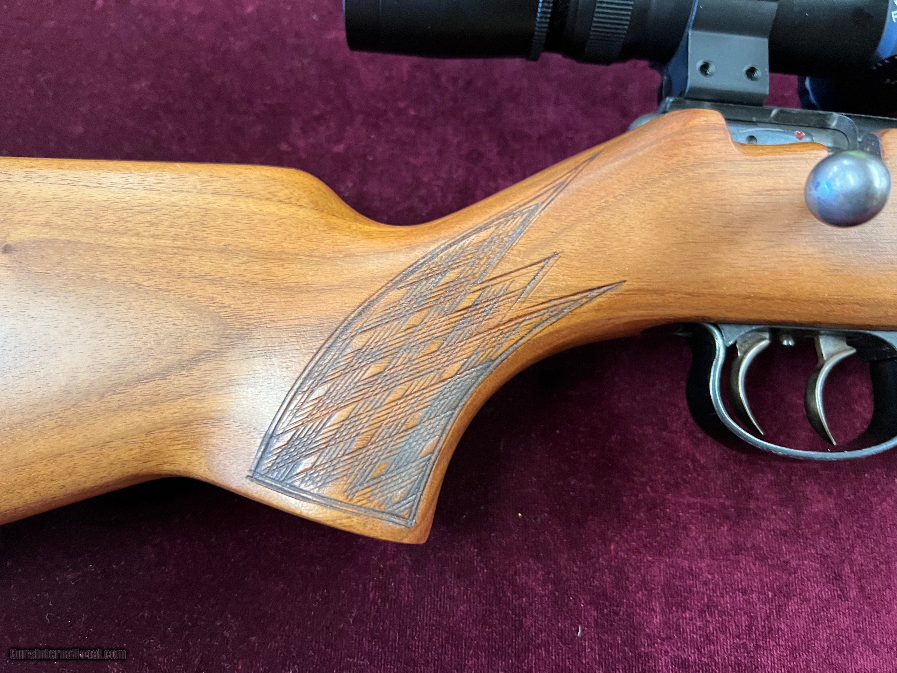 Description: Hello all. In this listing we are selling a J.G. Anschutz Model 1518. This bolt action rifle is chambered in 22 Mag sporting a 20" barrel. The blue is 99% with the wood at 99% as well. The bore is mint with the gun appearing to be fired very little. The gun also comes with Leupold Mark 4 6.5-20x50mm. The serial number on the gun is 1250705. If you have any questions or would like additional photos, please feel free to contact us. Buyer pays shipping. We charge 3% on all card transactions. We are selling this very minty gun for $1595. SOLD Rifle Caliber: .22 WMR (.22 Magnum) Manufacturer: J.G. Anschutz Model: 1518 Serial Number: 1250705 Barrel Length: 20 Condition: MINTY Metal Condition: 99% Wood Condition: 99% Bore Condition: Mint |