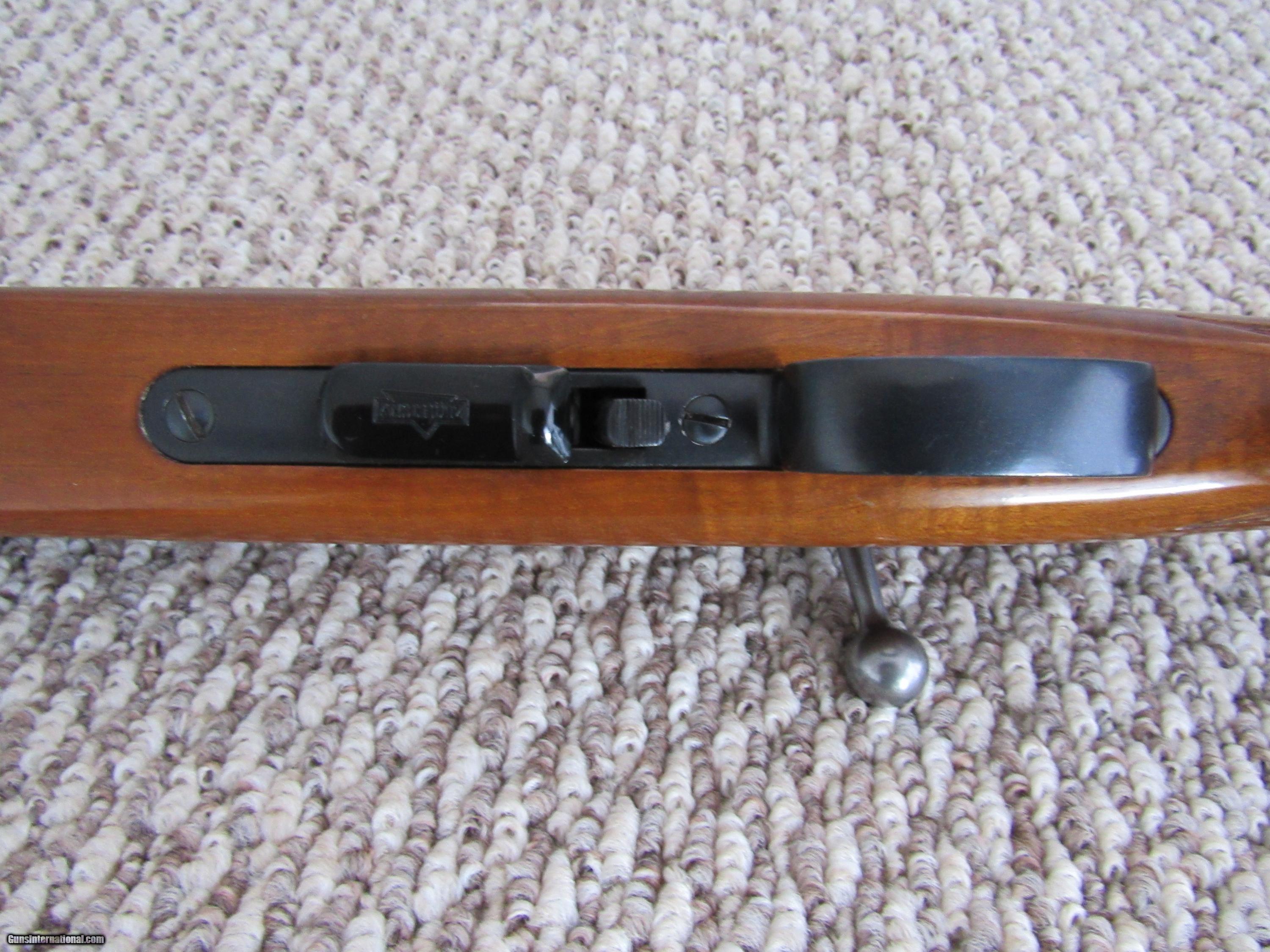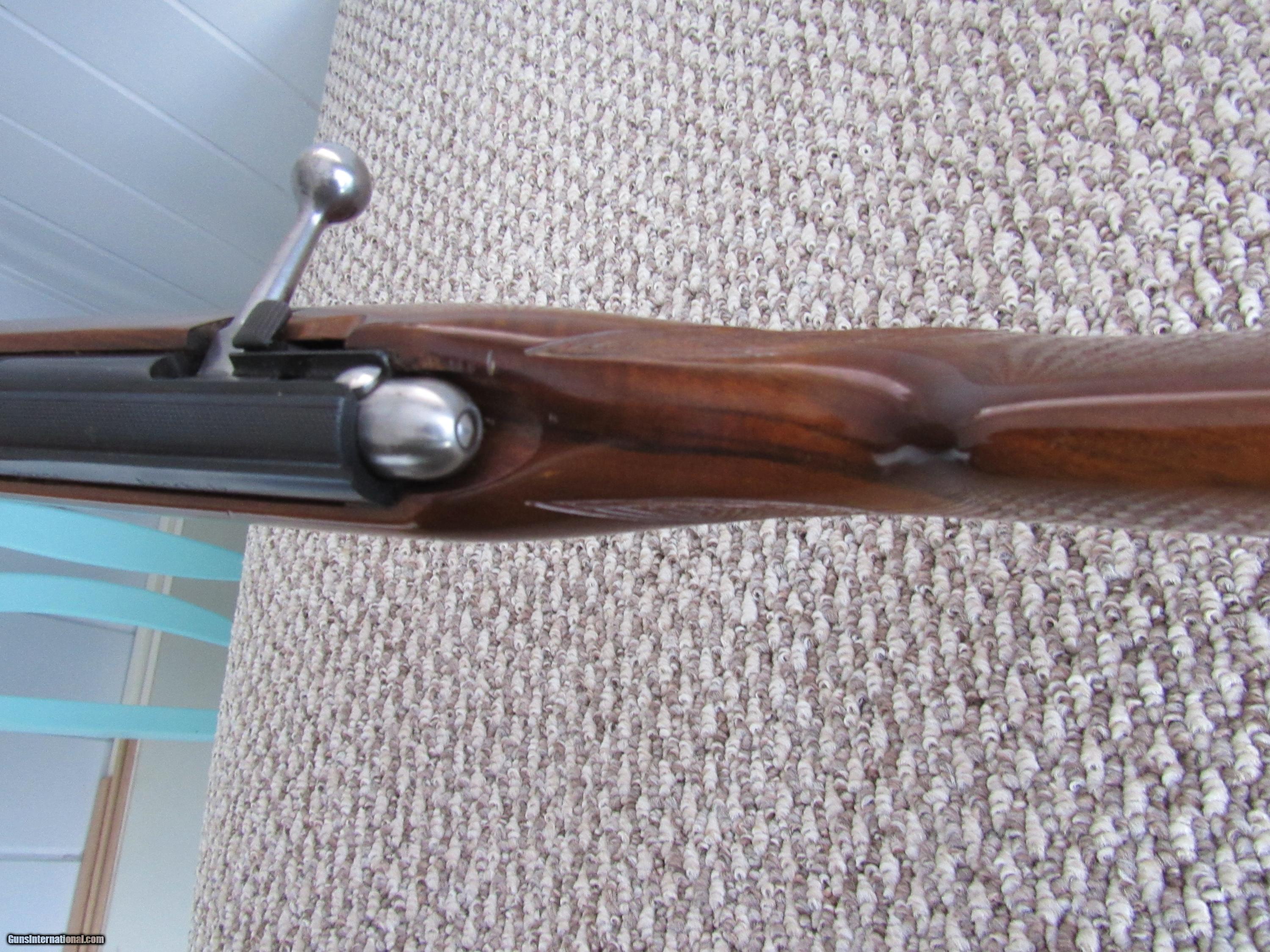 Description: Savage Anschutz 141M 22 magnum made in West Germany in excellent condition. Blueing is excellent, wood is very good to excellent with very few minor handling marks and a small ding near the receiver near the bolt. Has a contrasting wood fore-end tip, nicely cut checkering, monte-carlo stock with cheek piece, sling swivel studs, original marked Savage Anschutz butt plate, nice figured wood. Barrel 22" and has original sights with rear fold down and front with hood, a grooved receiver for scope, and excellent bore. LOP is about 13 5/8" and comes with original magazine. Gun appears to have had little use and shows minor wear. Shipping $35 ground with insurance to your FFL. Payment USPS POSTAL MONEY ORDER. Ca. buyers are welcome. SOLD Manufacturer: SAVAGE ANSCHULTZ Model: 141M Serial Number: 578786 Caliber Info: 22 MAGNUM |