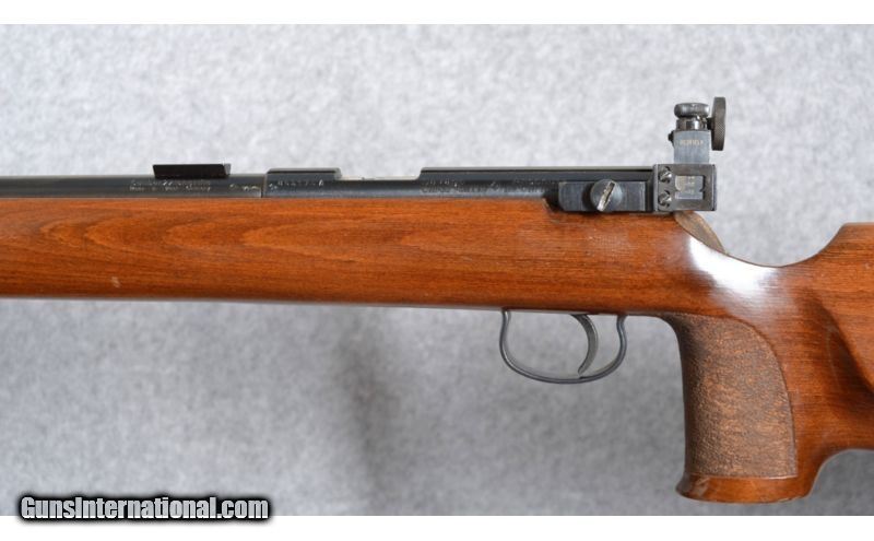 Description: SOLD Caliber Info: .22 Long Rifle Metal Condition: Very good condition with a small few minor marks. Wood Condition: Good condition overall, however, there are a number of marrs and scratches. Bore Condition: Excellent bore, bright and shiny with strong lands and grooves. Barrels: 26" Target barrel, which is fully free floating in the barrel channel. Triggers: Single. Stock: Hardwood, stippled ergonomic (palm-swell) pistol grip and a slotted forearm rail. Stock Dimensions: 13 1/2" Length of pull. Fore End: Target style with aluminum rail. Butt Pad: Checkered plastic butt-plate. Weight: 9 Lbs. Sights: Target sights, which includes, maker's front globe sight (with only one removable aperture), and a rear Redfield target, peep sight, which is micrometer adjustable for windage and elevation. Also, the receiver is grooved for 22 width ring mounts. Item Location: Boise, ID |