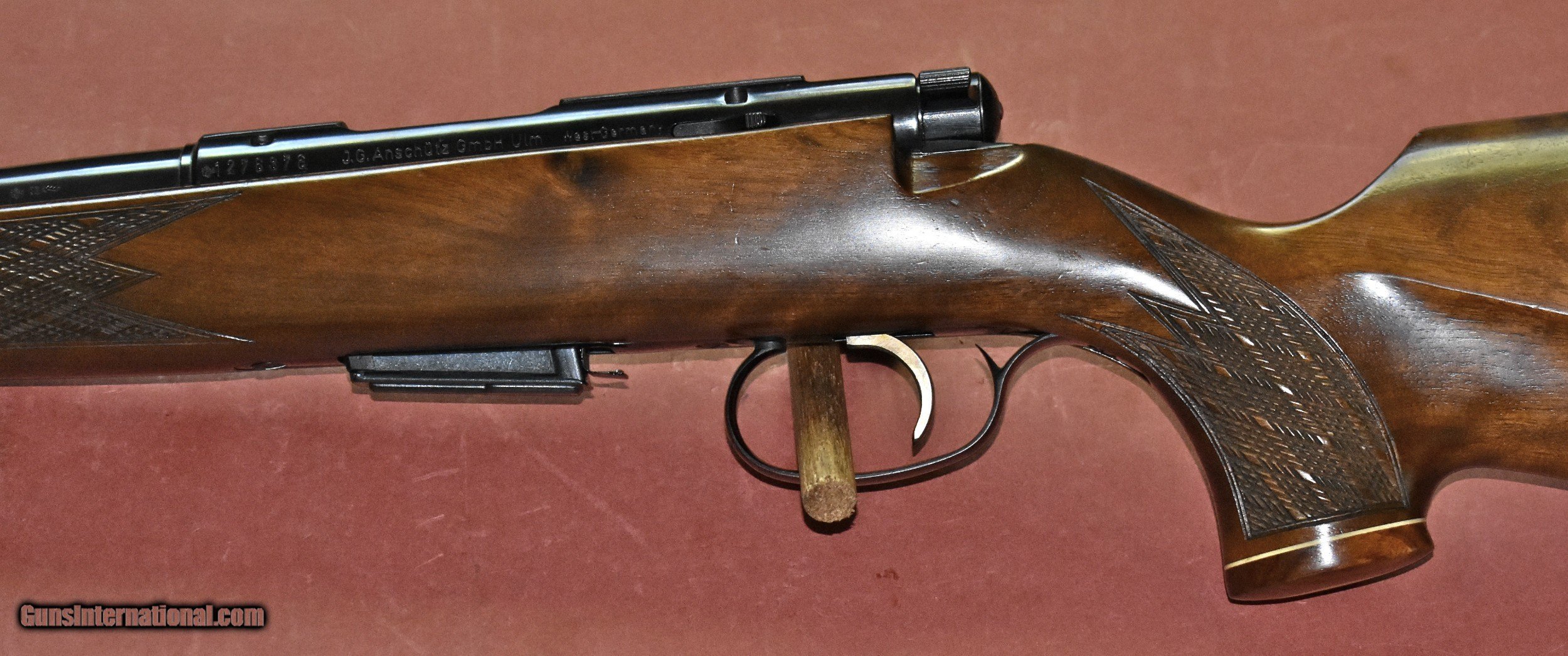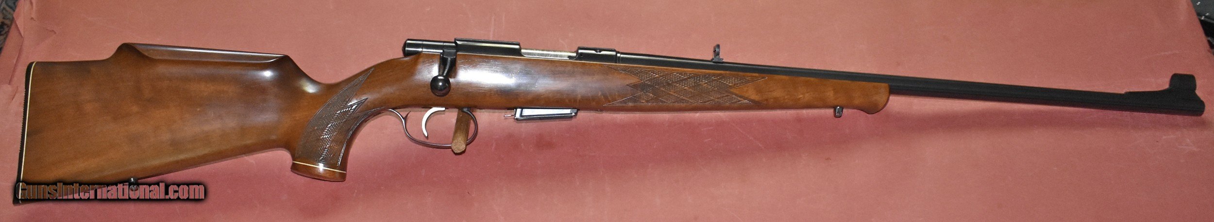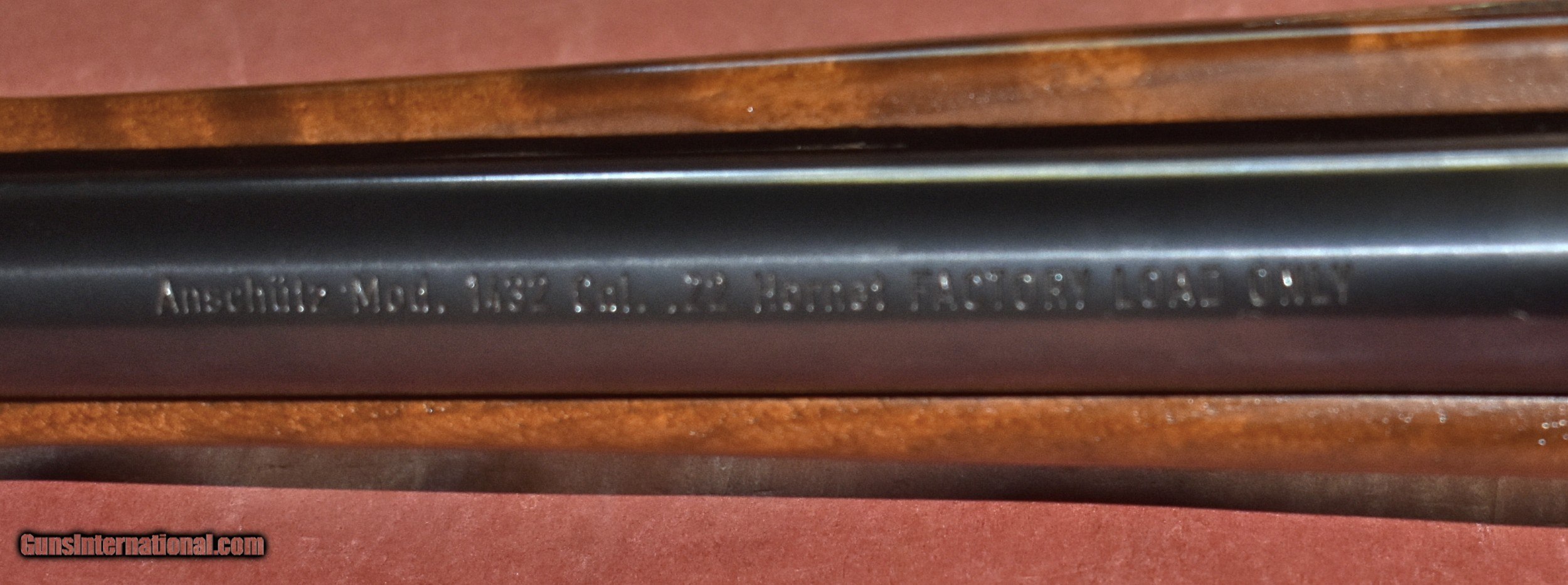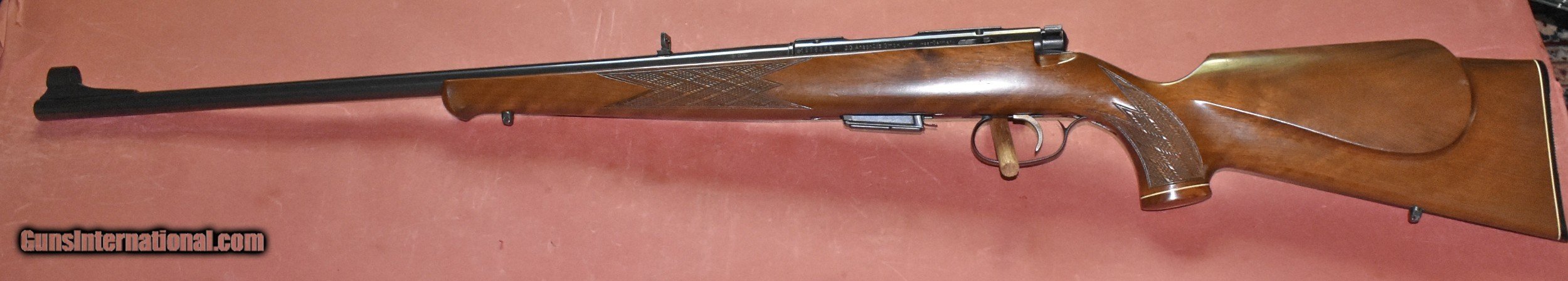 Description: West German built Anschutz model 1432 in the hard to find 22 Hornet.Built in the late 1970s,this rifle is in excellent all original condition.It retains 99% of the original blue and wood finish and has not been altered in any way.The bore is mint with sharp well defined rifling.It does not appear that there has ever been a scope mounted on the rifle..A difficult caliber to find in this model Anschutz. SOLD Manufacturer: Anschutz- West German Serial Number: 1276376 Barrel Length: 24 Caliber Info: 22 Hornet Metal Condition: mint Wood Condition: excellent Bore Condition: mint Action: bolt |