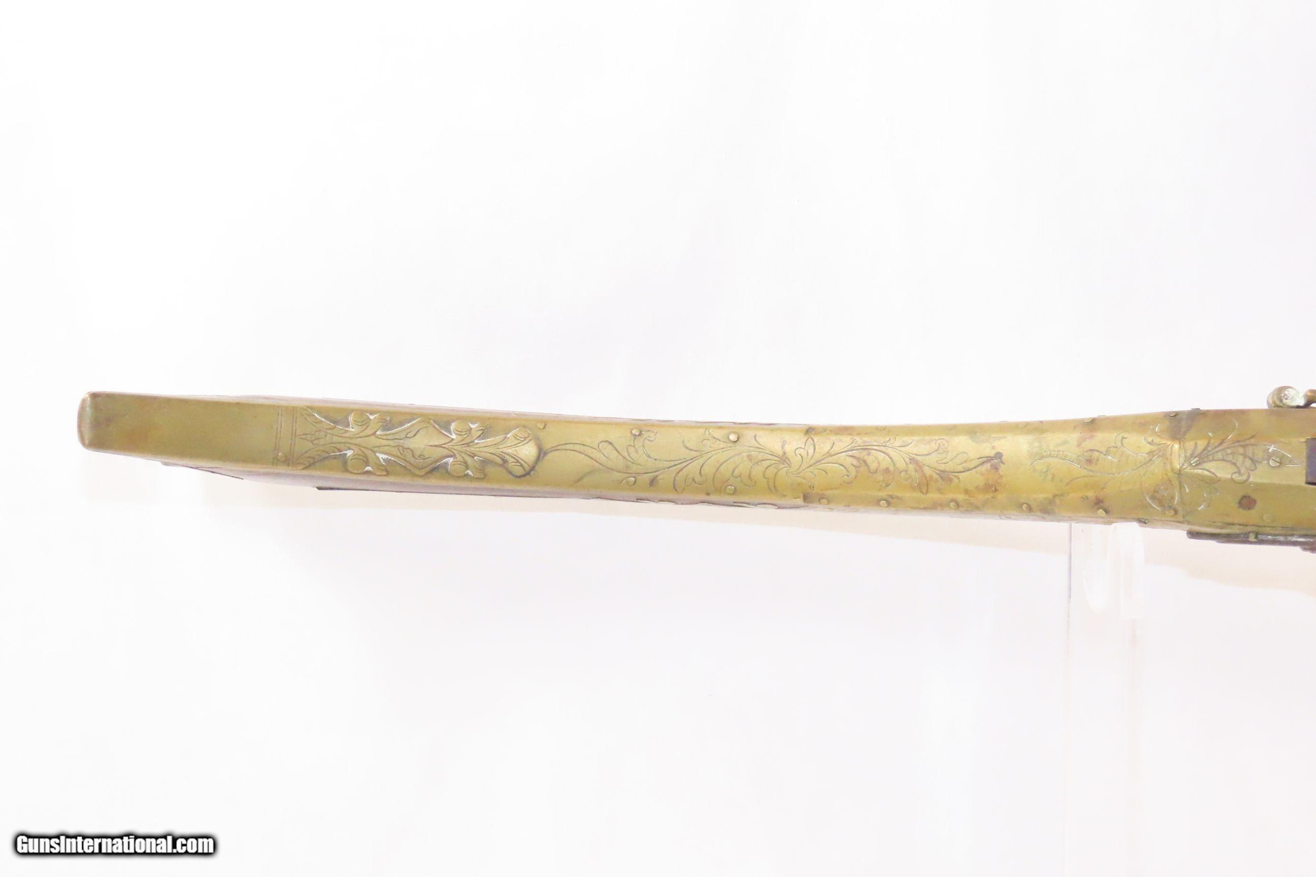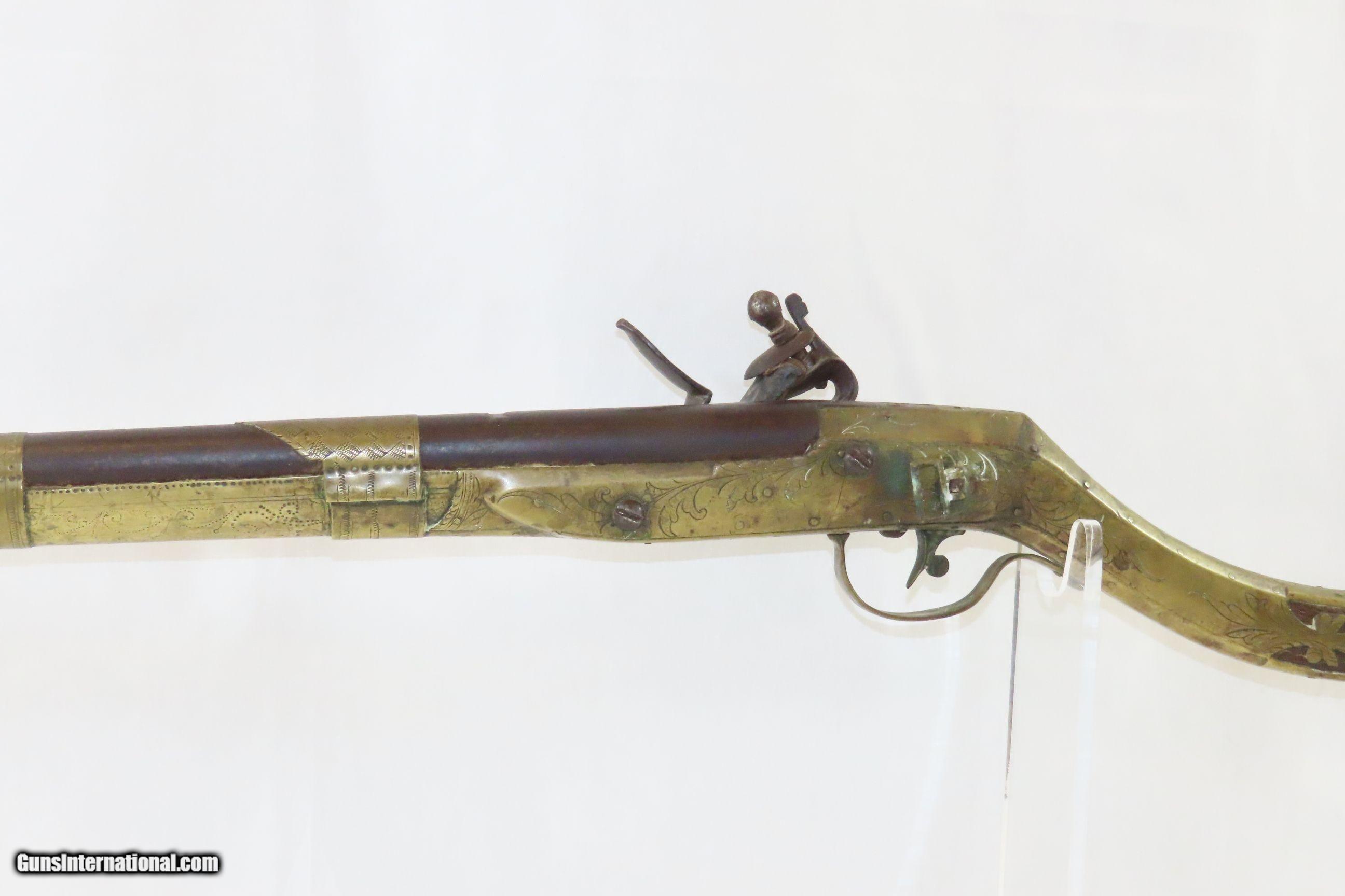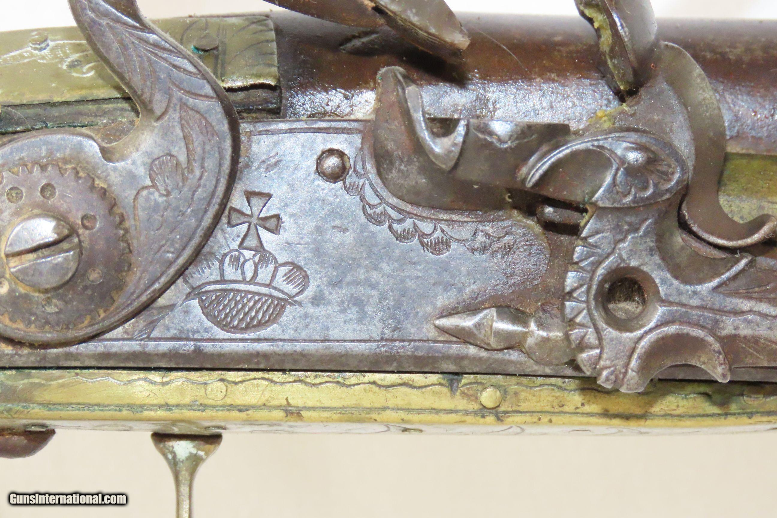 Description: Antique GREEK KARIOPHILI FLINTLOCK MUSKET .62 Cal Independence Early-1800s GREEK REVOLUTION Era Flintlock Musket Here we present an antique Greek Kariofili Flintlock Musket, made circa the early 1800s in Southeastern Europe. The Kariofili was a weapon that has close association with the Greek Revolution of 1821. This was the generic name for the ornate smoothbore flintlock muskets of the time. Though the origin of the name is sometimes disputed, the best legend is that it came from the weapons supplied by a Venetian firm named “Carlo e Figli”, or Carlo and Sons that allegedly was the source of many such weapons to the Greek freedom fighters. The history may have faded, but the name has stuck. The Greek War of Independence, also known as the Greek Revolution or the Greek Revolution of 1821, was a successful war of independence by Greek revolutionaries against the Ottoman Empire between 1821 and 1829. In 1826, the Greeks became assisted by the British Empire, Kingdom of France, and the Russian Empire, while the Ottomans were aided by their North African vassals, particularly the eyalet of Egypt. The war led to the formation of modern Greece, which would be expanded to include its modern borders in later years. The revolution is celebrated by Greeks around the world as Independence Day on March 25th every year. This one is short, light, and handy for running up and down hill and mountain as the Greek fighters were like to do. It measures 41 ½” overall with a 26 1/8” barrel. It weights just 4.7 lbs. There is a crown motif engraved deeply on the lock. The overall condition is good. Strong action. Smooth bore dim and dusty with age; untouched. The stock is engraved and ornate in design, with only a portion of the buttstock being wood, usually chestnut. Own the original! This is a legitimate antique and not a reproduction. Barrel is 26 inches. Caliber: .62 Overall condition as seen in photos. Very Fast. Very Safe. FREE SHIPPING WORLDWIDE. Delivered directly to your door by express mail! Guaranteed AUTHENTIC & Includes CERTIFICATE OF AUTHENTICITY. ancestryguns $1700 #228636 SOLD Antique: Yes |