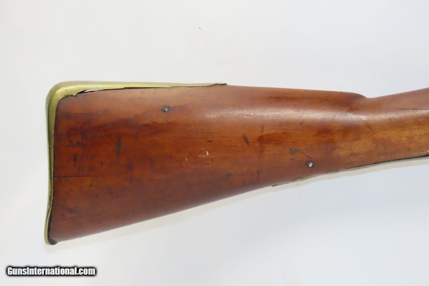 Description: “4 BT. N.J.V” British LOYALIST REVOLUTIONARY WAR Flintlock Musket Long Land 4th Battalion of New Jersey Volunteers Here we present an antique Flintlock Musket with a “4 BT. N.J.V” Marked British Brown Bess Long Land Pattern Barrel, indicating it was used by the 4th Battalion of New Jersey Volunteers, who were Loyalists to the Crown during the Revolutionary War. This also includes British proofs on the top of the barrel. Barrel length is 46 inches. Another Brown Bess musket with this marking is known and was sold in recent years for over $25,000. This musket here used the original barrel but a different lock and stock. The stock is very old, indicating that this barrel may have been captured during the conflict and made into a serviceable weapon by restocking. Another explanation would be that this historic barrel was found and a gun built around it. Whatever the case, this is a fantastic opportunity to own a very rare piece of American history: a barrel from a British Loyalist musket! The Autumn of 1776 proved very bleak for the United States rebel cause. General William Howe of the British Army had led a force of 30,000 British, Hessian and Loyal American troops victoriously through Staten Island, Long Island, Manhattan Island, the Bronx and Westchester. Hundreds and later thousands of loyalist Americans flocked into the British lines to seek protection and offer their services to the Royal army. One of these Loyalists was a Teaneck, Bergen County, New Jersey surgeon by the name of Abraham Van Buskirk. Van Buskirk was a member of an old Dutch family that had been settled in the country for many years. Like so many others he had served in the county militia but waited for the day when the British would arrive. With the clandestine help of numerous other prominent Bergen County Loyalists, Van Buskirk secretly raised a regiment for British service that would rise and form when the British entered the province. On November 20th, 1776, Lord Cornwallis led a force of 5,000 men up the palisades overlooking the Hudson River and sent the Continental Army in headlong flight towards Pennsylvania. Van Buskirk and his men could now associate freely and set about the raising and disciplining of a military regiment. The unit was named the 4th Battalion, New Jersey Volunteers. It was one of six battalions of volunteers then raising in New Jersey under Brigadier General Cortland Skinner. Skinner was the attorney general of the province under the crown, and a man of considerable influence. The men serving in the corps under his command came from all walks of life, all ethnic groups and all social classes. The typical officer was a farmer/gentleman settled on several hundred acres of land while the rank and file were usually smaller farmers, mechanics, tradesmen or laborers. The 4th Battalion, New Jersey Volunteers was composed of ten companies of varying strength. The authorized strength of the battalion was 500 Rank and File but it never achieved this strength at any one time. However, during the course of the war, over 750 officers and men would serve in their ranks. The overall condition is good. Functioning action. Reconverted. Dim, smooth bore. The stock is solid but does contain a repair in front of the lock and a stable crack on the right wrist. It has been refinished but a look inside the inletting confirms that this stock is quite old. The trigger guard and other brass hardware are later additions. Own the original! This is a legitimate antique and not a reproduction. Barrel is 46 inches. Caliber: .75 Flintlock Overall condition as seen in photos. Very Fast. Very Safe. FREE SHIPPING WORLDWIDE. Delivered directly to your door by express mail! Guaranteed AUTHENTIC & Includes CERTIFICATE OF AUTHENTICITY. ancestryguns $5645 #210389 SOLD Antique: Yes |