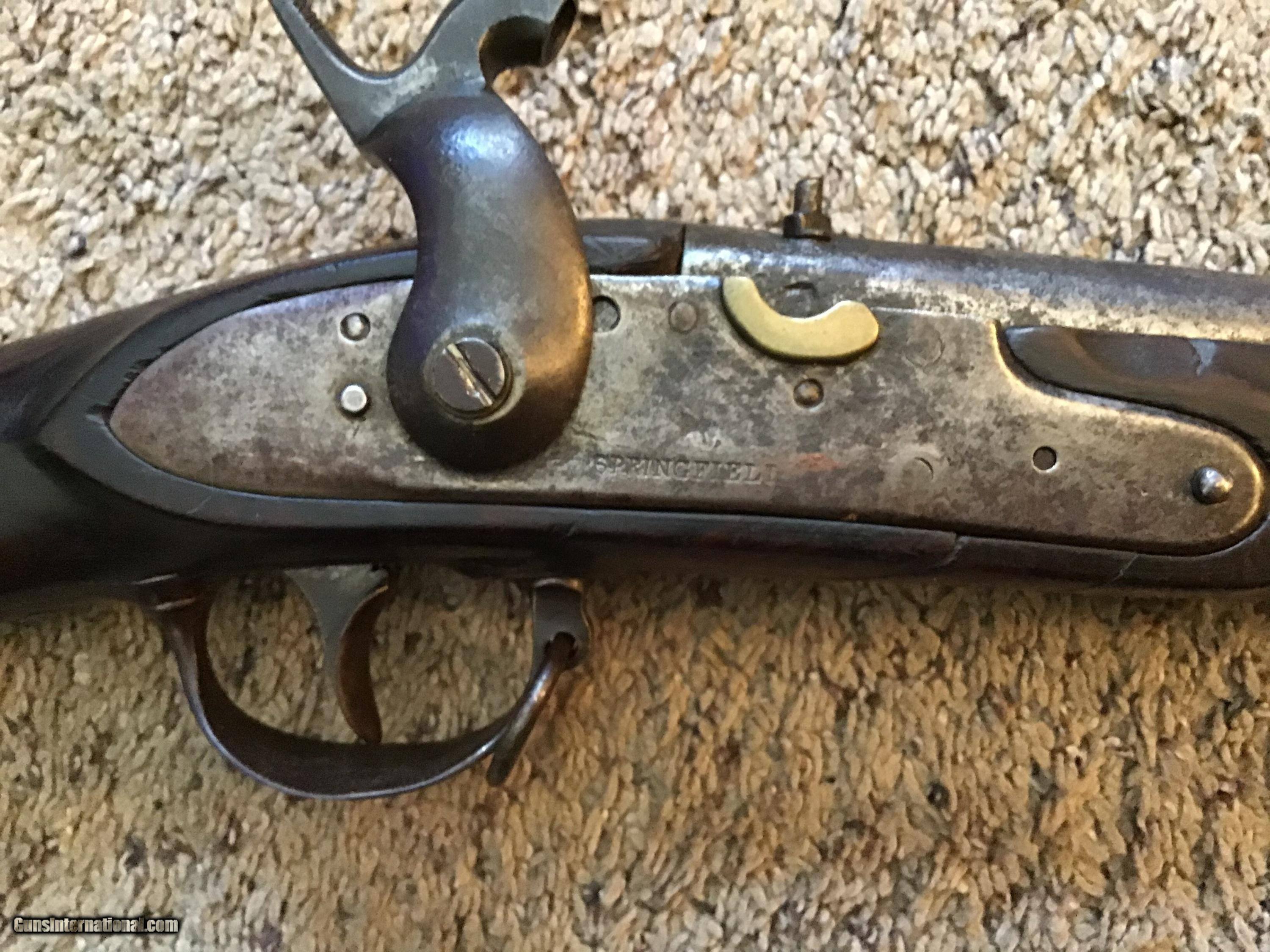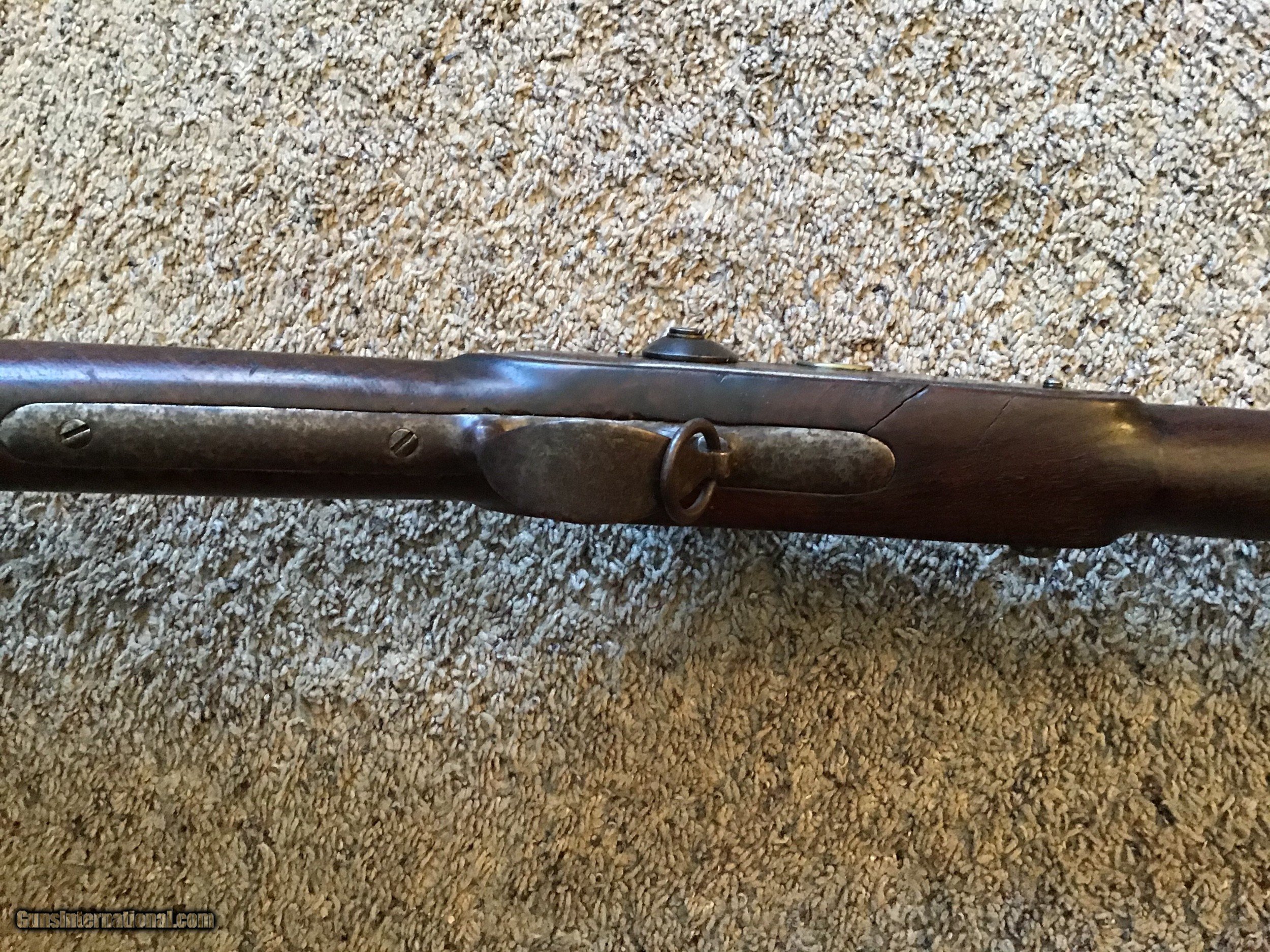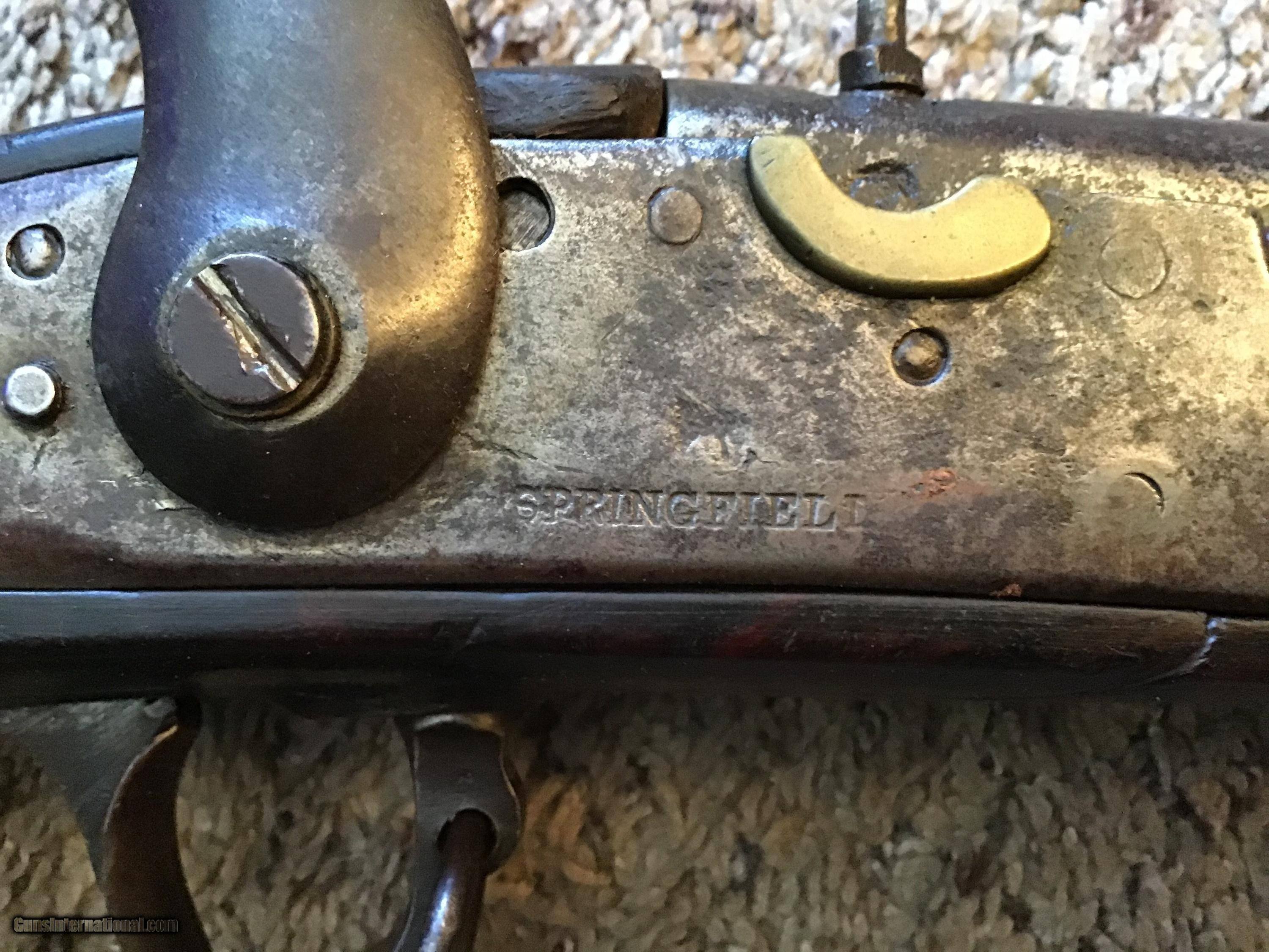 Description: On Hold Sale Pending. This is listed in Fladermans Gide as a 1808 Contract musket made by H. OSBORNE of Springfield, Mass and is correctly marked Springfield with the Eagles head on the lock and the Breach. This is a contract US musket made for the army originally as a flintlock and converted by the armory prior to the civil war. The full length walnut stock is in good condition but does have several cracks on the bottom of the stock near the trigger gaurd and near the top lock screw (see photos). The barrel is full length 42 inches with the attached bayonet lug near the muzzle. The lock is correctly marked Springfield and functions fine. All metal parts are a mix of bright and brown patina. The gun appears correct and complete with sling swivels and ramrod. Please feel free to contact me with any questions. Shipping will be. Actual cost by insured priority mail with tracking. On Hold Sale Pending SOLD Antique: Yes |