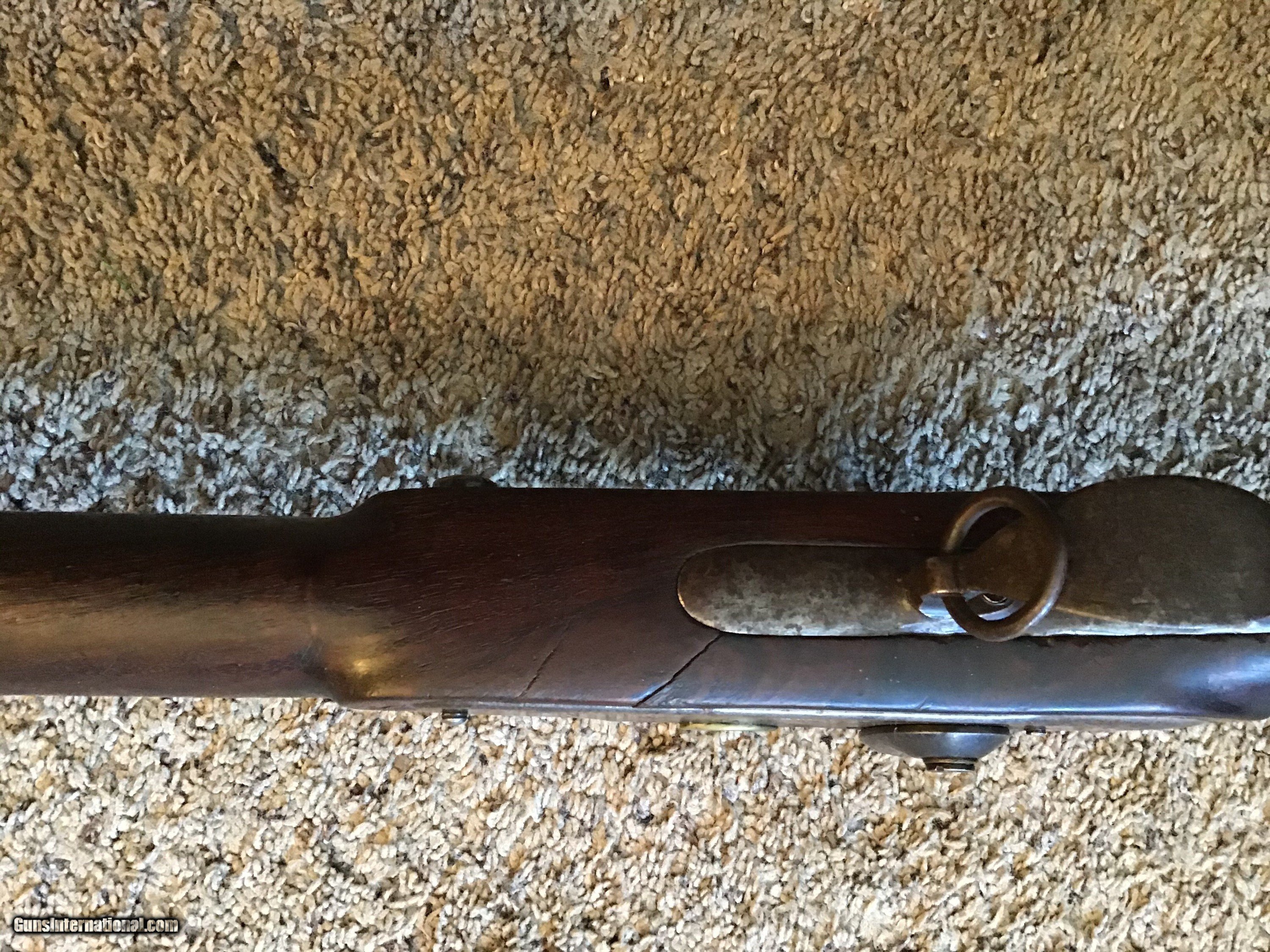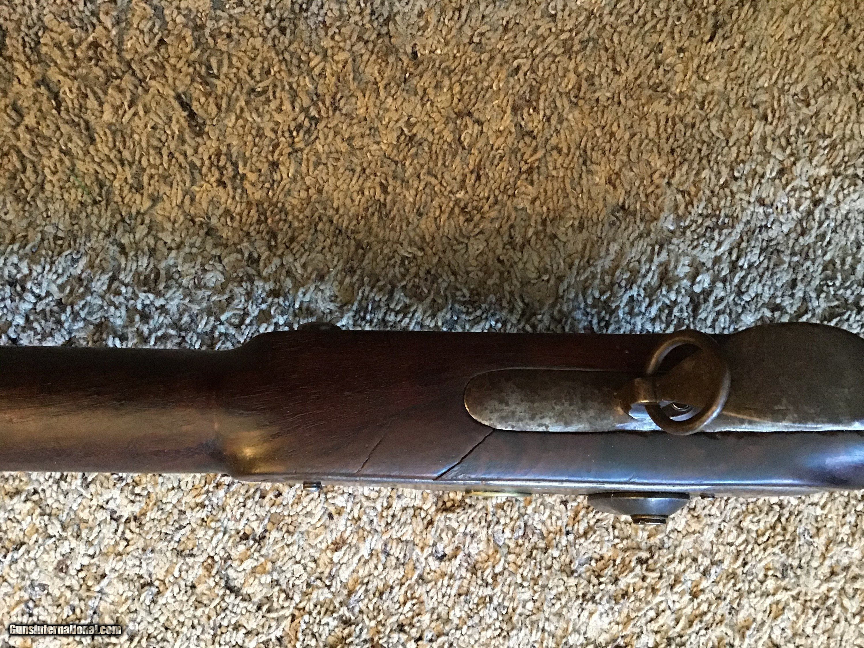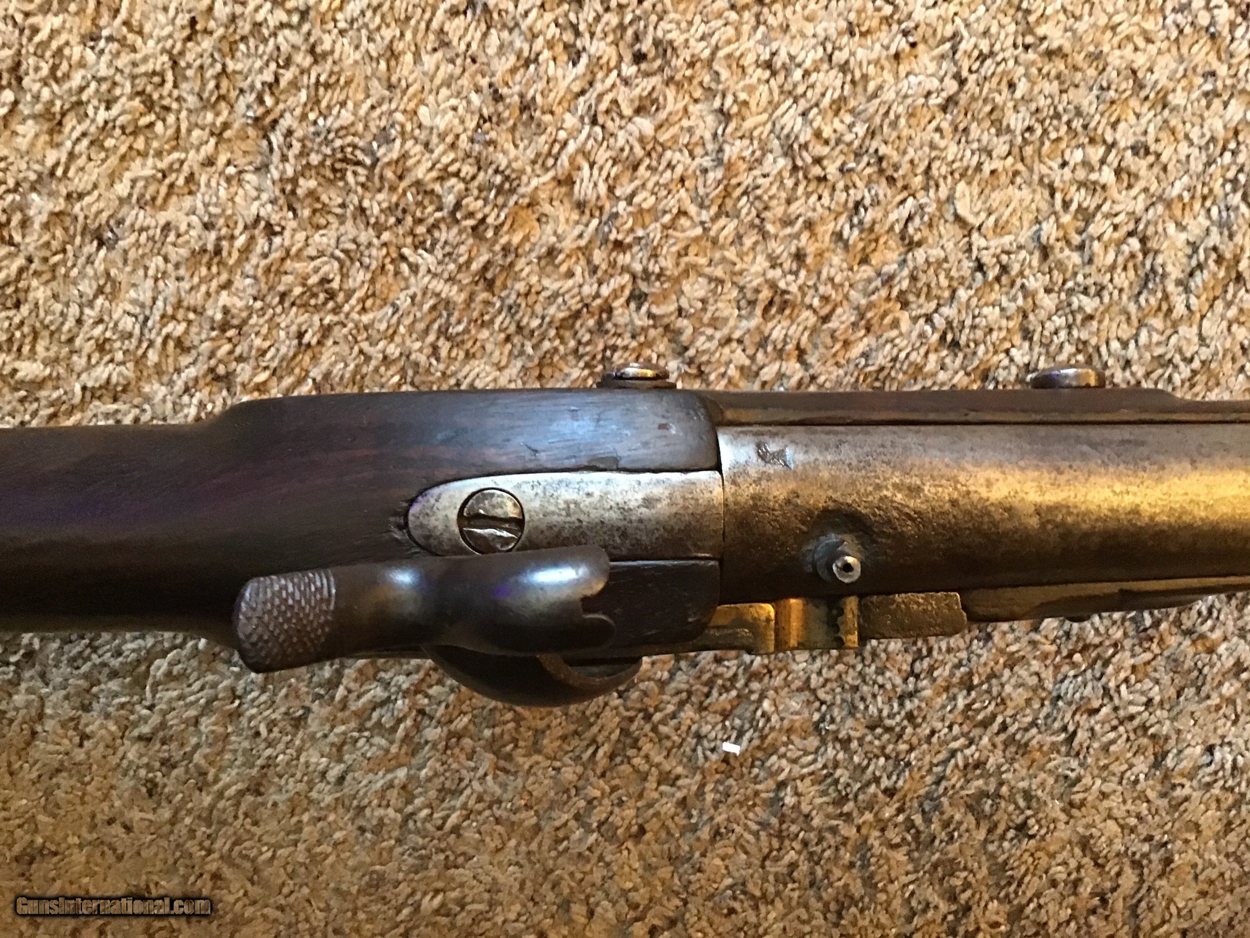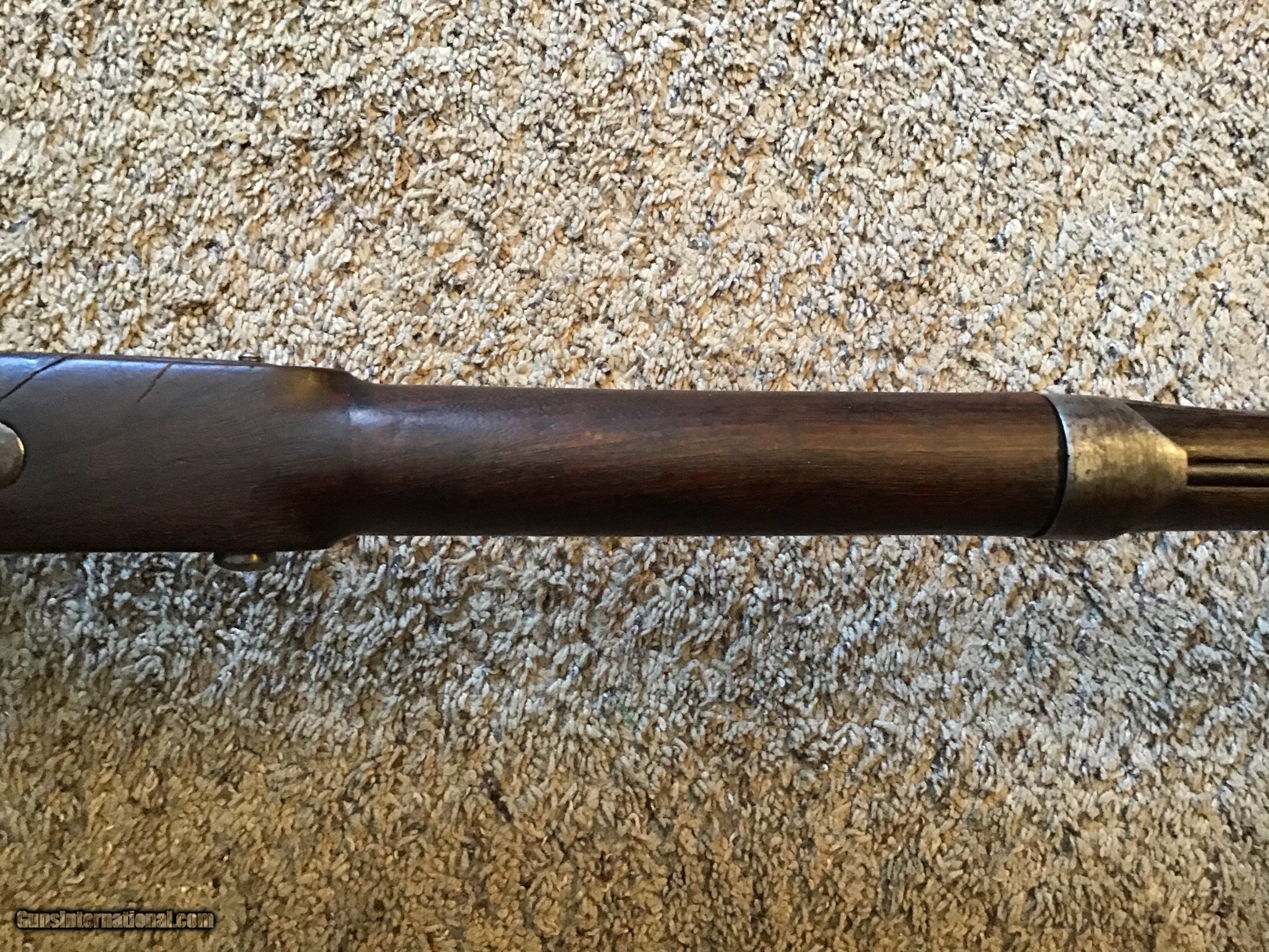 Description: On Hold Sale Pending. This is listed in Fladermans Gide as a 1808 Contract musket made by H. OSBORNE of Springfield, Mass and is correctly marked Springfield with the Eagles head on the lock and the Breach. This is a contract US musket made for the army originally as a flintlock and converted by the armory prior to the civil war. The full length walnut stock is in good condition but does have several cracks on the bottom of the stock near the trigger gaurd and near the top lock screw (see photos). The barrel is full length 42 inches with the attached bayonet lug near the muzzle. The lock is correctly marked Springfield and functions fine. All metal parts are a mix of bright and brown patina. The gun appears correct and complete with sling swivels and ramrod. Please feel free to contact me with any questions. Shipping will be. Actual cost by insured priority mail with tracking. On Hold Sale Pending SOLD Antique: Yes |