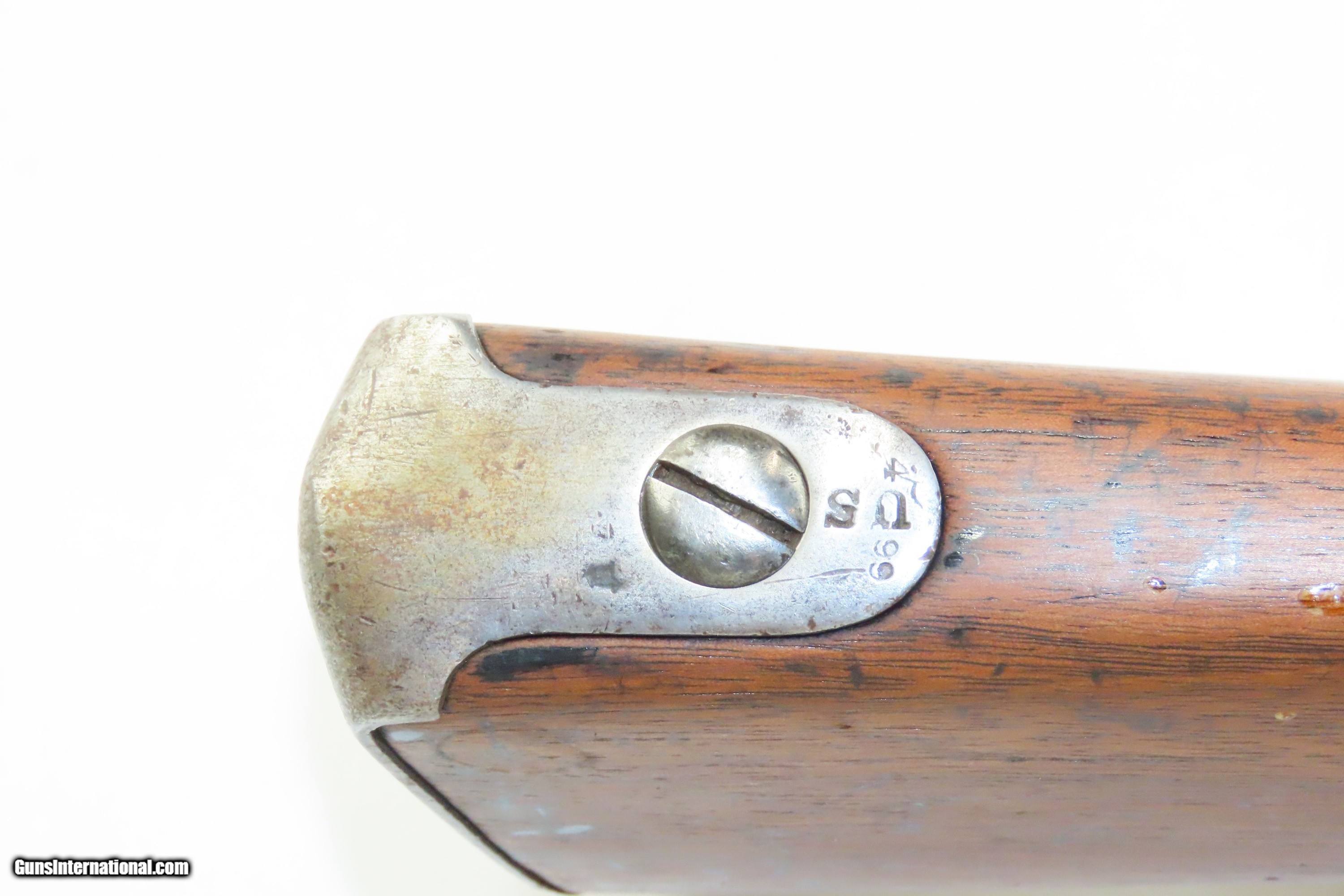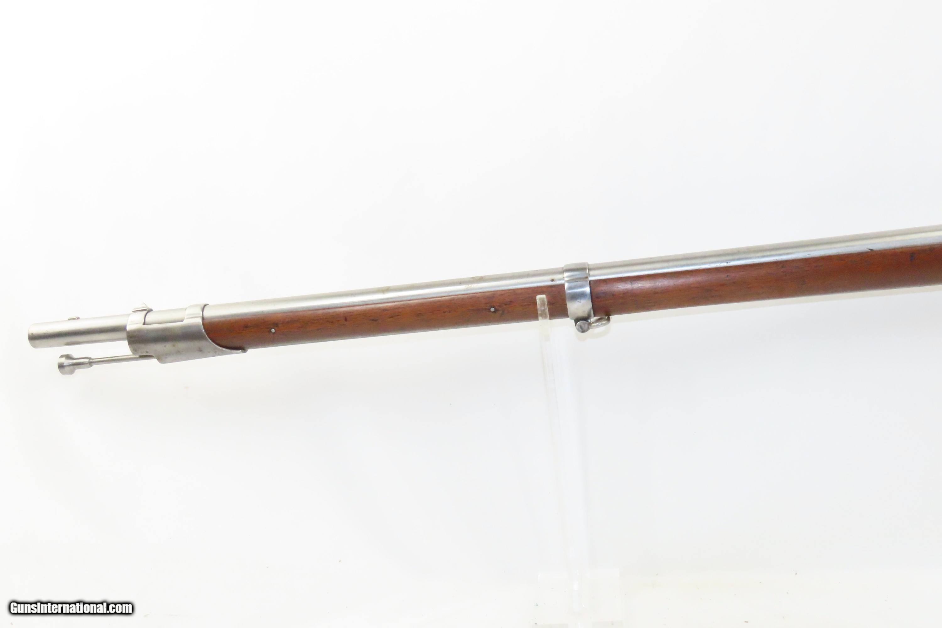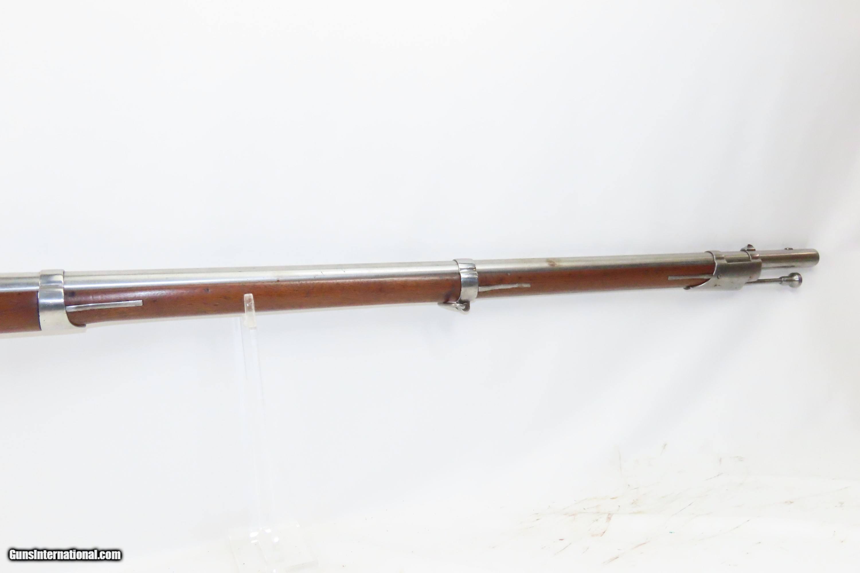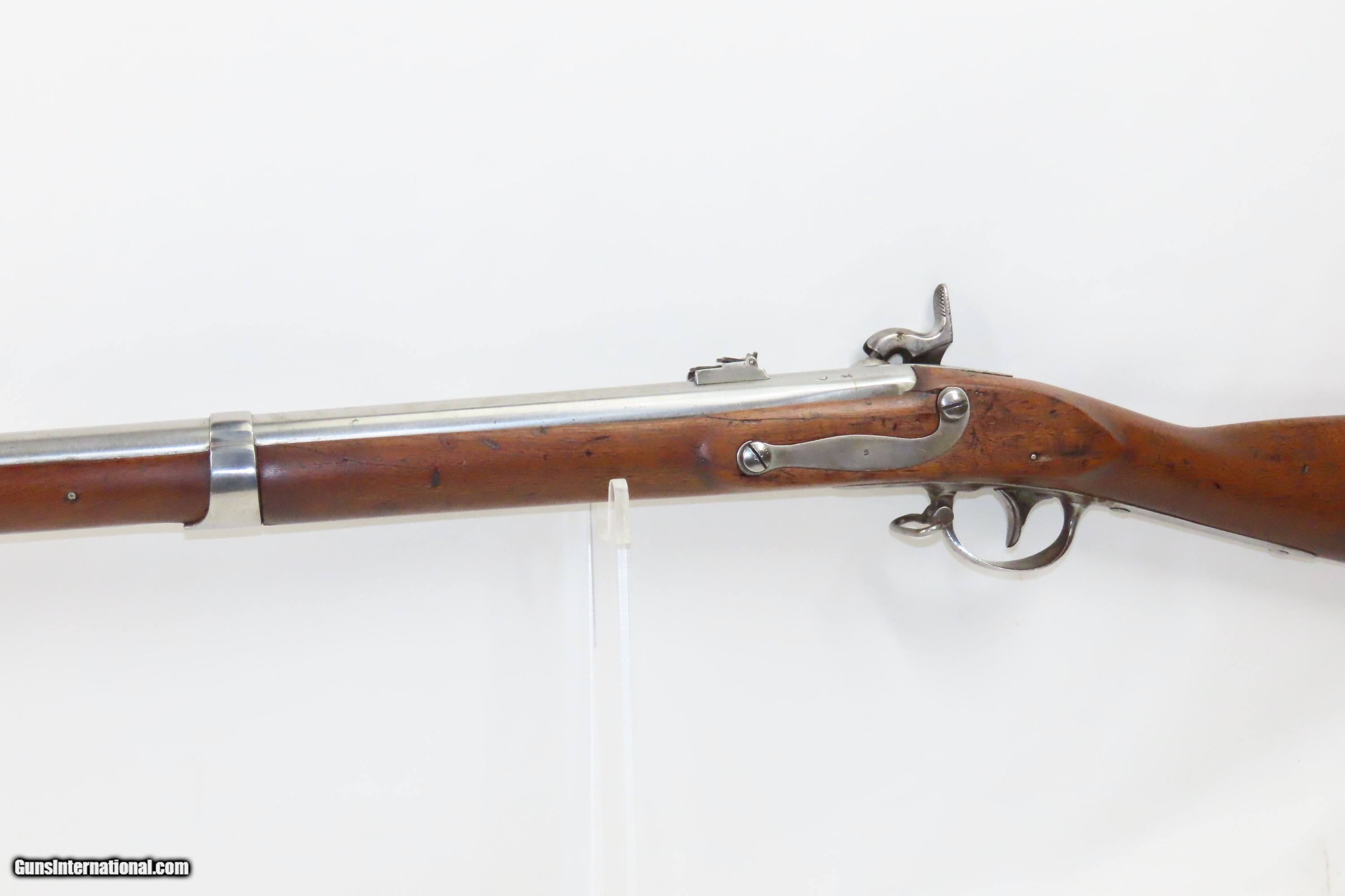 Description: 1827 Dated Antique U.S. SPRINGFIELD M1816 “Bolster” Conversion Perc. MUSKET Flintlock to Percussion Conversion PRE-CIVIL WAR Here we present an antique Springfield U.S. Model 1816 Percussion Conversion Musket, manufactured in Springfield, Massachusetts in 1827. This example would have started out life as a flintlock and later converted to percussion likely in the years prior to the American Civil War. The M1816 was in production at Springfield (325,000) and Harpers Ferry (350,000) between 1816 to 1844 with around 675,000 muskets produced during this run. Additionally, more than a dozen contractors also made Model 1816 Muskets during its production years, adding more than 146,000 muskets for a grand total of 821,421 Model 1816 Muskets produced. It saw service during the Mexican-American War and was even pressed into service during the Civil War in both the updated percussion and the old flintlock format. The advent of the Model 1842 Musket made the M1816 obsolete, but not unserviceable. Eventually, most made their way to storehouses and armories. Beginning in 1848, when more than 700,000 of all types of flintlock muskets were reported in storage, the most serviceable were converted to percussion ignition. Three types of alteration were performed. All alterations involved grinding the flash pan down and replacing the hammer. The "French Style" conversion added a drum and nipple to the flashhole. The "Belgian Style", or “Cone Conversion”, involved plugging the vent hole with a weld and tapping a nipple directly into the barrel. This is the type of conversion that was only done at Harper's Ferry and Springfield and is sometimes referred to as an "armory conversion." The last type of conversion was used late in the renovation process, beginning about 1852, and involved adding a bolster to the breech of the barrel, so it is termed the "Bolster Style" of conversion. The overall condition is good. Polished bright. The action is excellent. The bore is smooth and patinated. The walnut stock has been repaired around the barrel tang on both side, has a stable split on the left side forward of the left stock flat, and along the bottom right ahead of the lock. Own the original! This is a legitimate antique and not a reproduction. Barrel is 41-1/8 inches. Caliber: .69 Percussion Overall condition as seen in photos. Very Fast. Very Safe. FREE SHIPPING WORLDWIDE. Delivered directly to your door by express mail! Guaranteed AUTHENTIC & Includes CERTIFICATE OF AUTHENTICITY. ancestryguns $1600 #233054 SOLD Antique: Yes |