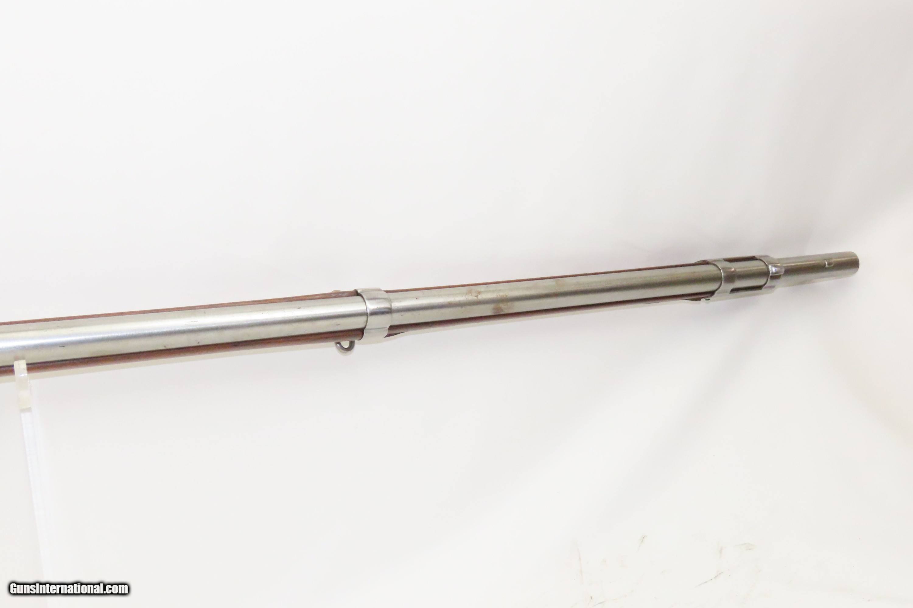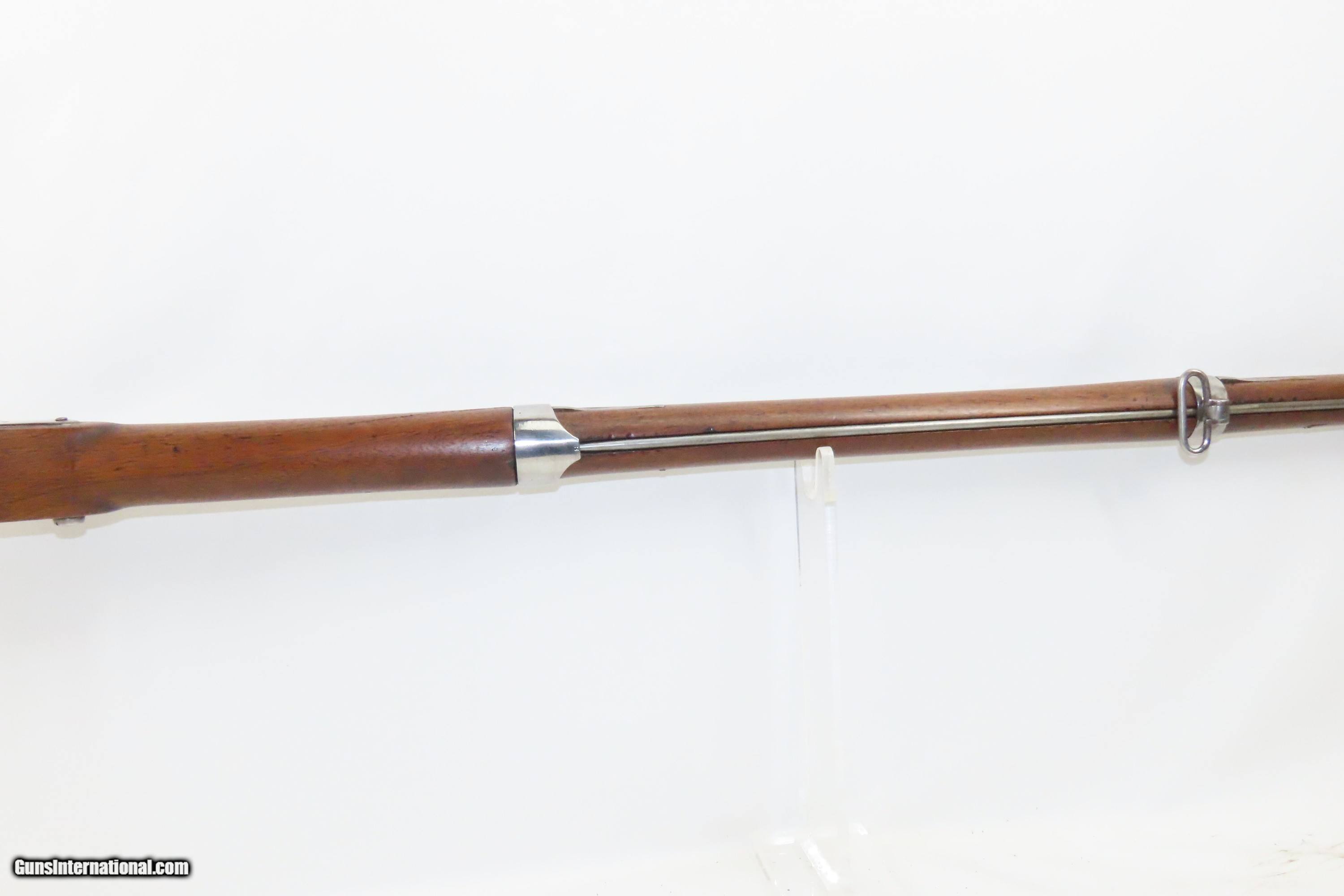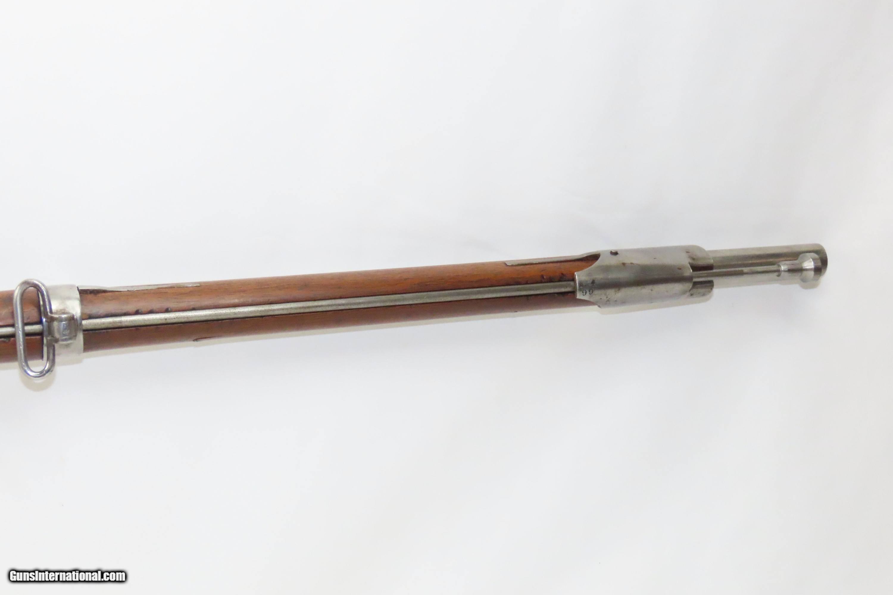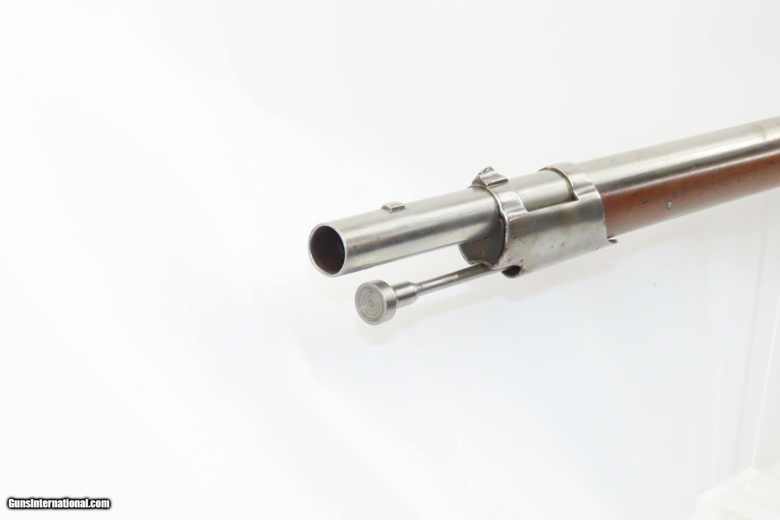 Description: 1827 Dated Antique U.S. SPRINGFIELD M1816 “Bolster” Conversion Perc. MUSKET Flintlock to Percussion Conversion PRE-CIVIL WAR Here we present an antique Springfield U.S. Model 1816 Percussion Conversion Musket, manufactured in Springfield, Massachusetts in 1827. This example would have started out life as a flintlock and later converted to percussion likely in the years prior to the American Civil War. The M1816 was in production at Springfield (325,000) and Harpers Ferry (350,000) between 1816 to 1844 with around 675,000 muskets produced during this run. Additionally, more than a dozen contractors also made Model 1816 Muskets during its production years, adding more than 146,000 muskets for a grand total of 821,421 Model 1816 Muskets produced. It saw service during the Mexican-American War and was even pressed into service during the Civil War in both the updated percussion and the old flintlock format. The advent of the Model 1842 Musket made the M1816 obsolete, but not unserviceable. Eventually, most made their way to storehouses and armories. Beginning in 1848, when more than 700,000 of all types of flintlock muskets were reported in storage, the most serviceable were converted to percussion ignition. Three types of alteration were performed. All alterations involved grinding the flash pan down and replacing the hammer. The "French Style" conversion added a drum and nipple to the flashhole. The "Belgian Style", or “Cone Conversion”, involved plugging the vent hole with a weld and tapping a nipple directly into the barrel. This is the type of conversion that was only done at Harper's Ferry and Springfield and is sometimes referred to as an "armory conversion." The last type of conversion was used late in the renovation process, beginning about 1852, and involved adding a bolster to the breech of the barrel, so it is termed the "Bolster Style" of conversion. The overall condition is good. Polished bright. The action is excellent. The bore is smooth and patinated. The walnut stock has been repaired around the barrel tang on both side, has a stable split on the left side forward of the left stock flat, and along the bottom right ahead of the lock. Own the original! This is a legitimate antique and not a reproduction. Barrel is 41-1/8 inches. Caliber: .69 Percussion Overall condition as seen in photos. Very Fast. Very Safe. FREE SHIPPING WORLDWIDE. Delivered directly to your door by express mail! Guaranteed AUTHENTIC & Includes CERTIFICATE OF AUTHENTICITY. ancestryguns $1600 #233054 SOLD Antique: Yes |