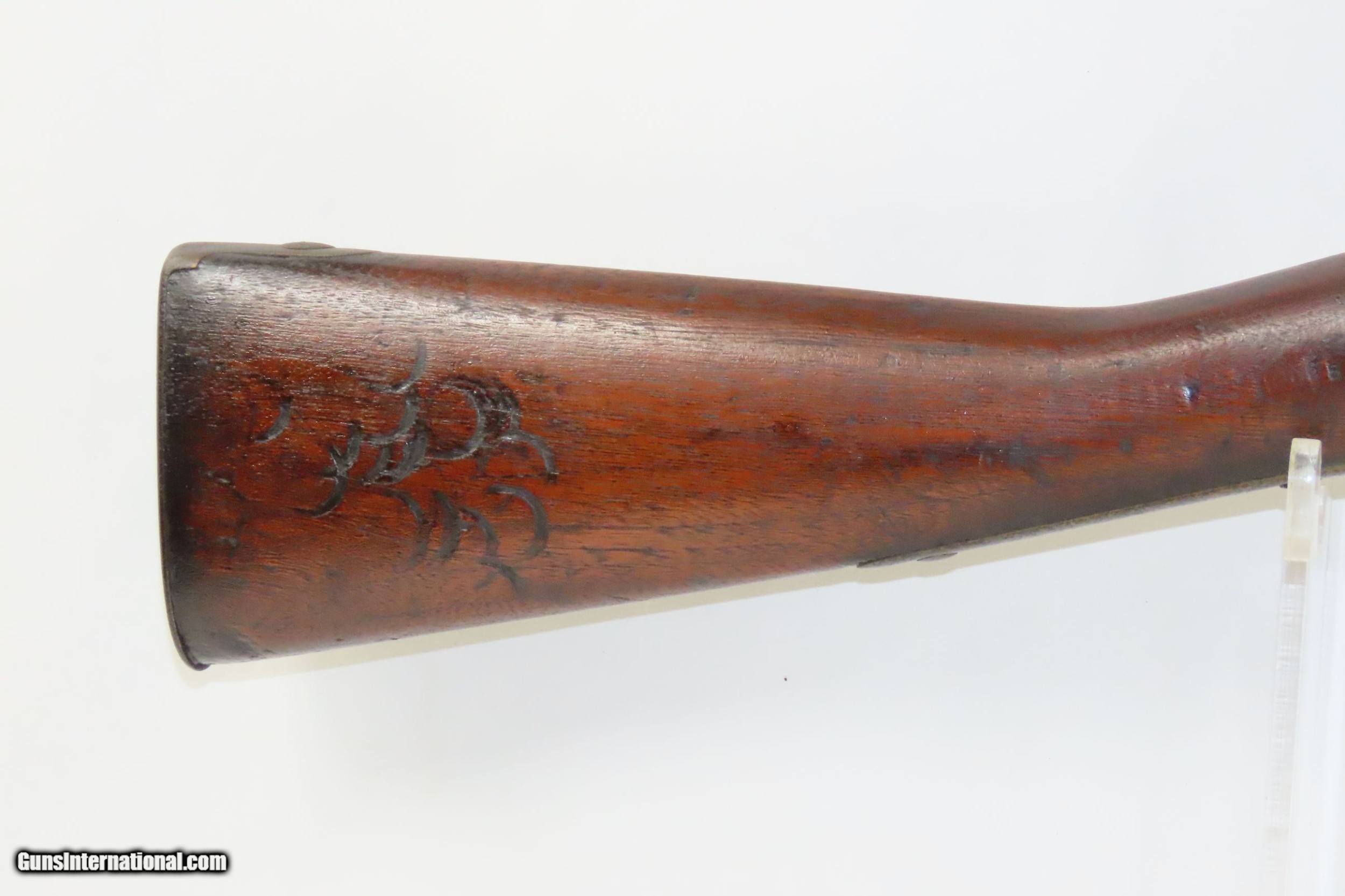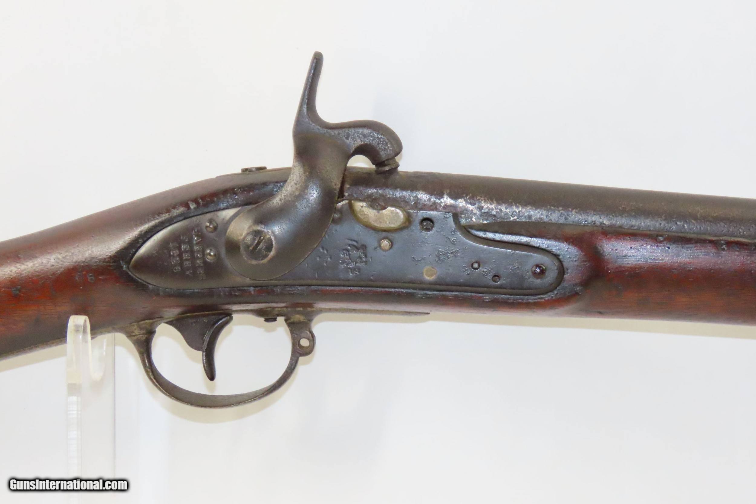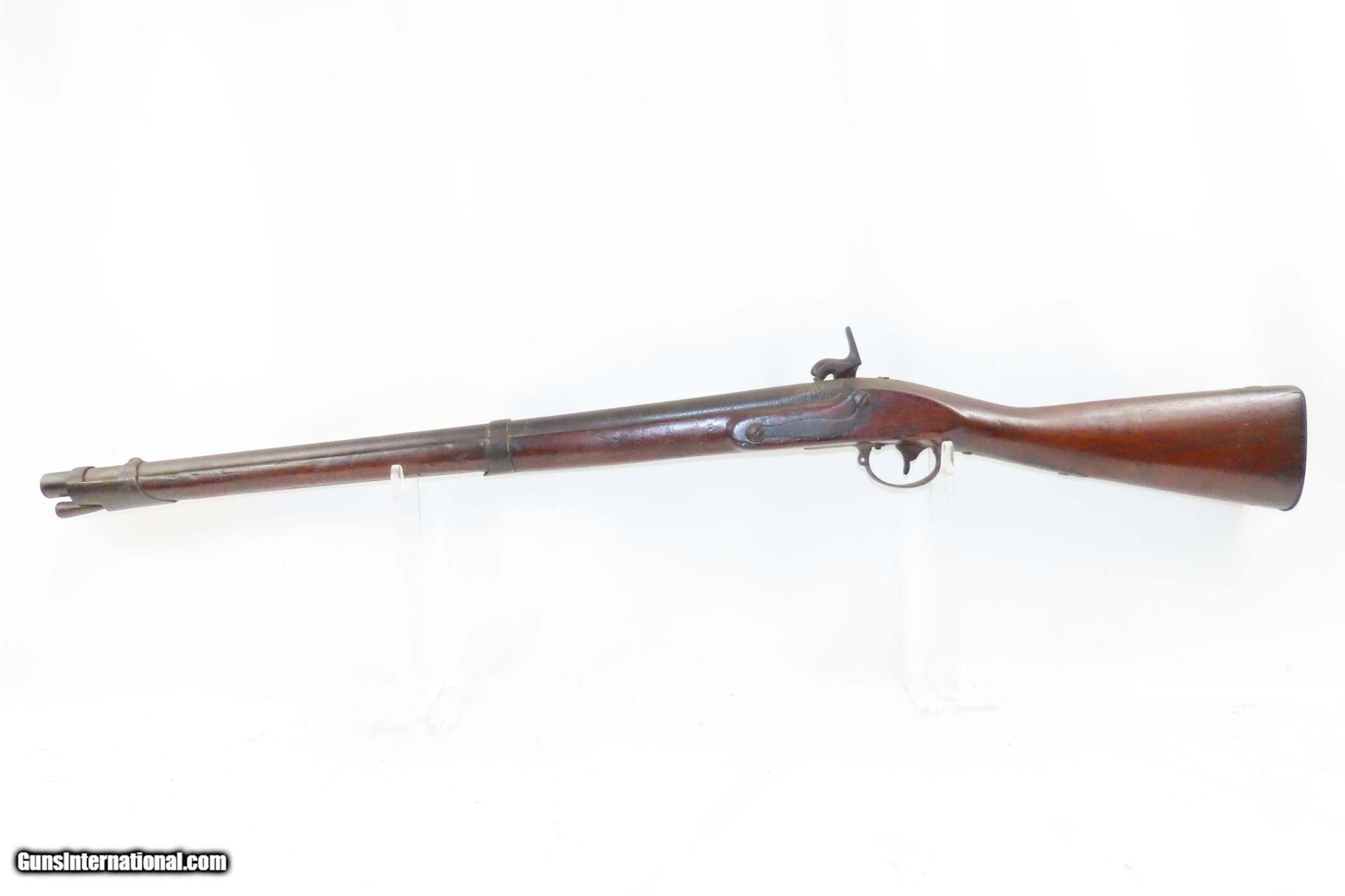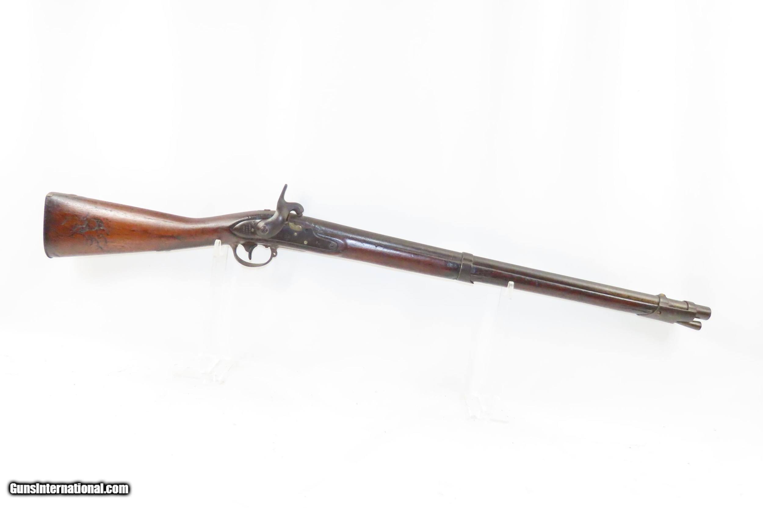 Description: 1828 Antique HARPERS FERRY Model 1816 “CONE” Percussion CONVERSION Musket CIVIL WAR Conversion of the Model 1816 Here we present an antique Harpers Ferry U.S. Model 1816 Percussion Conversion Musket, manufactured at the armory at Harpers Ferry, Virginia, circa 1828. This musket would have started out life as a smoothbore flintlock and likely converted around the start of the American Civil War. The War of 1812 revealed many weaknesses in American muskets. In an attempt to improve both the design and manufacture of the musket, the Model 1812 musket was created. The Model 1816 made further improvements and replaced the Model 1812. Harpers Ferry became America’s second national armory after the site was personally selected by George Washington, with the Springfield Armory being the first. The U.S. Congress authorized the building of the new foundry in 1794, and by the following year, was producing hundreds of arms for the national army, which was primarily flintlock muskets and pistols. Inspired largely by the French Charleville Model 1777 musket, Harpers Ferry began producing the Model 1816. The M1816 was a smoothbore, muzzle loading weapon which used a .69 caliber musket ball. A trained shooter could fire between two and three rounds at a range of up to 200 yards per minute. The Model 1816 was in production at Springfield (325,000) and Harpers Ferry (350,000) between 1816 to 1844 with around 675,000 muskets produced during this run. Additionally, more than a dozen contractors also made the Model 1816 Muskets during its production years, adding more than 146,000 muskets for a grand total of 821,421 M1816 Muskets produced. It saw service during the Mexican-American War and was even pressed into service during the Civil War in both the updated percussion and the old flintlock format. In the 1850’s, many 1816’s like this one went through the conversion from flintlock to percussion. This musket was converted to percussion using the Belgian Style Alteration method, more commonly known as the “Cone Type” conversion. All external lock parts were removed with the screw hole plugged, the pan ground flush with lock plate (leaving the remnants intact) and the small existing cavity in the pan filled with brass to give it a level or squared off profile along the top. The vent hole of the barrel was plugged with a nipple screwed into the threaded receptacle at the top of the barrel, set off center towards the lock side. Then, adding the distinctive arsenal, military hammer. This is the type of conversion that was only done at Harper's Ferry and Springfield and is sometimes referred to as an "armory conversion." The overall condition is good. This piece was shortened long ago to make it handier, perhaps from horseback. The action is strong. The bore is dark and dusty with age. The stock shows much use and remains solid. Own the original! This is a legitimate antique and not a reproduction. Barrel is 28 inches. Caliber: .69 Percussion Overall condition as seen in photos. Very Fast. Very Safe. FREE SHIPPING WORLDWIDE. Delivered directly to your door by express mail! Guaranteed AUTHENTIC & Includes CERTIFICATE OF AUTHENTICITY. ancestryguns $1200 #226054 SOLD Antique: Yes |