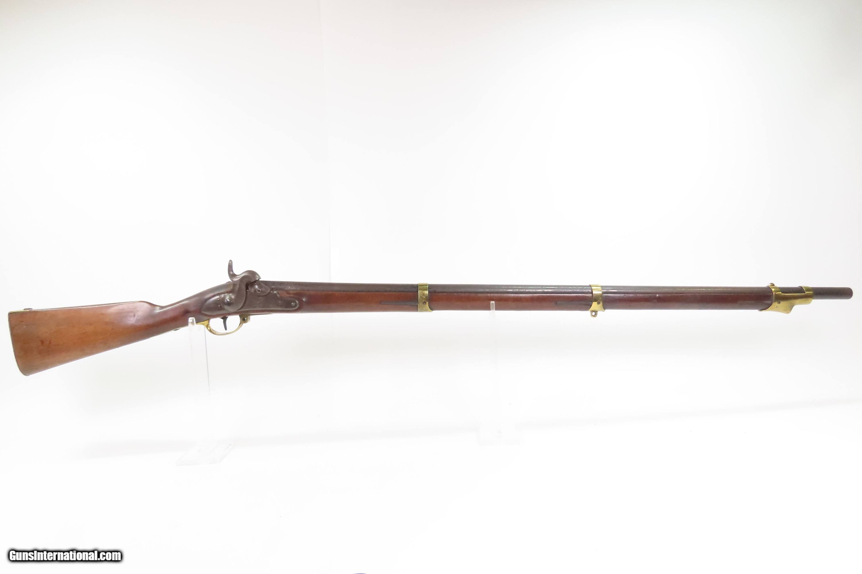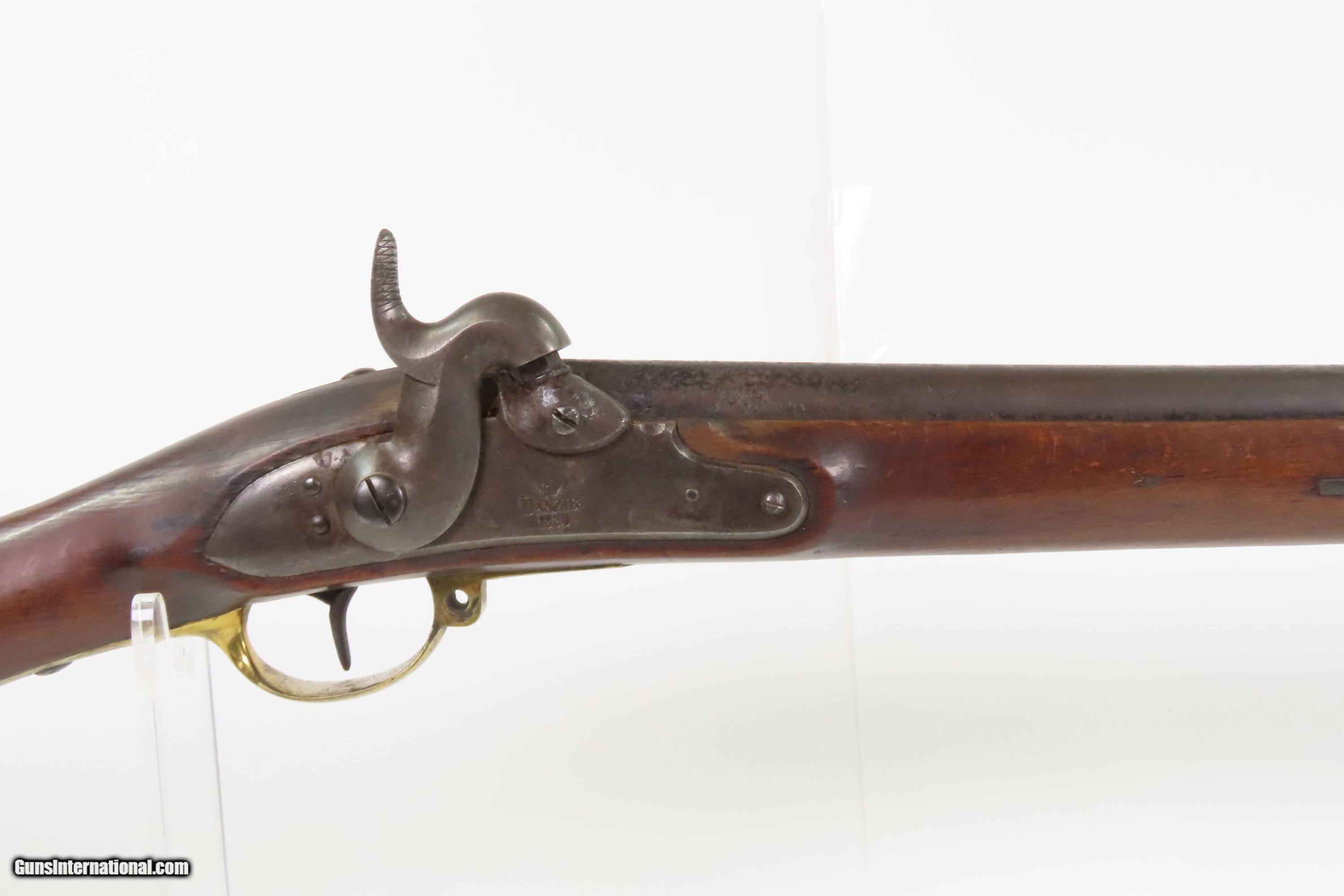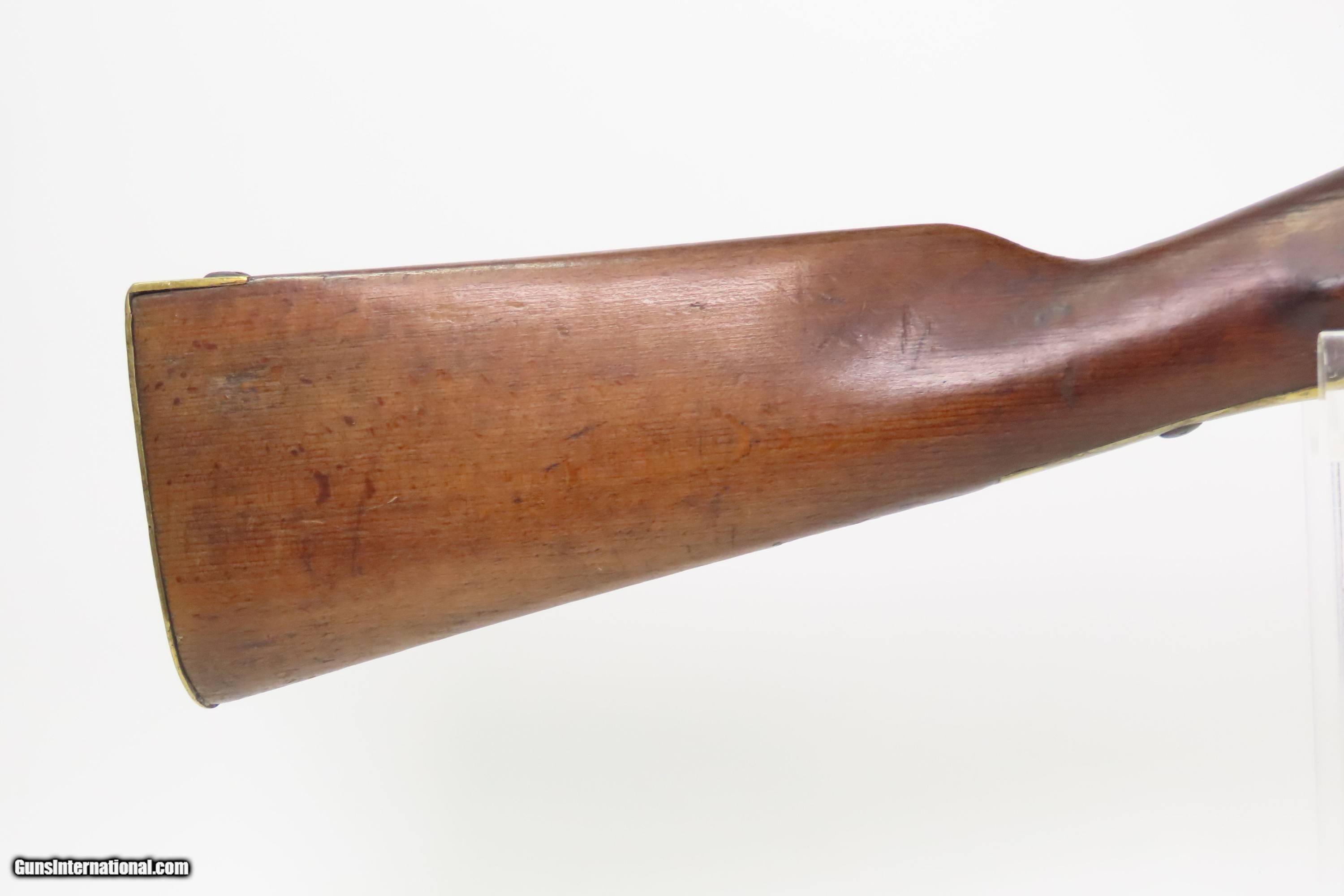 Description: 1830 Dated CIVIL WAR Era Prussian DANZIG ARSENAL M1809 Percussion Musket Used by both UNION and CONFEDERATE in the War Here we present an antique Prussian Danzig Arsenal Model 1809 Percussion Musket, manufactured by the Danzig Arsenal in 1830. Danzig is presently a city in Poland but was an important region in Prussia at the time this musket was made. The Model 1809 was originally made in the flintlock format, with later production shifting to the more modern and reliable percussion firing system. This musket would have been used in Prussian conflicts during the 1840s and 50s, including the Egyptian-Ottoman War, the Greater Poland Uprising, the Revolutions of 1848, and the First Schleswig War, before being sold to the United States government in the first years of the American Civil War. Though thoroughly obsolete, both the Union and the Confederacy were desperate for small arms as the South had little capability to make their own and the North had to scramble to ramp up their own production. The overall condition is good. Remnants of original blue finish on the barrel. The original stock is very good showing little use. “C.T.” appears to be marked on the wrist. A small “Q” is stamped on the left barrel flat. Missing ramrod. Legible markings throughout. The action is robust. The bore is dark and smooth. Bright brass furniture. Front and rear sling swivels are absent. Own the original! This is a legitimate antique and not a reproduction. Barrel is 41 inches. Caliber: .74 Percussion Overall condition as seen in photos. Very Fast. Very Safe. FREE SHIPPING WORLDWIDE. Delivered directly to your door by express mail! Guaranteed AUTHENTIC & Includes CERTIFICATE OF AUTHENTICITY. ancestryguns $1600 #256105 Antique: Yes Price: $1,600.00 Buy Now Pay with