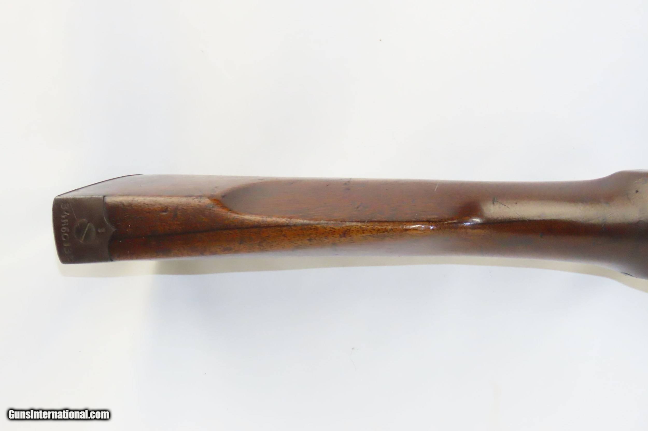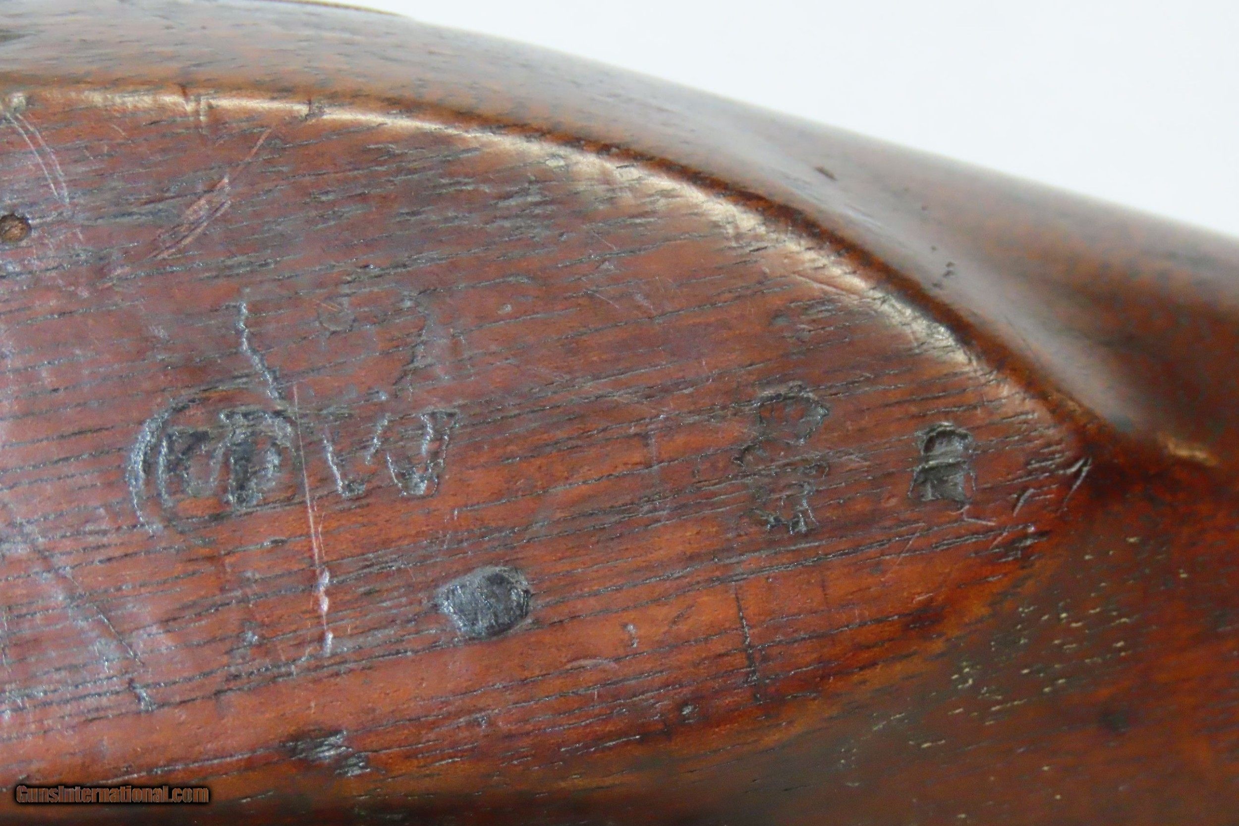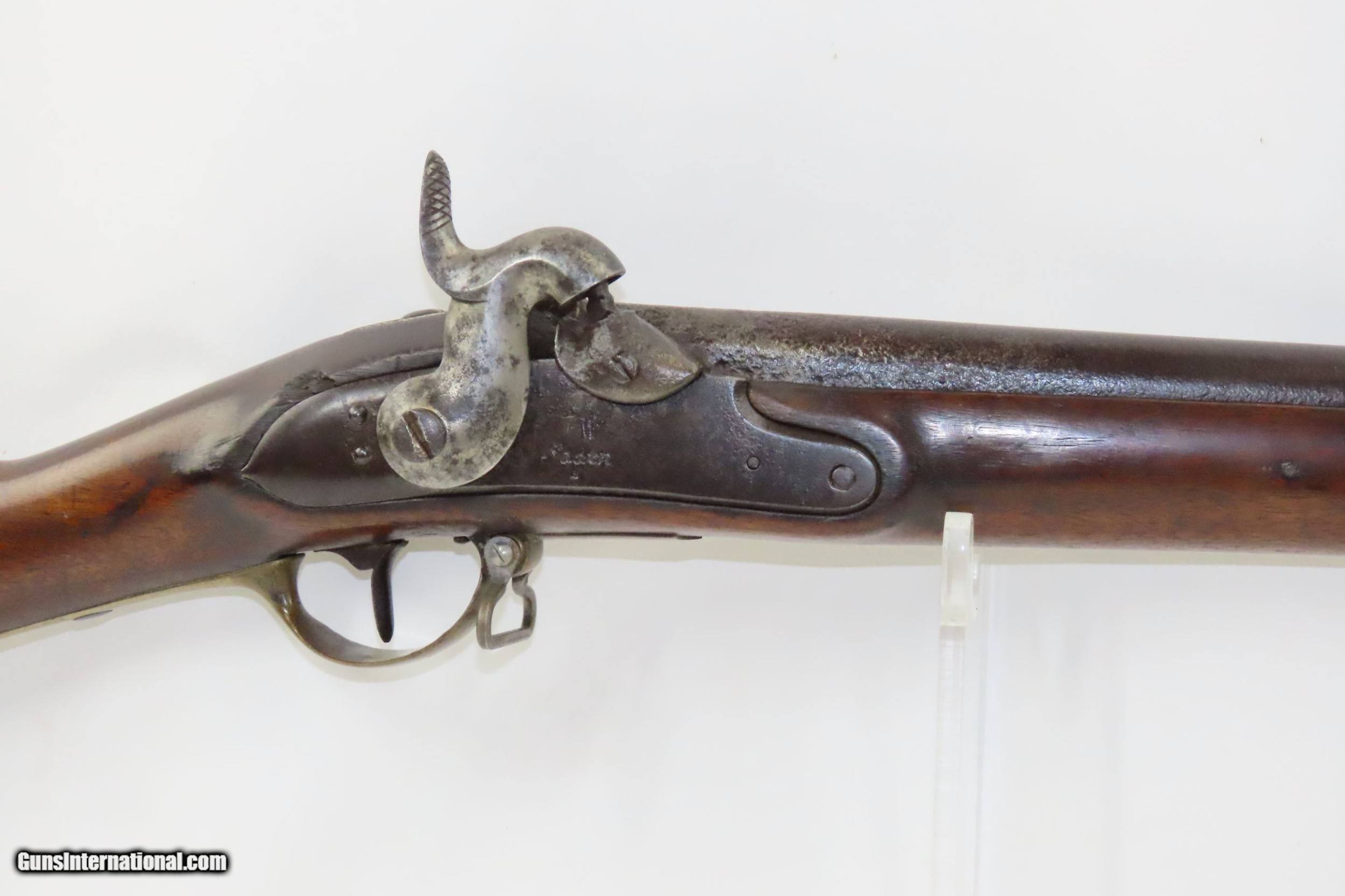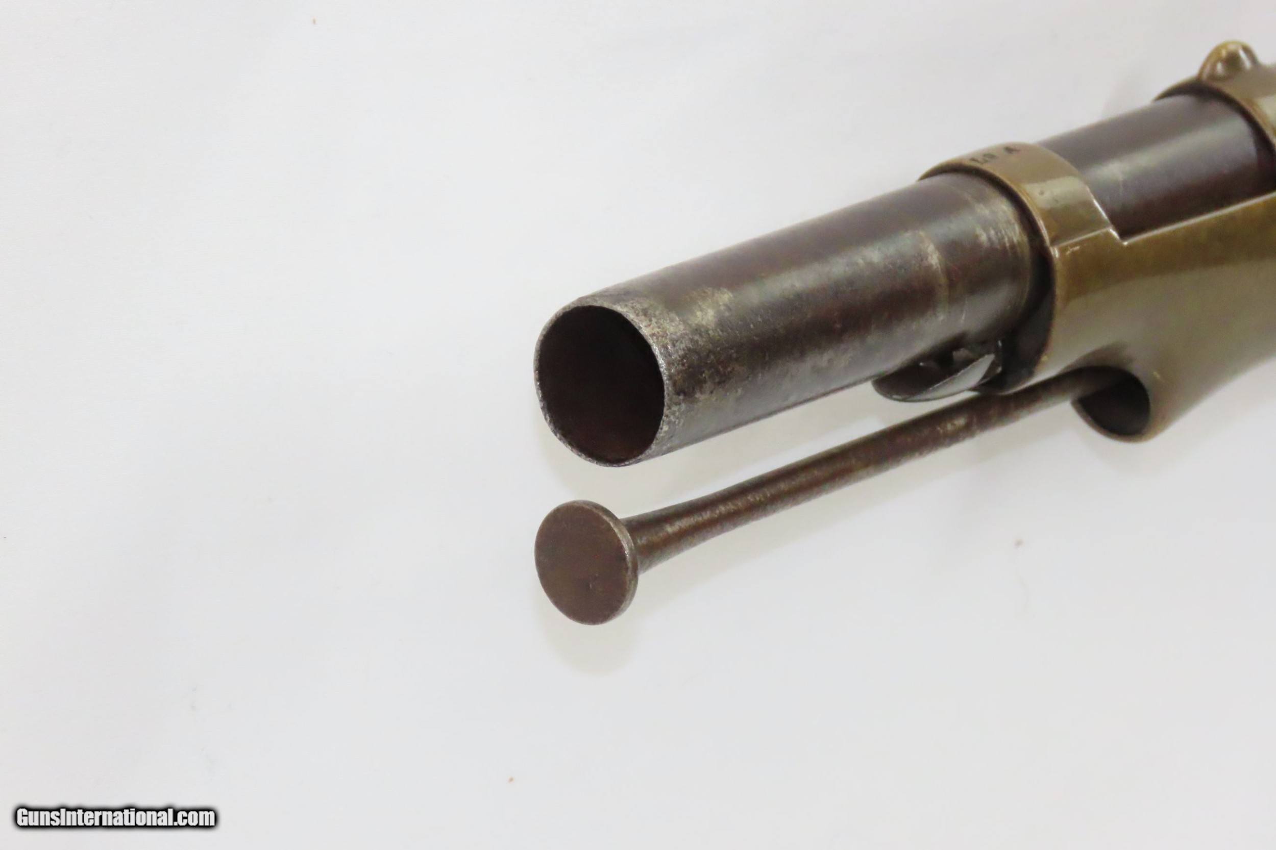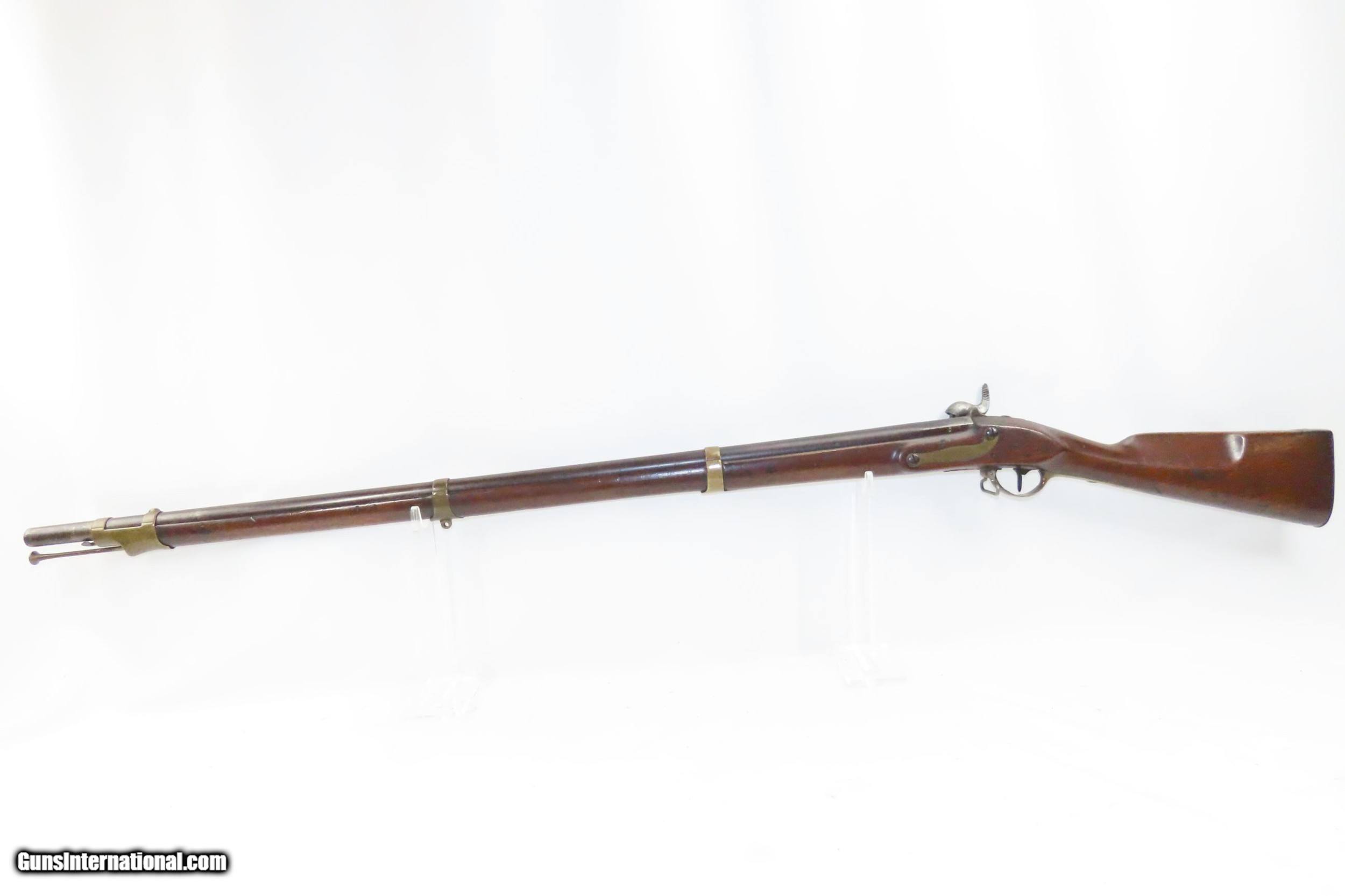 Description: 1830s PRUSSIAN Antique SAARN ARSENAL M1809/31 Percussion Musket .72 Caliber Made at the Armory at Saarn Here we present an antique Prussian Saarn Arsenal Model 1809/31 Percussion Conversion Musket, manufactured circa 1830 at the Prussian armory at Saarn. This musket was the standard infantry weapon of the Royal Prussian Army from the 18th century until the military reforms of the 1840s. Four models were produced at Potsdam, Saarn, and Neyse, including the Model 1723, the Model 1740, the Model 1809, as is this one, and the Model 1831. This Model 1809 was originally made in the flintlock format, with production after 1831 changing the name to the Model 1809/31 and shifting to the more modern and reliable percussion firing system. It was likely converted over to percussion shortly after it was produced in 1830. This musket would have been used in Prussian conflicts during the 1840s and 50s, including the Egyptian-Ottoman War, the Greater Poland Uprising, the Revolutions of 1848, and the First Schleswig War, before being sold to the United States government in the first years of the American Civil War. Though thoroughly obsolete, both the Union and the Confederacy were desperate for small arms as the South had little capability to make their own and the North had to scramble to ramp up their own production. This example is marked “FW” above “Saarn”. The “FW” are the initials that stand for Prussian King Fredrich Wilhelm III, who reigned from 1797 to 1840. The overall condition is good+. Patina throughout. The right side of the breech has some flash pitting to the metal and the wood. The nipple is fused. The action is excellent. The bore is smooth with a patina. The stock remains solid despite much use. Own the original! This is a legitimate antique and not a reproduction. Barrel is 41 inches. Caliber: .72 percussion Overall condition as seen in photos. Very Fast. Very Safe. FREE SHIPPING WORLDWIDE. Delivered directly to your door by express mail! Guaranteed AUTHENTIC & Includes CERTIFICATE OF AUTHENTICITY. ancestryguns $1485 #215272 SOLD Antique: Yes |