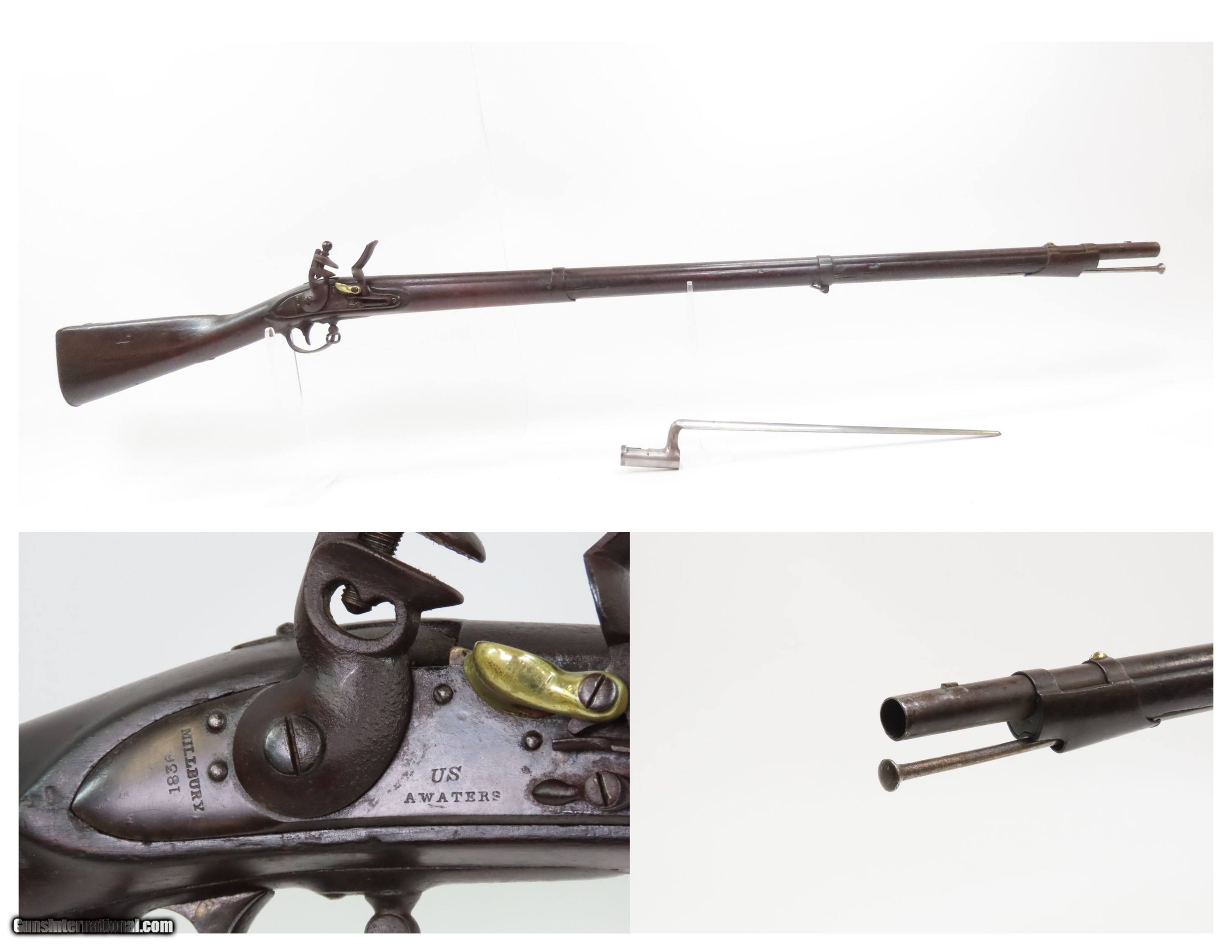 Antique ASA WATERS Massachusetts M1816 STATE MILITIA .69 Flintlock MUSKET