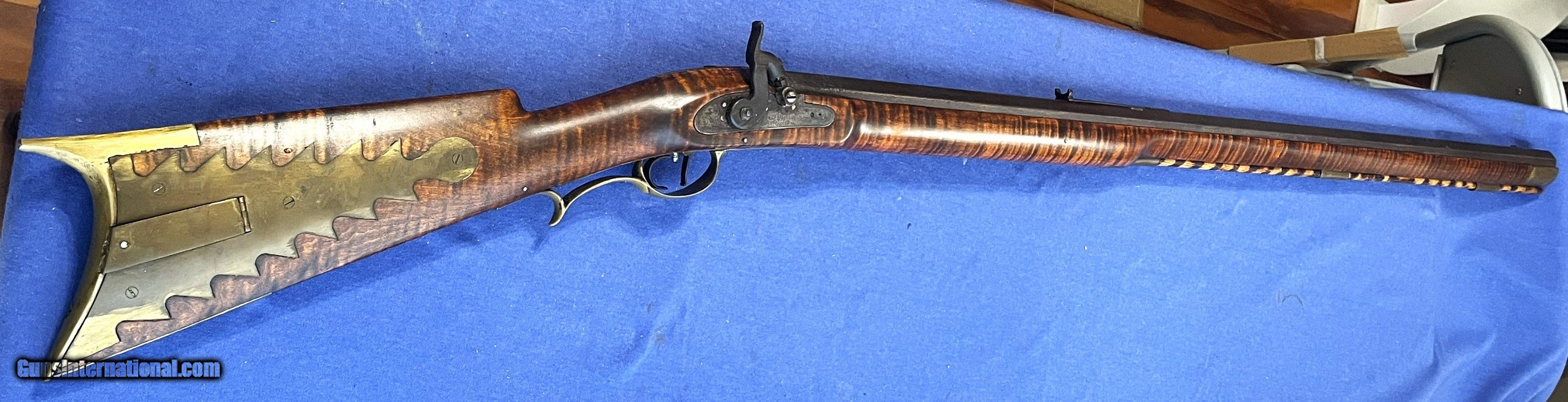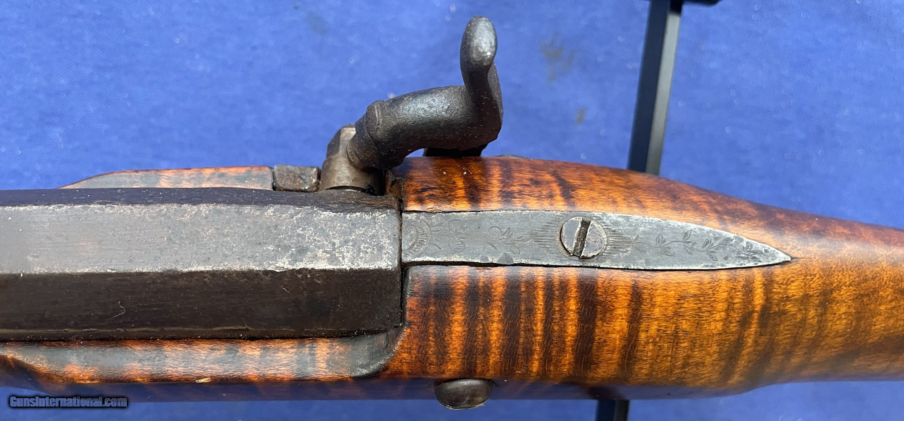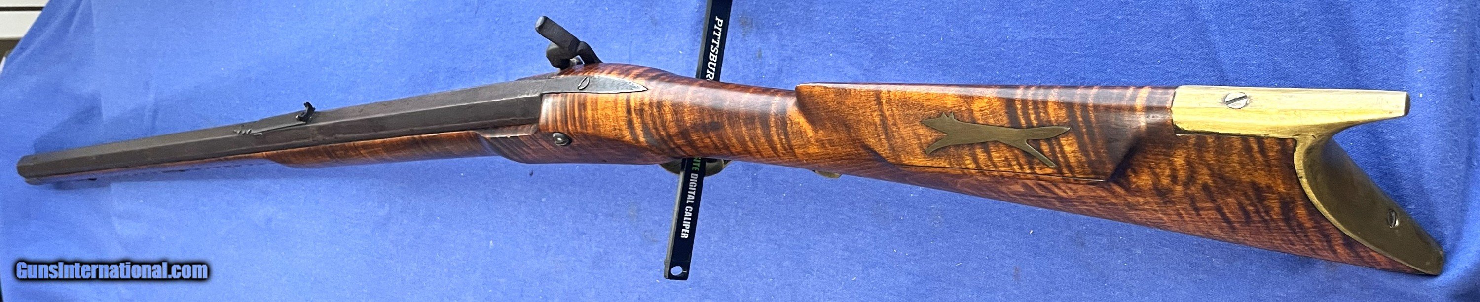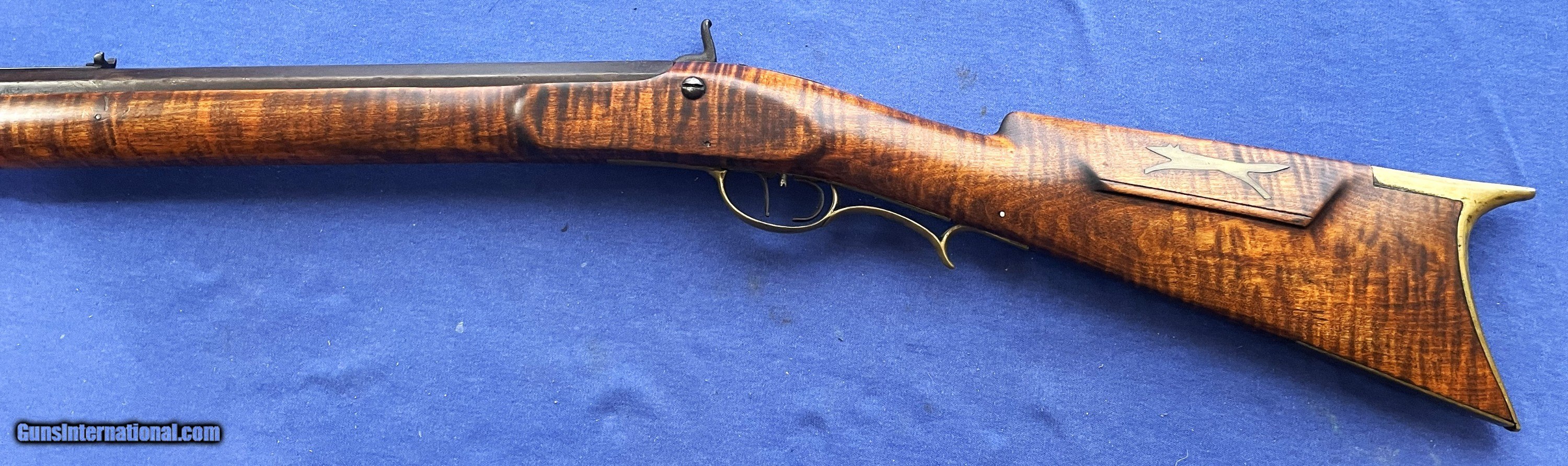 Antique J. MAGILL PERCUSSION FLINTLOCK KENTUCKY RIFLE FULL TIGER STRIPE STOCK