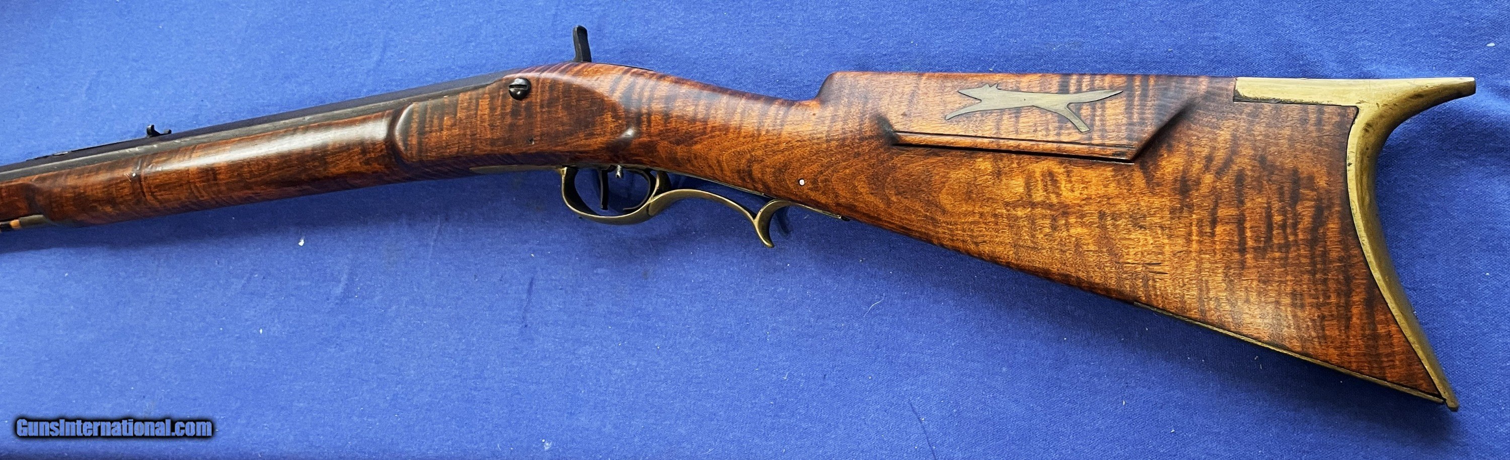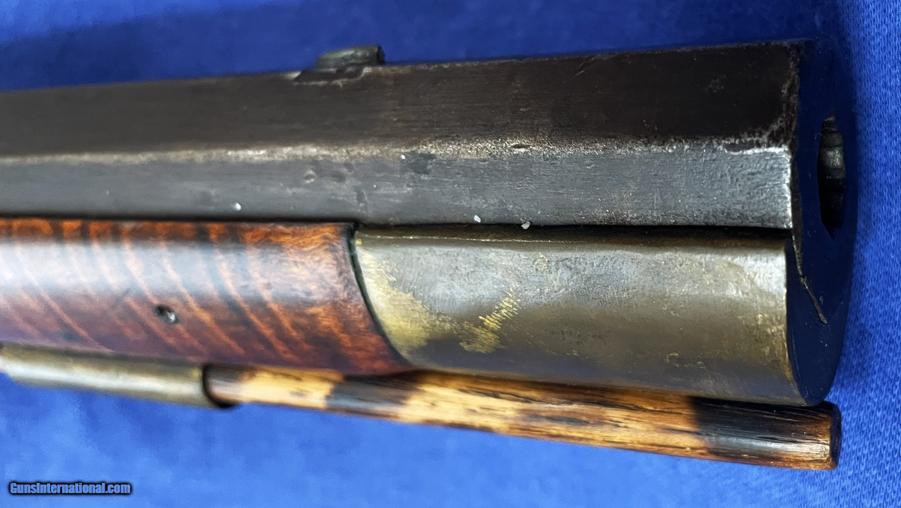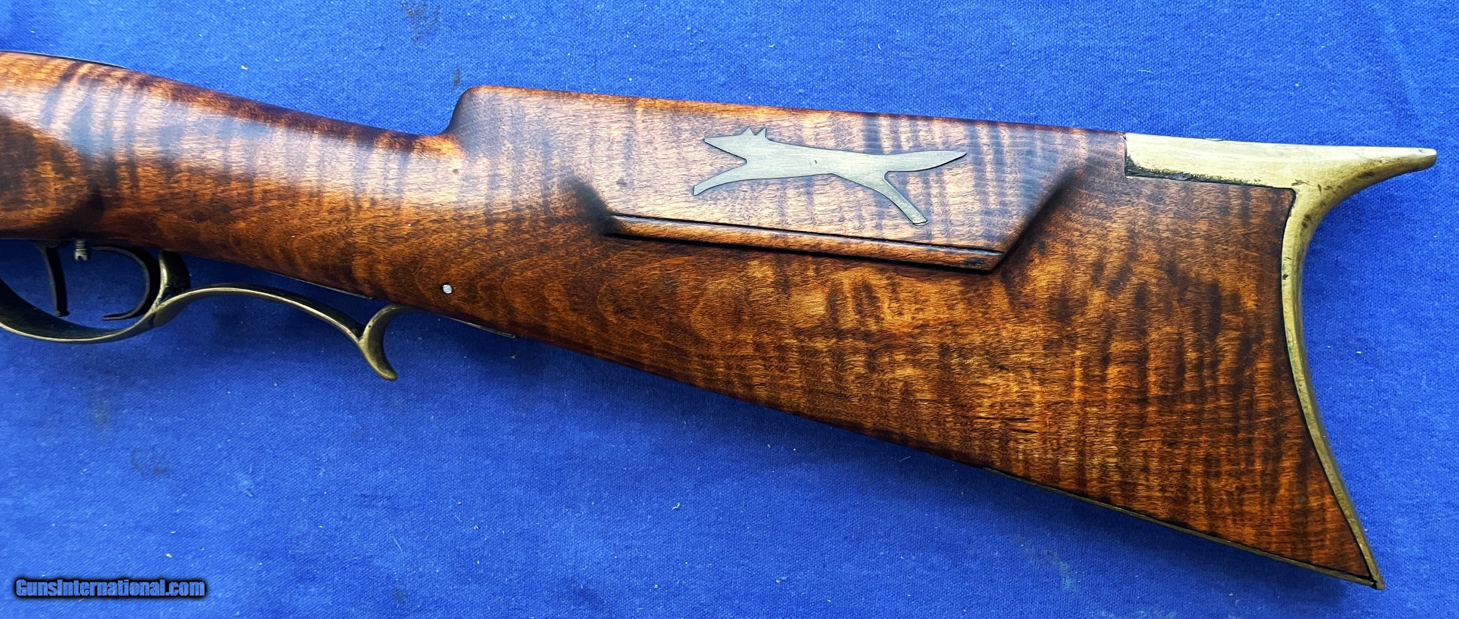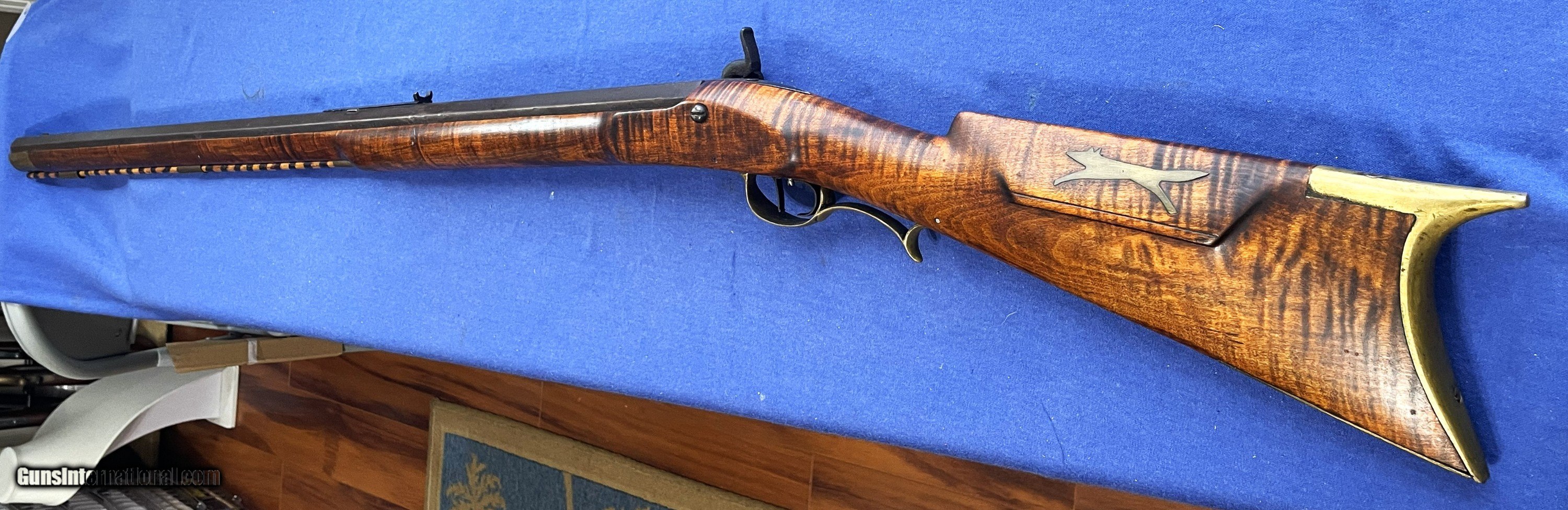 Antique J. MAGILL PERCUSSION FLINTLOCK KENTUCKY RIFLE FULL TIGER STRIPE STOCK