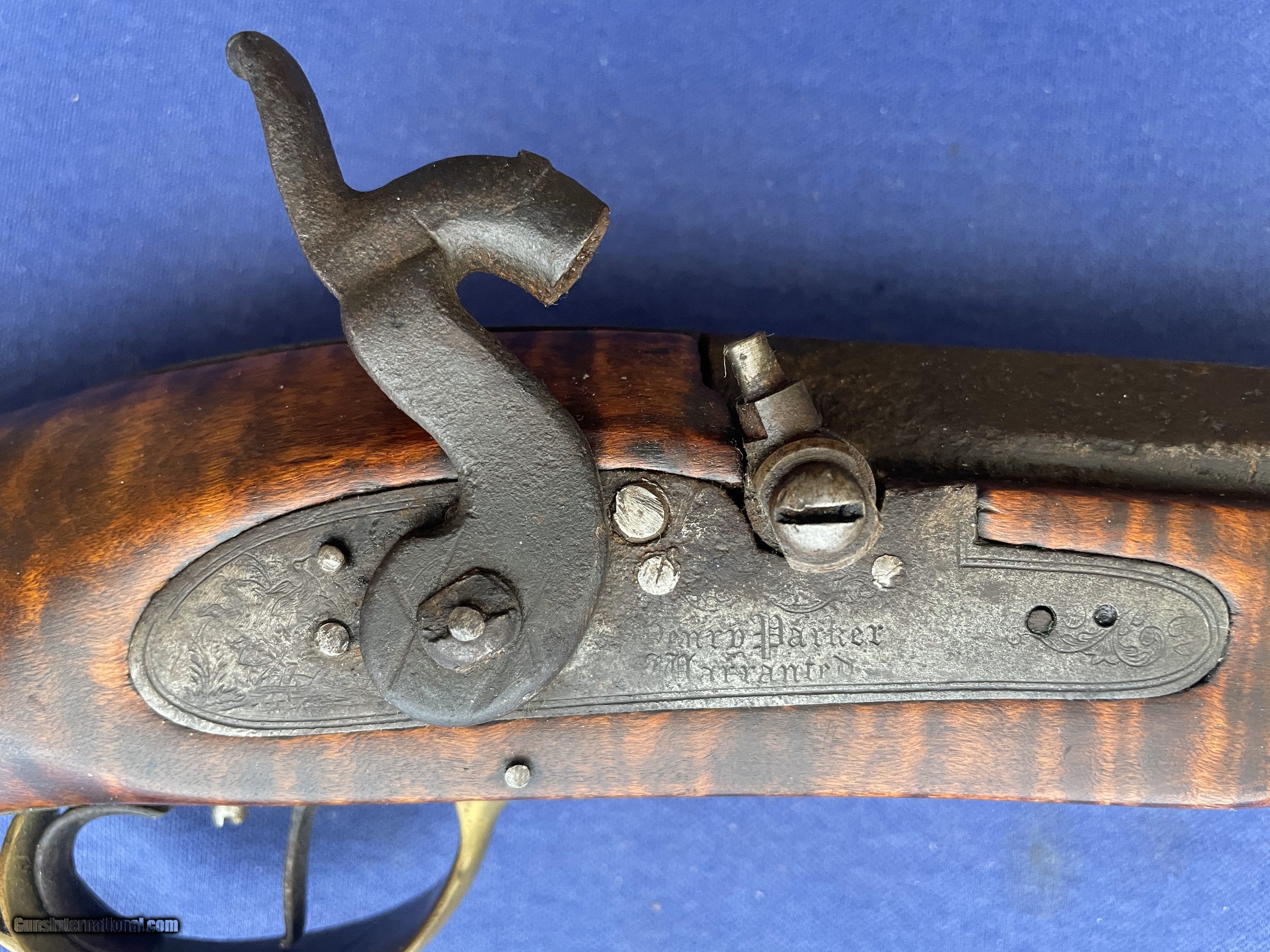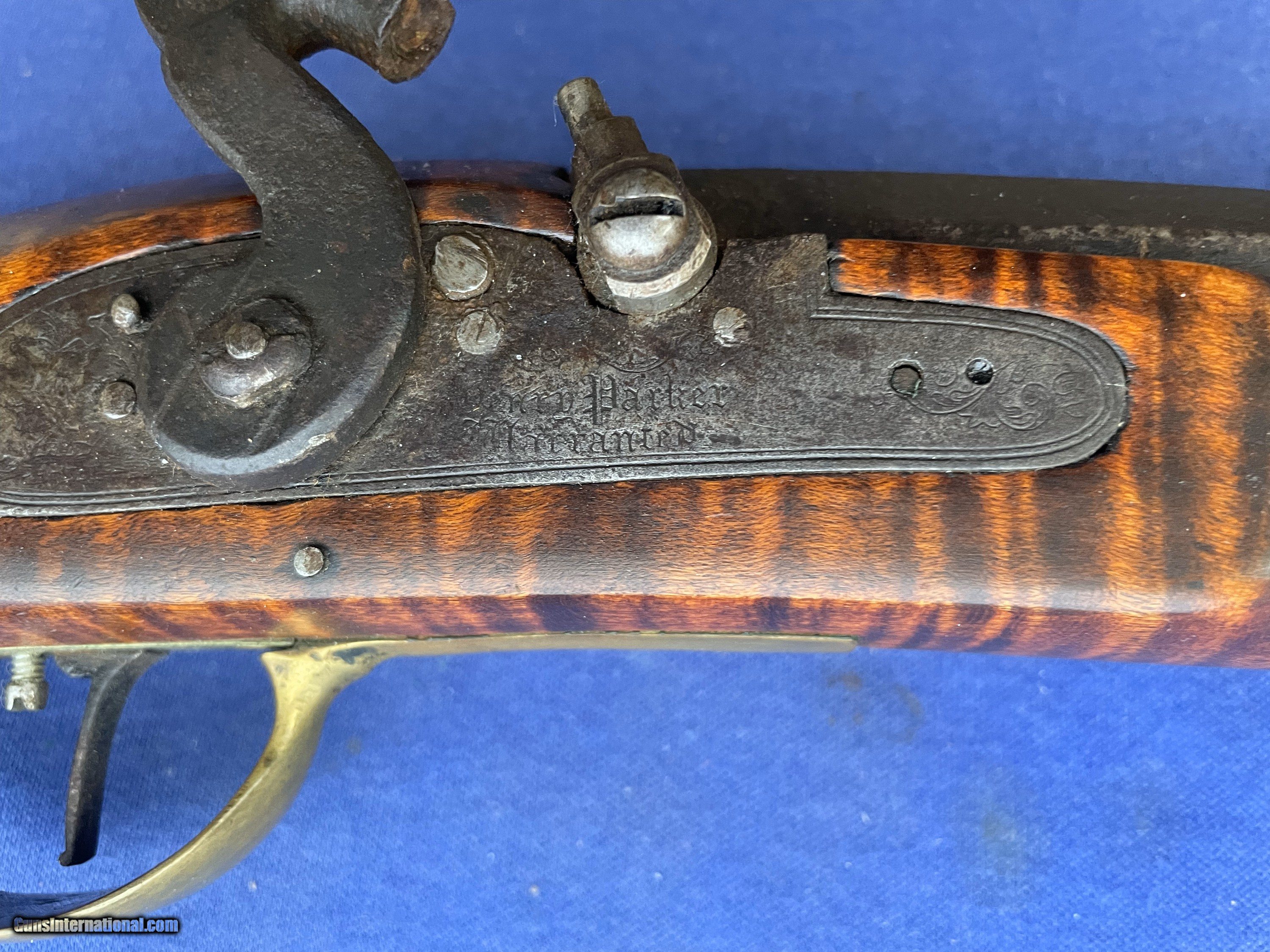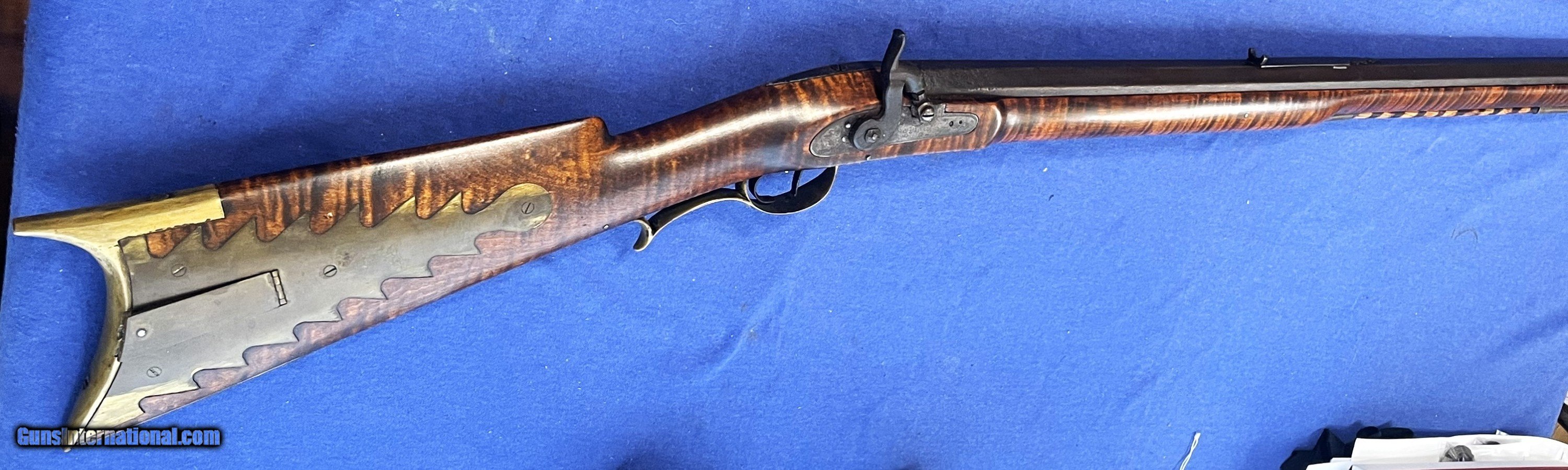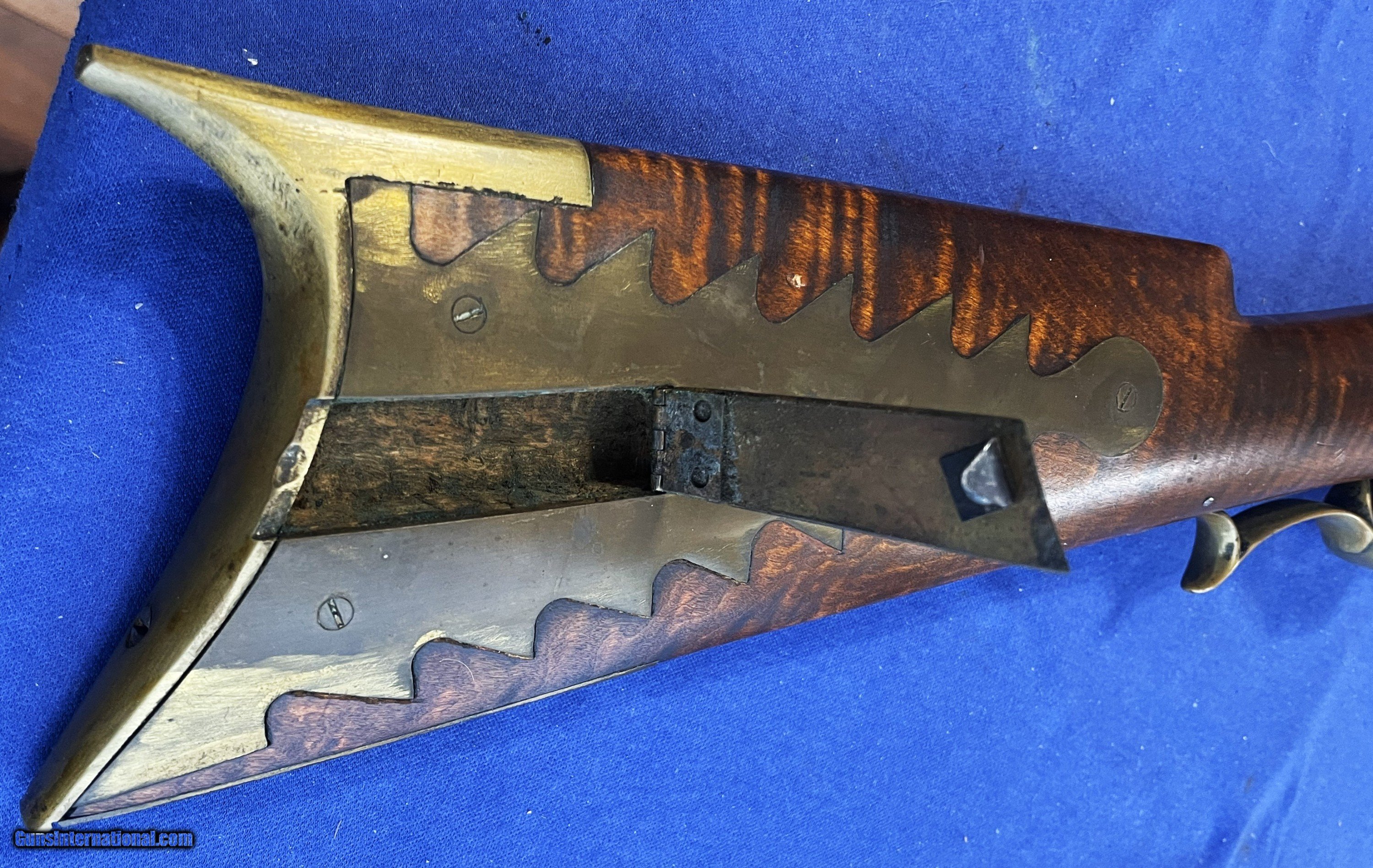 Antique J. MAGILL PERCUSSION FLINTLOCK KENTUCKY RIFLE FULL TIGER STRIPE STOCK