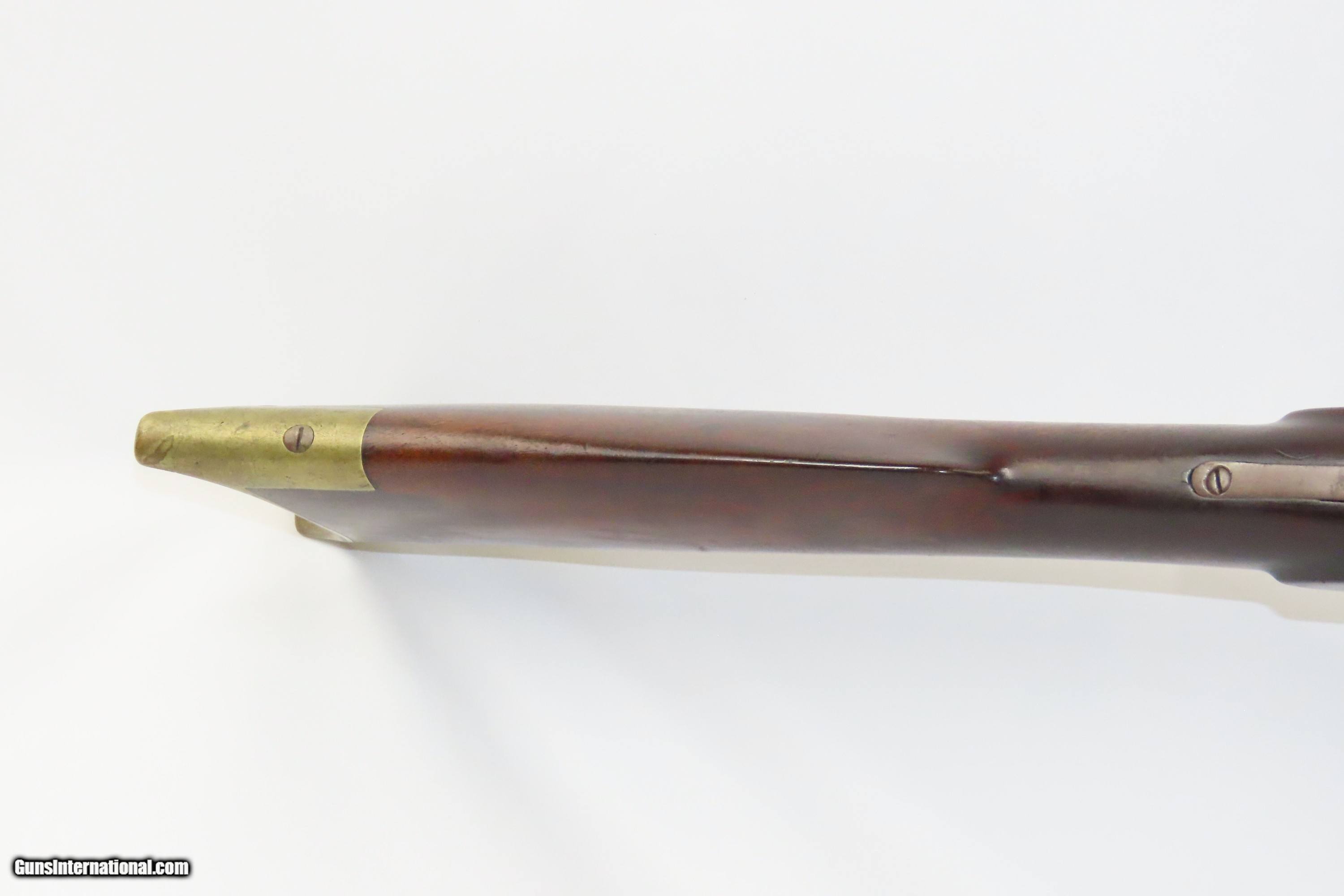 Description: Antique MID-19th CENTURY Half-Stock .32 Cal. Percussion American LONG RIFLE Kentucky Style Long Rifle w/JOSH GOLCHER Lock Here we present an antique Half Stock Percussion Long Rifle with a Josh Golcher Lock, made circa the mid-19th Century. Its stout octagonal barrel is in .32 caliber, large enough to take small to medium sized game or to defend the homestead against unwanted aggression. Rifle manufacture in the mid-to-late 19th Century was rapidly changing over from thousands of craftsmen all over the United States and on the Frontier making and selling their wares, to the large factories with standardized assembly lines and modern manufacturing techniques. Many makers’ names of the so-called Kentucky long rifles have been lost over time. This rifle is one such example. The American Long Rifle, more commonly, but less correctly, known as the ‘Kentucky rifle’, was described by Captain John G. W. Dillin in the dedication to his seminal 1924 book, The Kentucky Rifle: “From a flat bar of soft iron, hand forged into a gun barrel; laboriously bored and rifled with crude tools; fitted with a stock hewn from a maple tree in the neighboring forest; and supplied with a lock hammered to shape on the anvil; an unknown smith, in a shop long since silent, fashioned a rifle which changed the whole course of world history; made possible the settlement of a continent; and ultimately freed our country of foreign domination. Light in weight; graceful in line; economical in consumption of powder and lead; fatally precise; distinctly American; it sprang into immediate popularity; and for a hundred years was a model often slightly varied but never radically changed.” The overall condition is good. Original brown patina. Solid stock. A chip has been repaired just in front of the trigger guard and remains stable. Legible markings. “T.P.” is signed on the rear sight. The action functions, although the hammer drops intermittently with a trigger pull. Own the original! This is a legitimate antique and not a reproduction. Barrel is 28 inches. Caliber: .32 Percussion Overall condition as seen in photos. Very Fast. Very Safe. FREE SHIPPING WORLDWIDE. Delivered directly to your door by express mail! Guaranteed AUTHENTIC & Includes CERTIFICATE OF AUTHENTICITY. ancestryguns $1800 #230289 SOLD Antique: Yes |