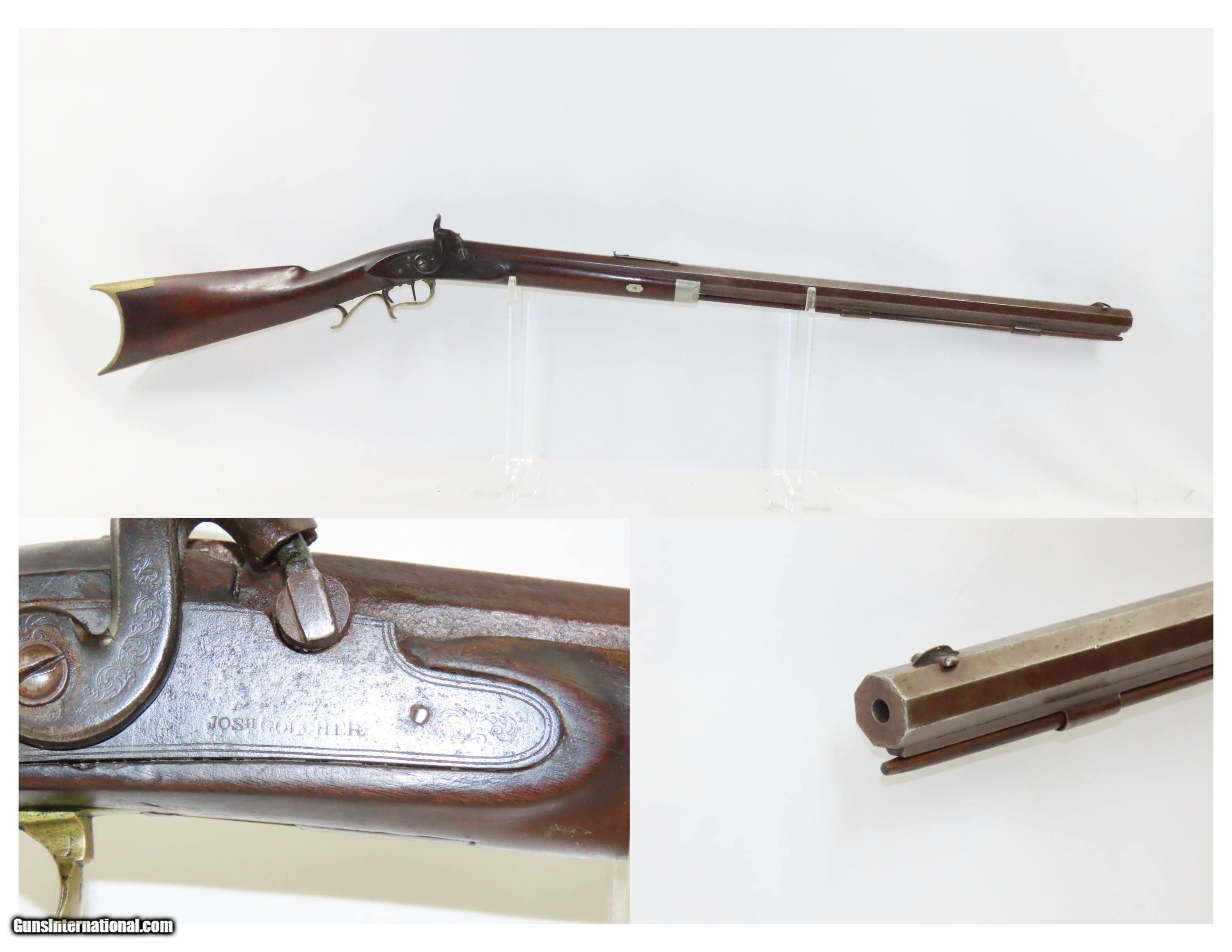 Antique MID-19th CENTURY Half-Stock .32 Cal. Percussion American LONG RIFLE Kentucky Style Long Rifle w/JOSH GOLCHER Lock