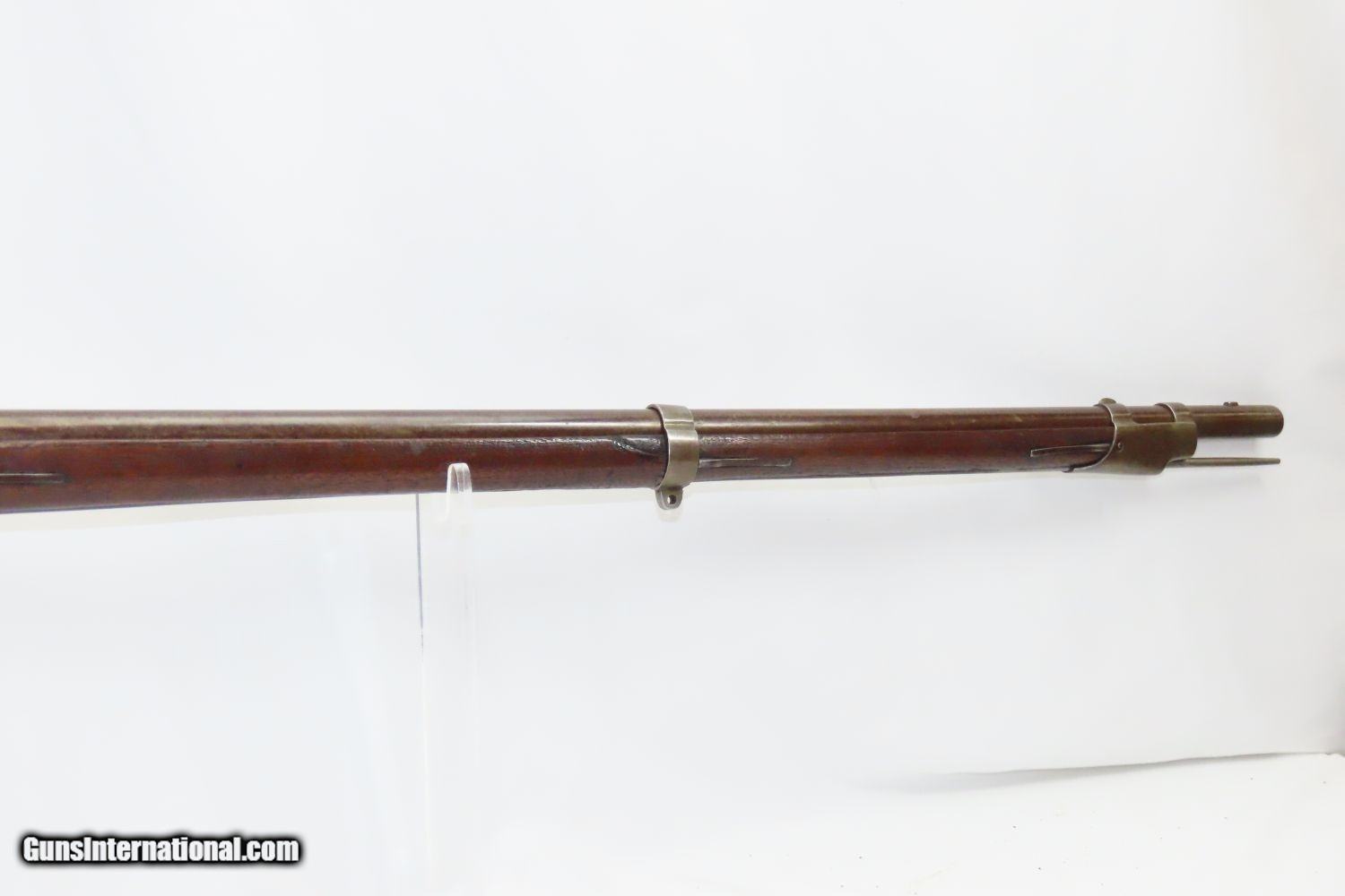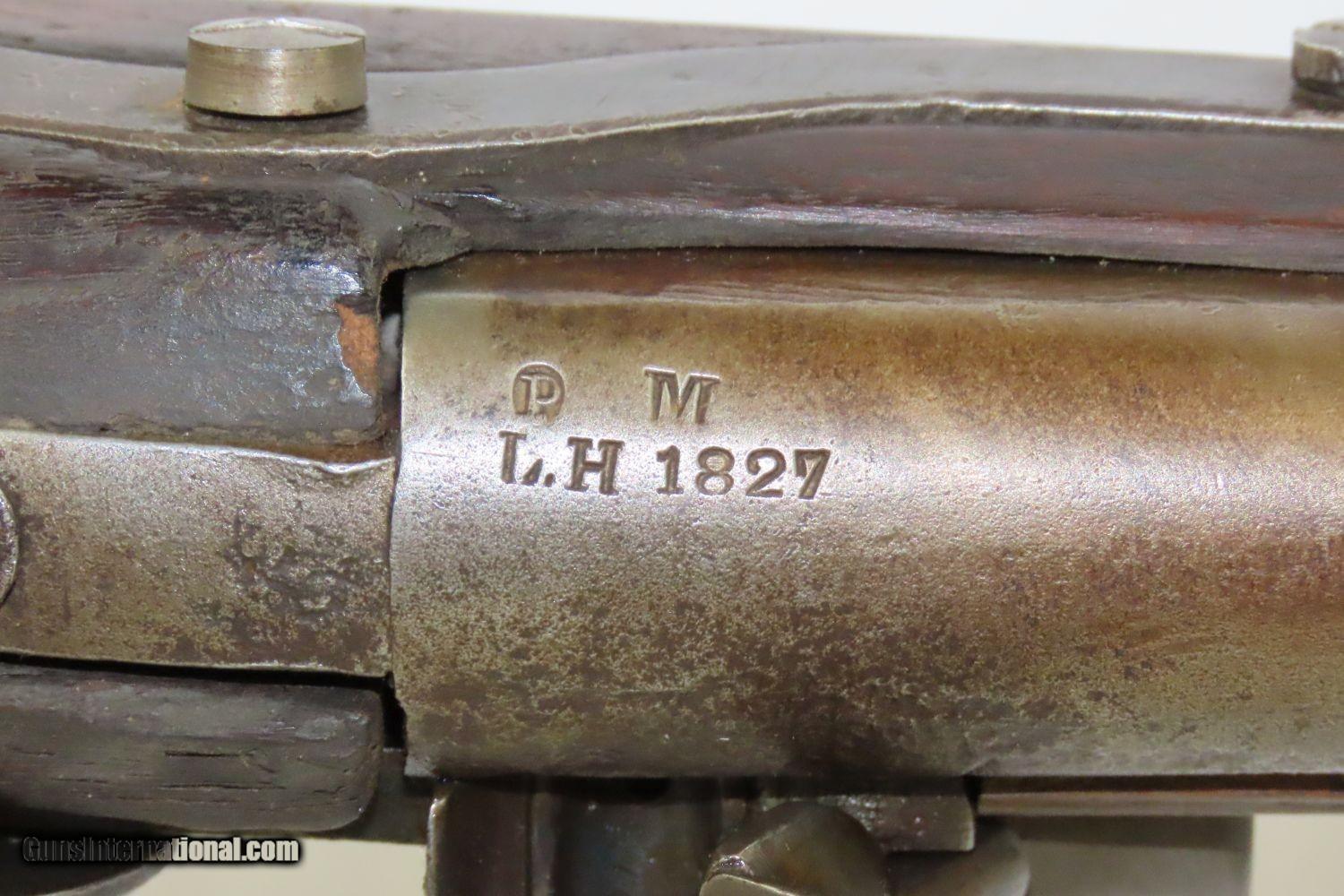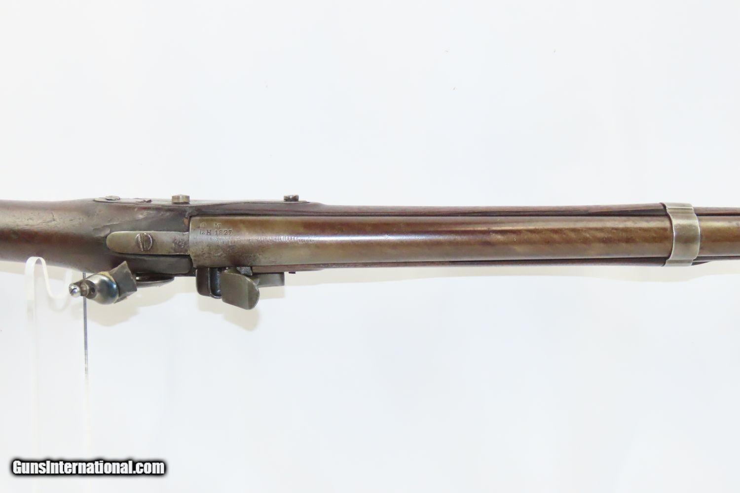 Description: Antique STATE MILITIA US Model 1816 Flintlock Musket with Asa Waters Lock EARLY AMERICAN Militia Musket Here we present an antique Model 1816 Musket, made circa the 1820s. This period of United States history saw quite a small national standing army and hosts of statewide militias. These were meant for repelling foreign invasion, creating a barrier between states and the federal government, defending towns from attack and uprisings from Native Americans, slaves, and bandits, among other policing duties. Militias were sometimes longstanding, prestigious and influential organizations. At other times they were ad hoc and reactive to the given circumstances. There was a great distrust of a federally controlled militia system or a large standing army in the early days of the Republic. This piece was converted to percussion before or around the time of the American Civil War and then reconverted, using this lock by Asa Waters of Millbury, Massachusetts. The action does not function. (The trigger does not release the hammer when pulled). Good bore. “1827” dated barrel. The stock is solid with a few period repairs around the reconverted lock. “A. WATERS” is engraved on the lock. Own the original! This is a legitimate antique and not a reproduction. Barrel is 42-1/8 inches in length. Caliber: .69 Flintlock Overall condition as seen in photos. Very Fast. Very Safe. FREE SHIPPING WORLDWIDE. Delivered directly to your door by express mail! Guaranteed AUTHENTIC & Includes CERTIFICATE OF AUTHENTICITY. ancestryguns $1565 #210390 SOLD Antique: Yes |