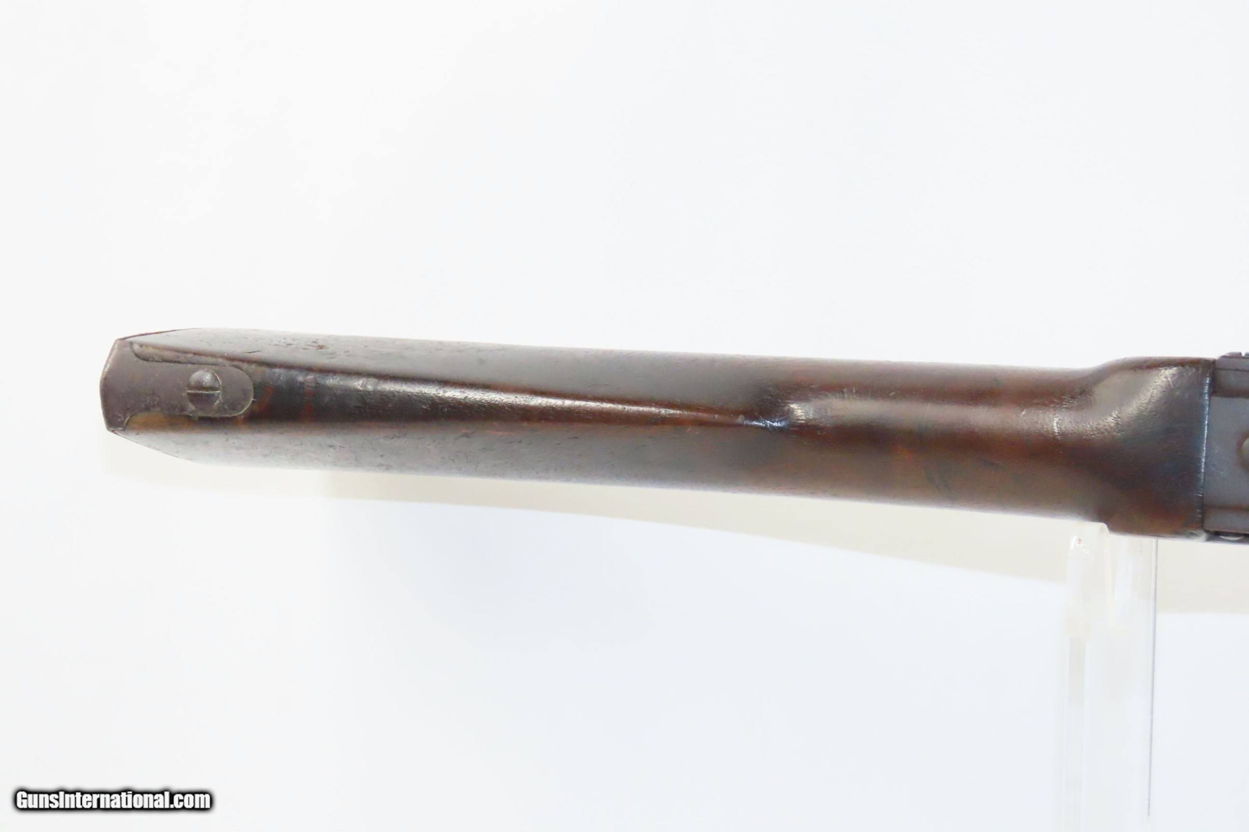 Description: Antique U.S. SIMEON NORTH M1843 HALL Breech Loading Percussion SR CARBINE 1 of 10,500 Contracted with SCARCE .52 RIFLED BORE Here we present an antique U.S. Model 1843 Side Lever Breech Loading Saddle Ring Carbine from the Simeon North Contract, made circa 1850 in Middletown, Connecticut. A native of Berlin, Connecticut, Simeon North was a successful manufacturer of scythes before he turned to gun making, eventually becoming one of the major suppliers of firearms to the United States military before the Civil War. 10,500 of these side lever Hall carbines were produced by Simeon North in 1844-1853. More than half are believed to have been rifled for use in the Civil War. The Model 1843 Hall/North Carbine was the last of the Hall carbines and rifles issued by the U.S. Army. Model 1843 Hall carbines were carried by U.S. Dragoons during the Mexican War and continued in service through most of the Civil War, being issued to many cavalry units in Illinois, Missouri and Kansas. The overall condition is good+. Original, even patina. The action is excellent. The bore is good for its age and well-rifled. The stock shows period use and remains solid. Faint inspector cartouches are visible. Own the original! This is a legitimate antique and not a reproduction. Barrel is 21 inches. Caliber: .52 Percussion Overall condition as seen in photos. Very Fast. Very Safe. FREE SHIPPING WORLDWIDE. Delivered directly to your door by express mail! Guaranteed AUTHENTIC & Includes CERTIFICATE OF AUTHENTICITY. ancestryguns $2785 #217762 SOLD Antique: Yes |