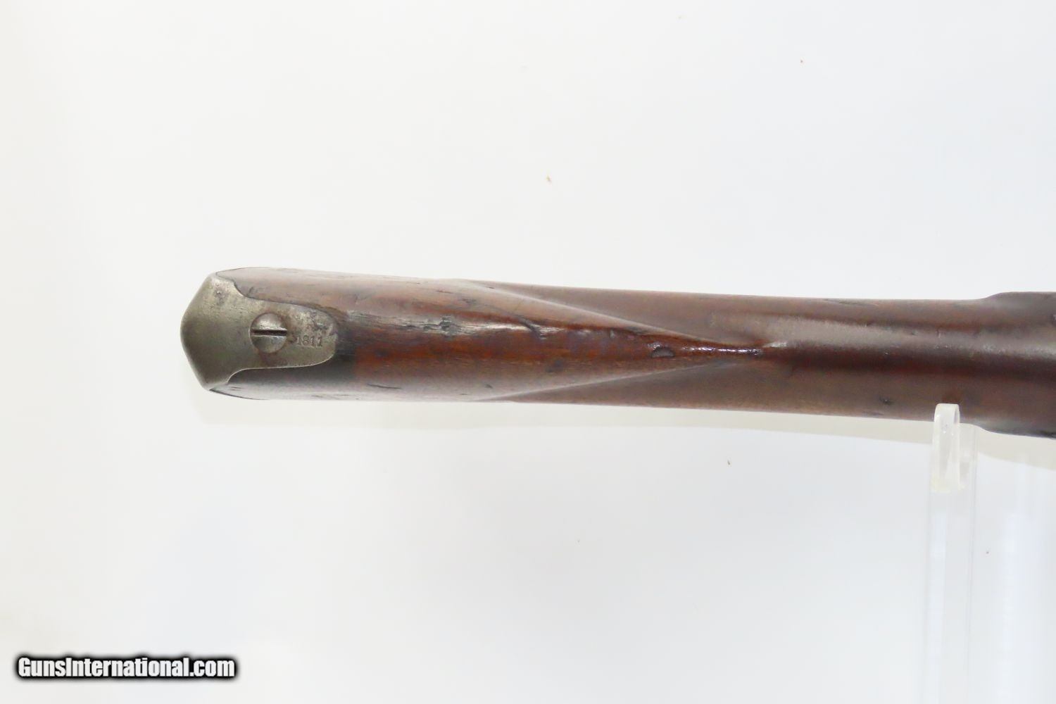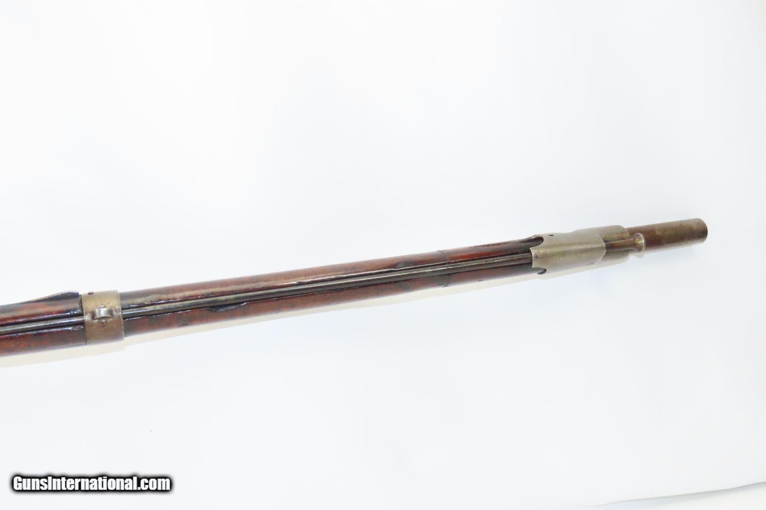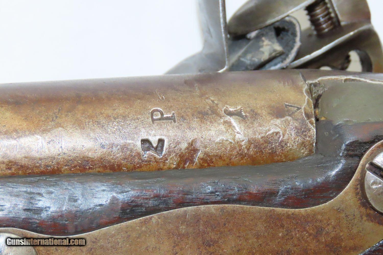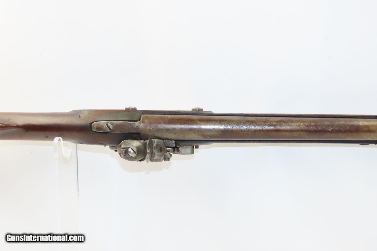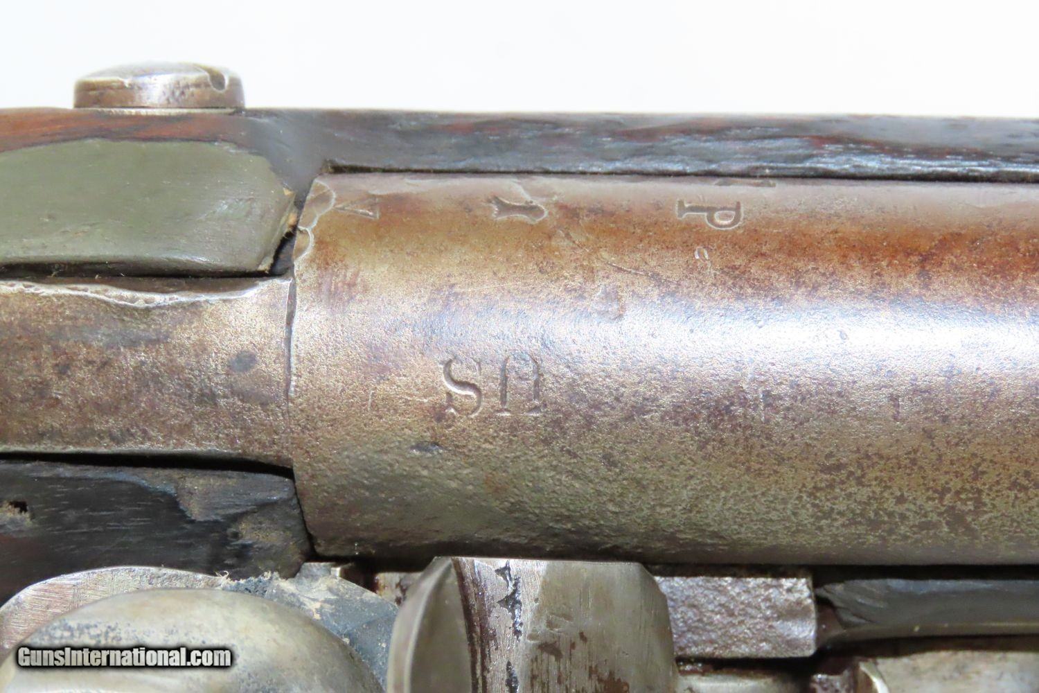Description: Antique U.S. SPRINGFIELD ARMORY Model 1795 Flintlock WAR of 1812 Era MUSKET Early US Military Musket with “1810” Dated Lock & “1811” Buttplate Here we present an antique U.S. Springfield Model 1795 Flintlock Musket, manufactured circa 1811 at the Springfield Armory in Springfield, Massachusetts. The Model 1795 was a smooth bore, flintlock based musket and the first weapon system to be produced within the United States. It was designed very closely patterning the French “Charleville” Flintlock Musket that was used to by the colonists against the British during the American Revolutionary War. Springfield Armory produced 80,000 of these muskets, with Harpers Ferry responsible for another 70,000. Production of this musket ran from 1795 through 1818. She found her way into some several important American conflicts of the time, including the War of 1812 between the United States and the British Empire, the Mexican-American War, and even the Civil War. The 1795 would also be taken along by members of the American expedition led by Lewis and Clark from 1803 to 1806. Use of the 1795 was recorded as late as 1865 for the southern Confederate forces who were still fielding her late in the Civil War. The overall condition is good. Strong action (Reconverted). The bore is smooth and dark. Certainly a much used stock that remains solid. There is a cut/splice at the front of the fore stock. “US” surcharged on the top of the barrel. View and proof marks on the left side. “1810” is dated on the lock and “1811” can be read on the butt plate tang. A great piece of very early US history! Own the original! This is a legitimate antique and not a reproduction. Barrel is 44-1/2 inches. Caliber: .69 Percussion Overall condition as seen in photos. Very Fast. Very Safe. FREE SHIPPING WORLDWIDE. Delivered directly to your door by express mail! Guaranteed AUTHENTIC & Includes CERTIFICATE OF AUTHENTICITY. ancestryguns $2645 #210370 SOLD Antique: Yes |