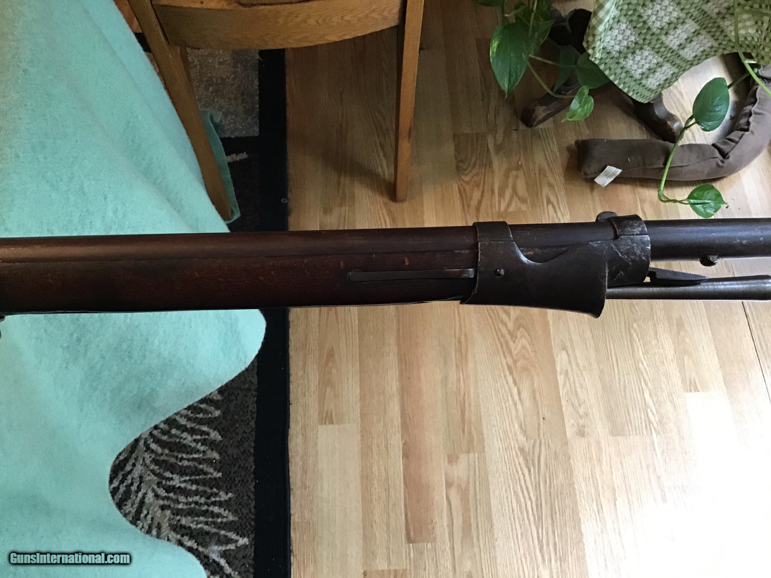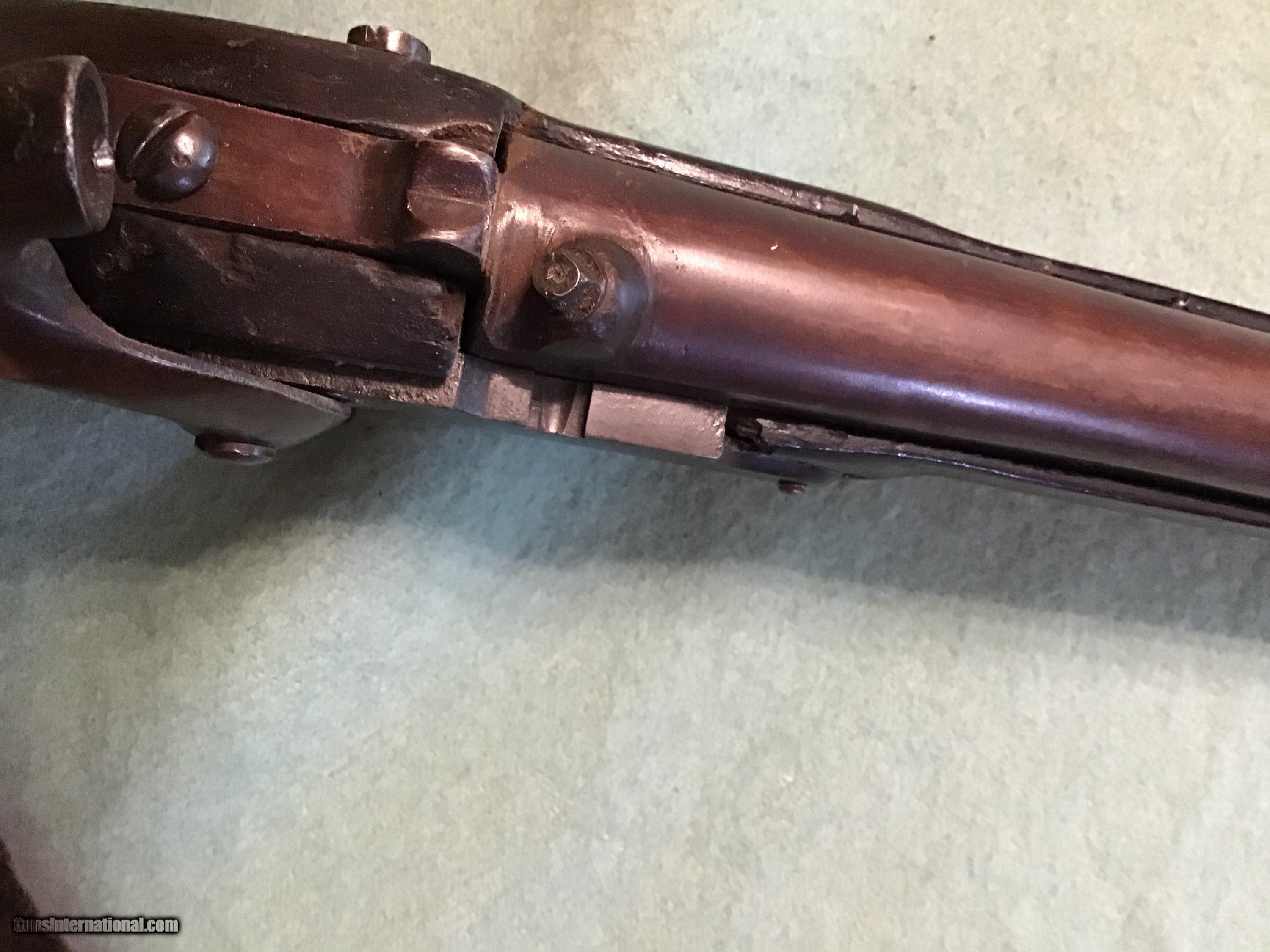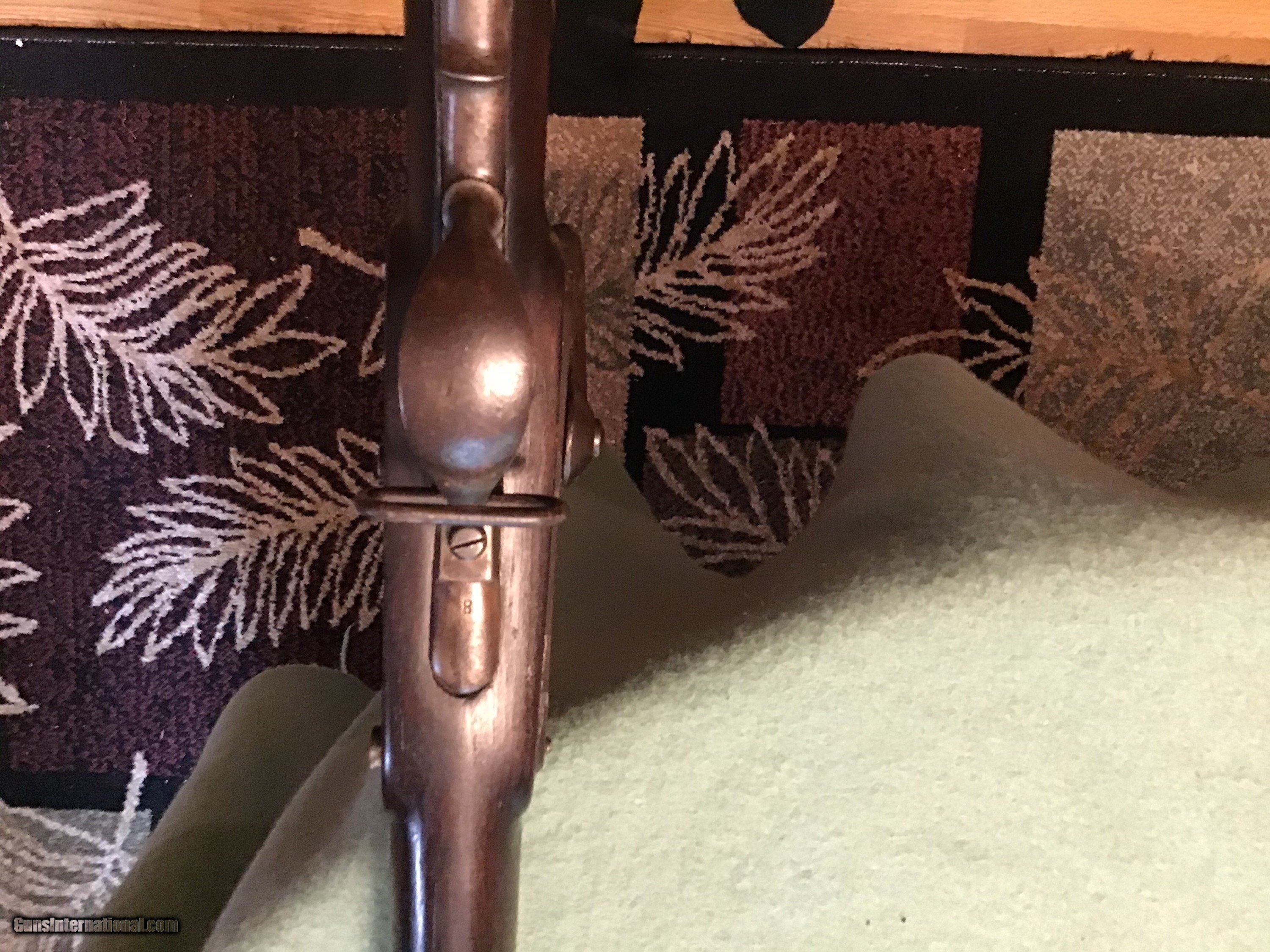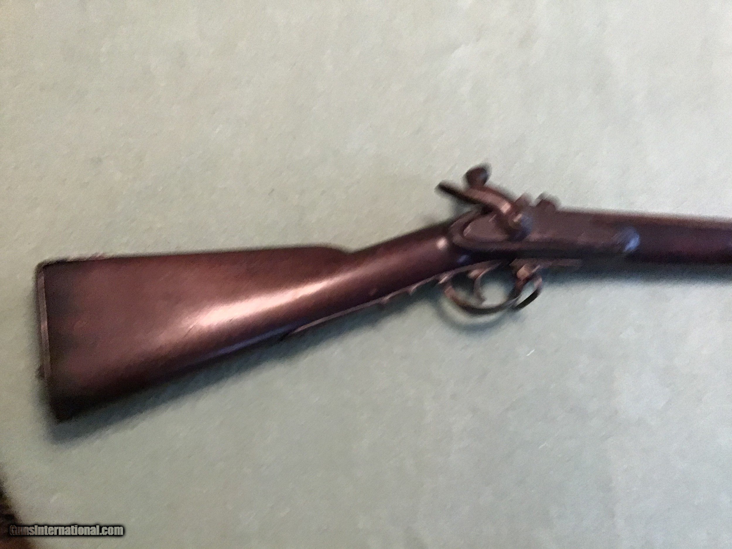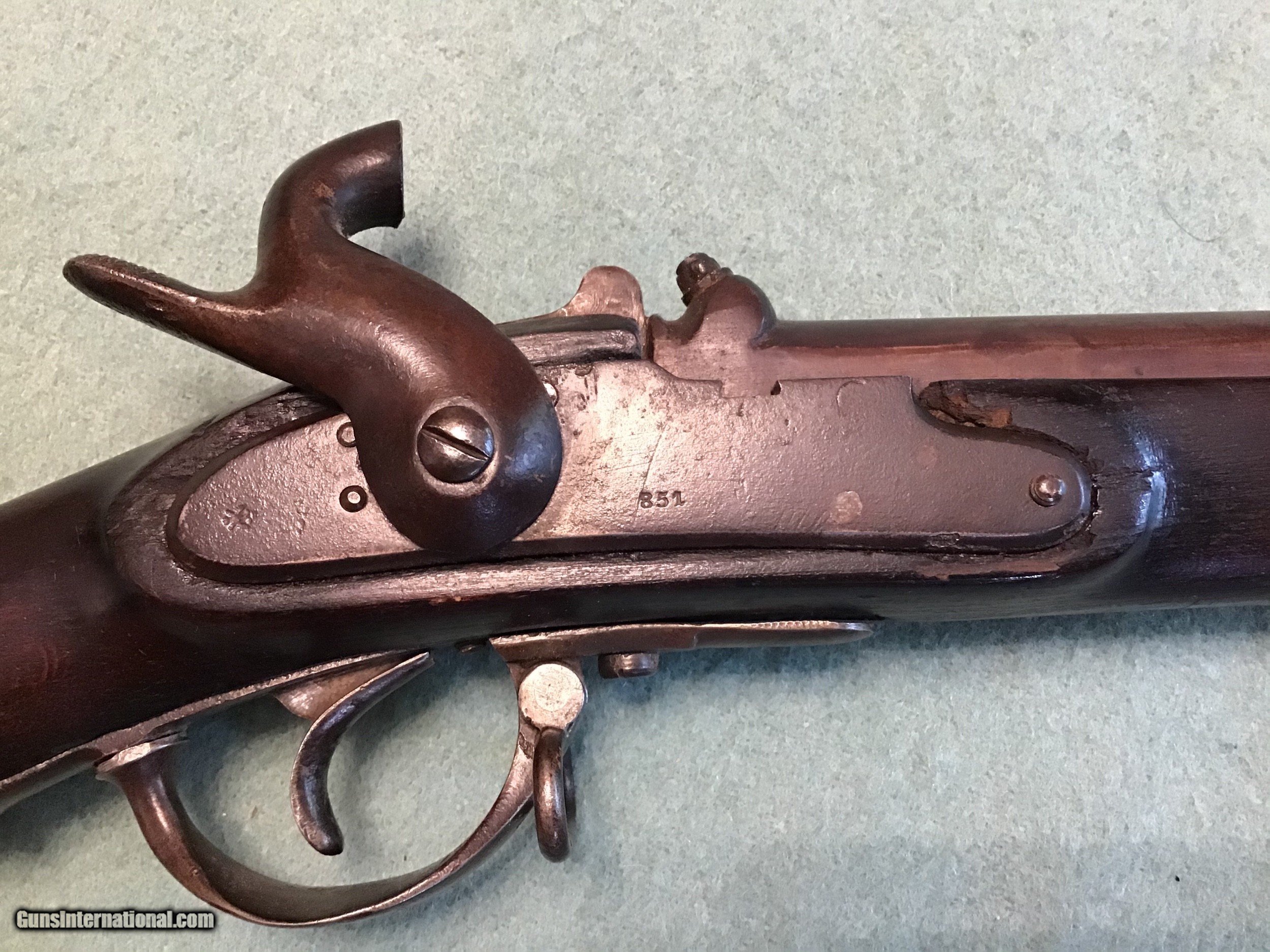 Description: On Hold Sale Pending Austrian M1842 Civil War import percussion approximately 70 caliber musket originally issued in tube lock and converted to percussion in the 1850s and most likely sold to the US or confederacy for use during the civil war. The lock is dated 1851 and functions fine. The full length barrel has the tang mounted rear sight and band front sight. The dark full 3 band wood stock is very good. All metal parts have smooth brown patina.. This musket appears complete with sling swivels and ramrod in very good original condition. Please feel free to contact me with any questions. Shipping will be actual cost approximately $50.00. On Hold Sale Pending SOLD Antique: Yes Manufacturer: Austrian Model: M1842 |