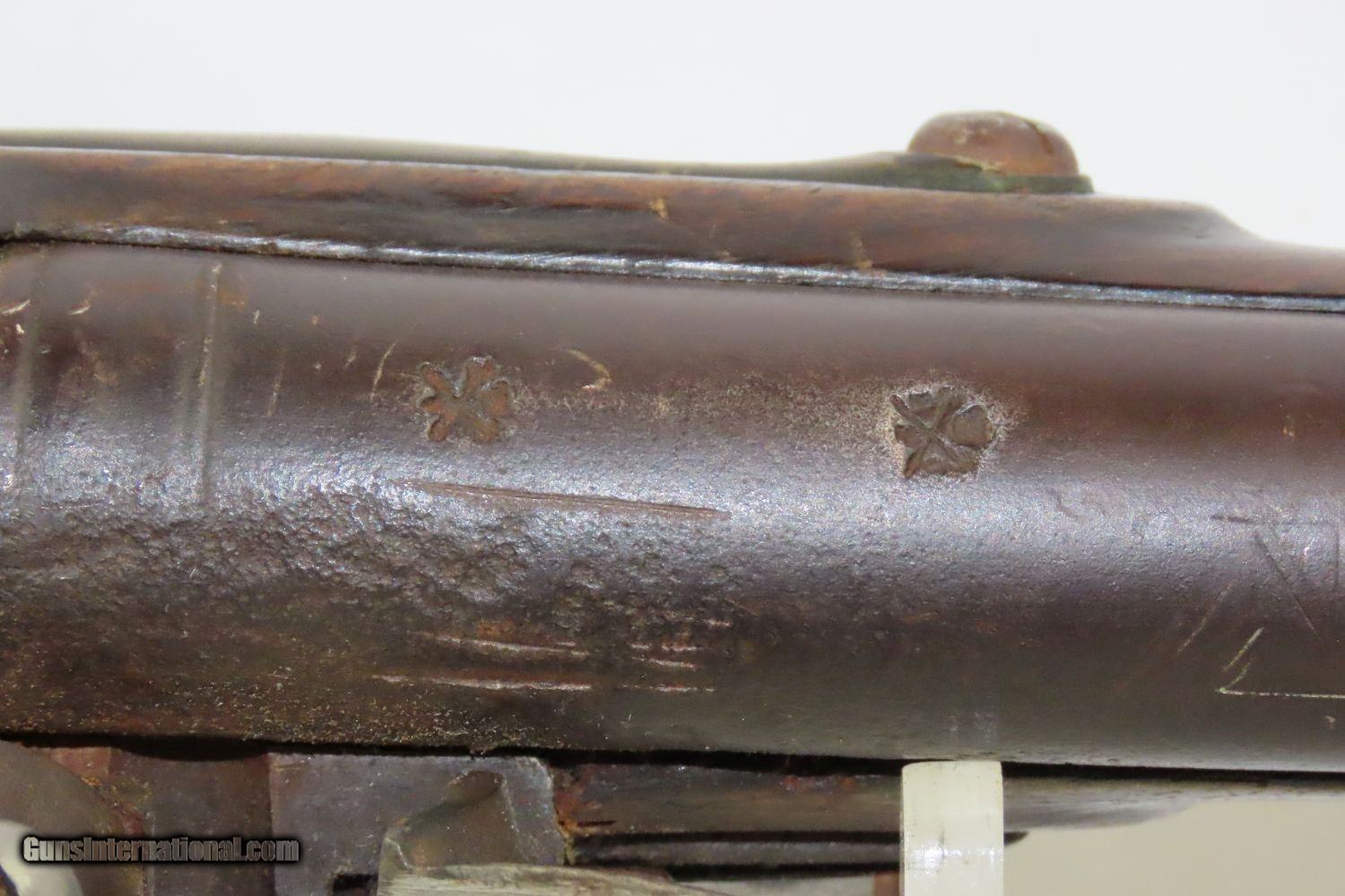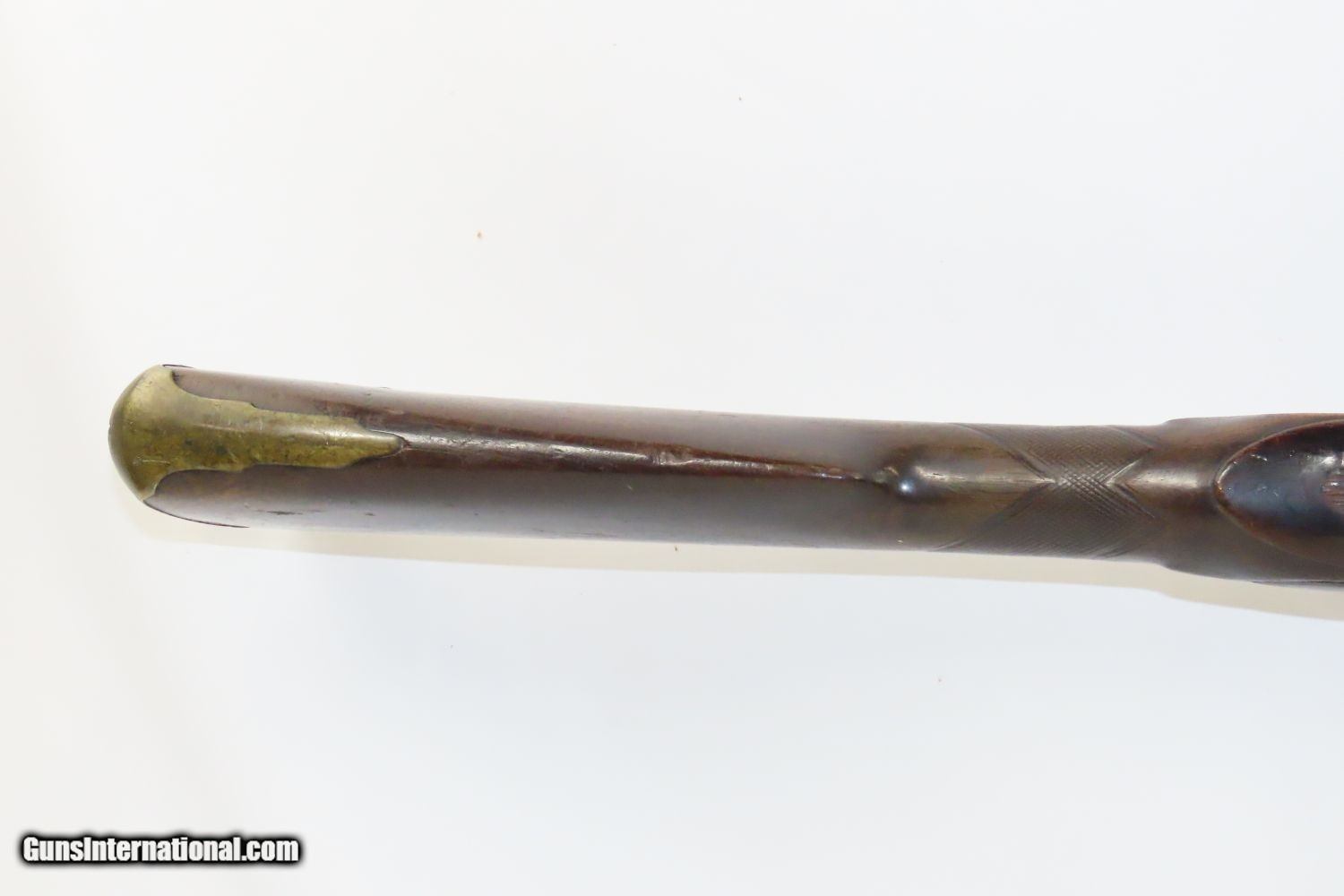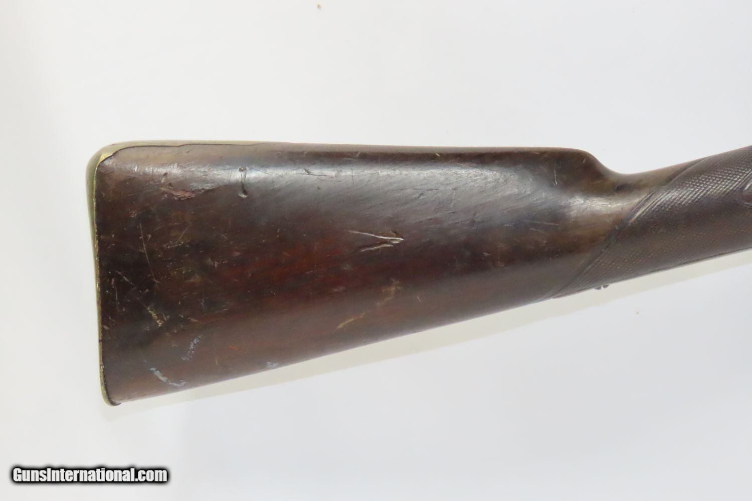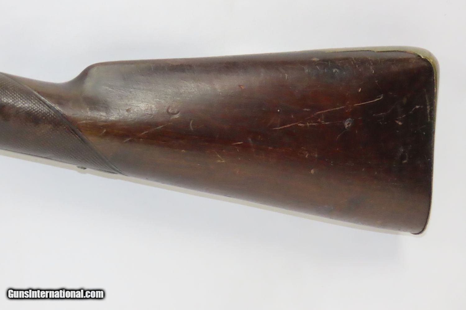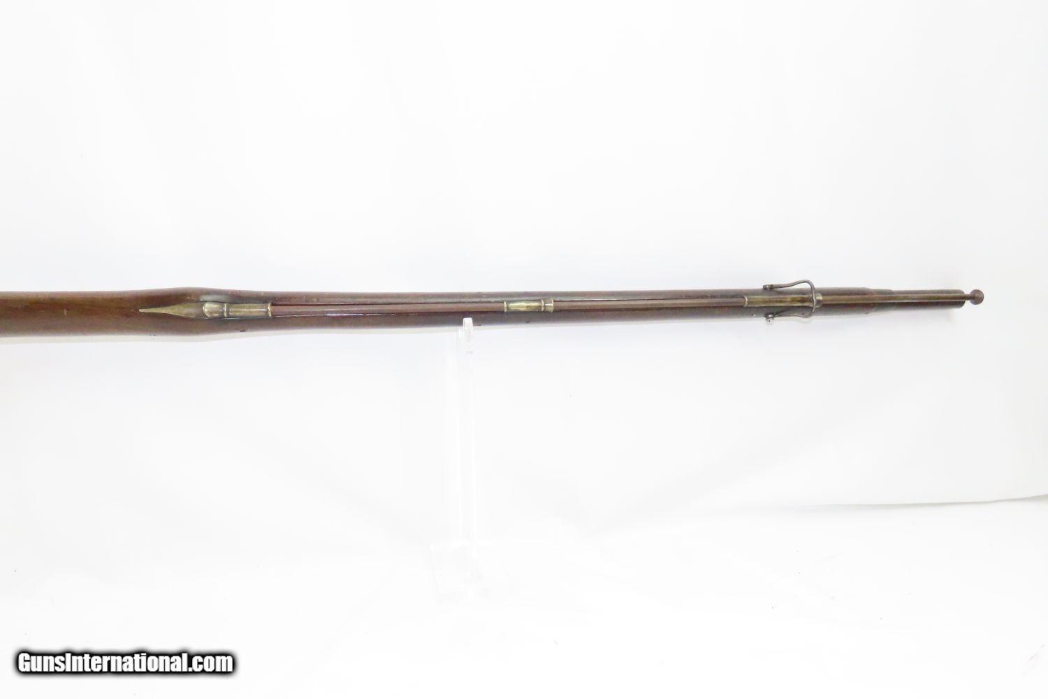 Description: BRITISH Antique BROWN BESS Officer Fusil .69 Caliber FLINTLOCK MUSKET 1800s With Ketland Lock & Birmingham Proofs Here we present an antique Brown Bess Flintlock Fusil, made in Birmingham, England circa the 1820s. The Brown Bess is the iconic British military musket of the flintlock era with a service life that stretched from the 1720s to the 1850s. It saw use not only in the British Isles and the Continent but in British colonies the world over, from Canada, to the American colonies, to the far reaches of Southeast Asia and Africa. This fusil would have been designed, at least initially, for the officer class and gentry, which were often one and the same. It is a lighter, smaller caliber musket with virtually the same aesthetic as the full-sized infantry musket. The full-sized guns were in .75 caliber while this one is in .68 caliber. The overall condition is good. This one would have been made as a flintlock, was converted to percussion, then was converted back to flintlock. Strong action. The smooth bore is in good shape. The stock is solid, though it has seen plenty of use and is missing a chip at the barrel tang. Lovely patina. There is also a “No6” marking on the top of the barrel and, of course, the Birmingham proof marks. The lock is a bit effaced but is a Ketland product and the entirety of the gun was likely their handiwork. Own the original! This is a legitimate antique and not a reproduction. Barrel is 40-1/4 inches. Caliber: .68 Flintlock Overall condition as seen in photos. Very Fast. Very Safe. FREE SHIPPING WORLDWIDE. Delivered directly to your door by express mail! Guaranteed AUTHENTIC & Includes CERTIFICATE OF AUTHENTICITY. ancestryguns $2245 #210618 SOLD Antique: Yes |