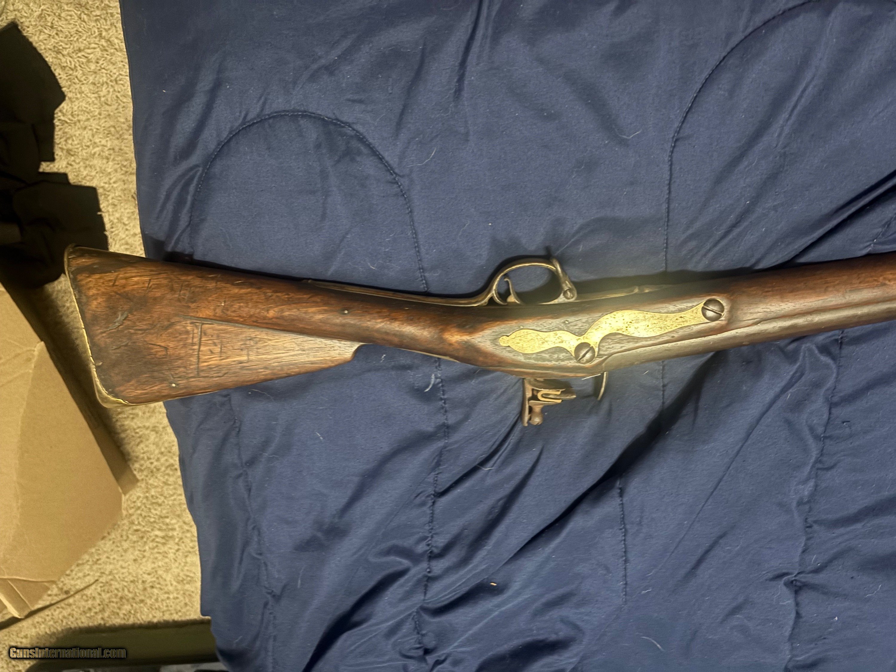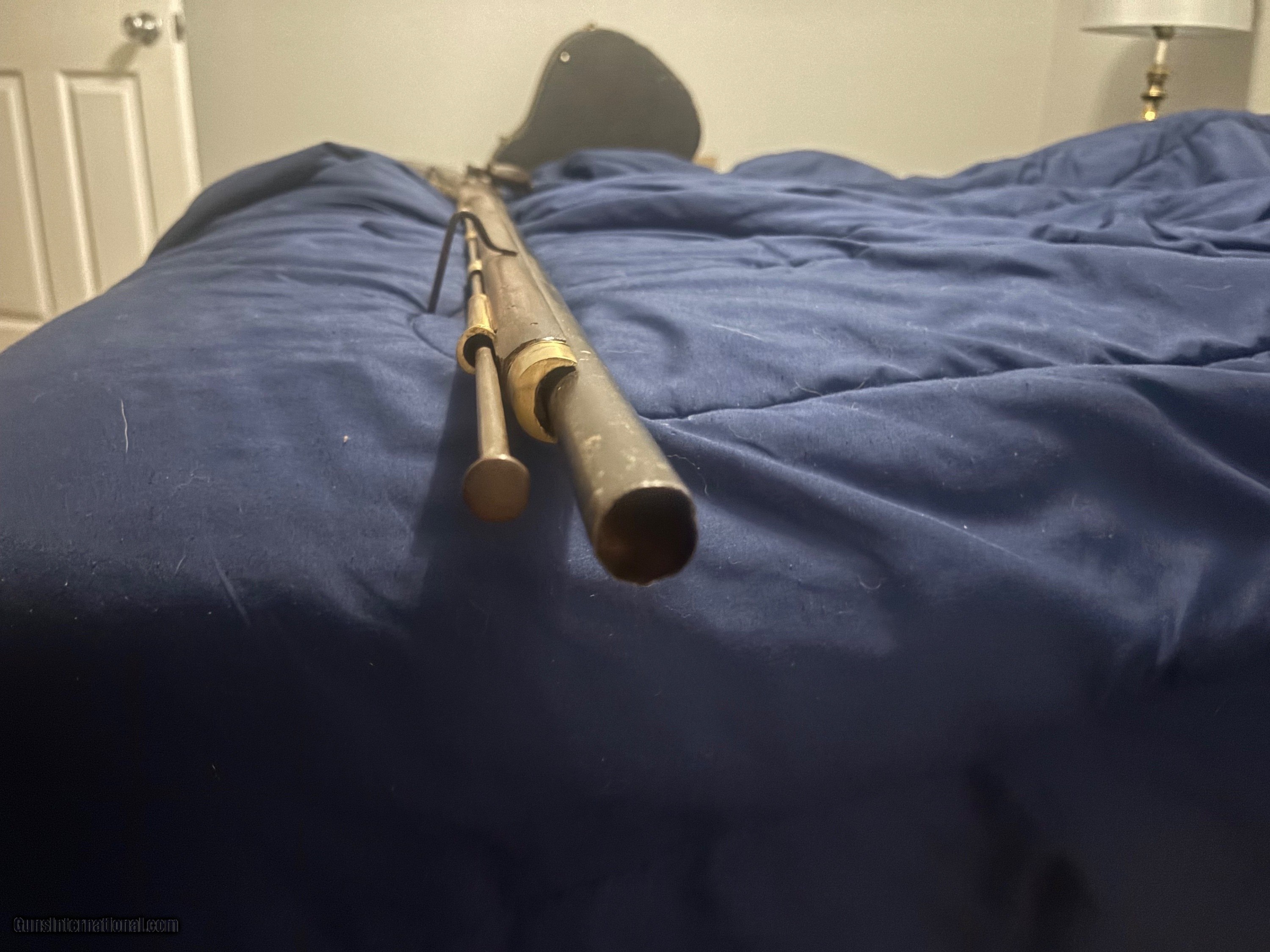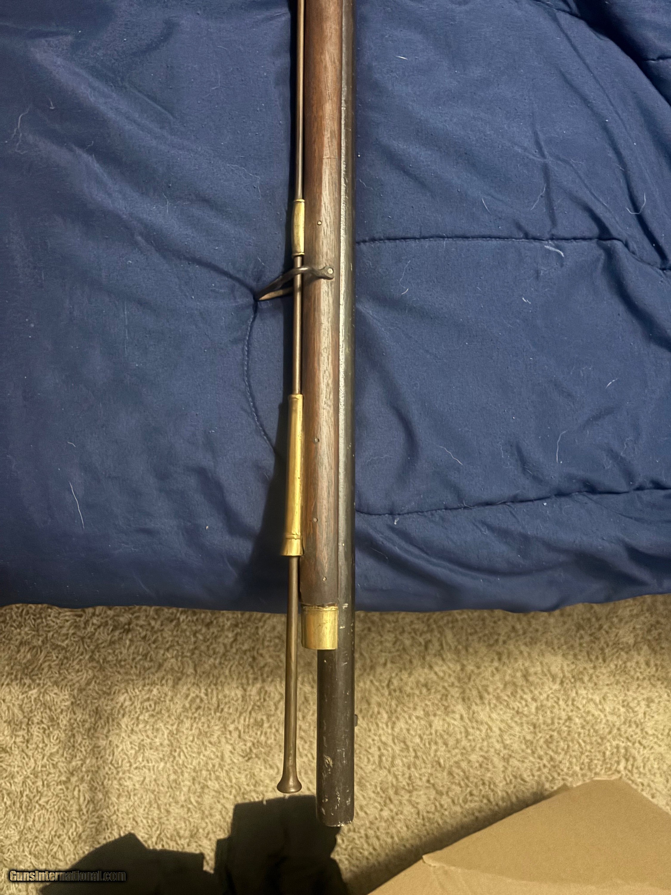 Description: I have for sell an original second model brown Bess. It is one of the earlier guns with the one screw behind the hammer. The gun is not perfect by any means hence the price. The gun is truly British and not a Nepal import. The hammer screw is missing, the stock has been restored from the midpoint forward. The end of the barrel is thin and somewhat bent. Feel free to ask any questions or any more pictures. Antique: Yes Rifle Caliber: .75 Price: $3,500.00 Shipping: $60.00 Buy Now Contact Seller |