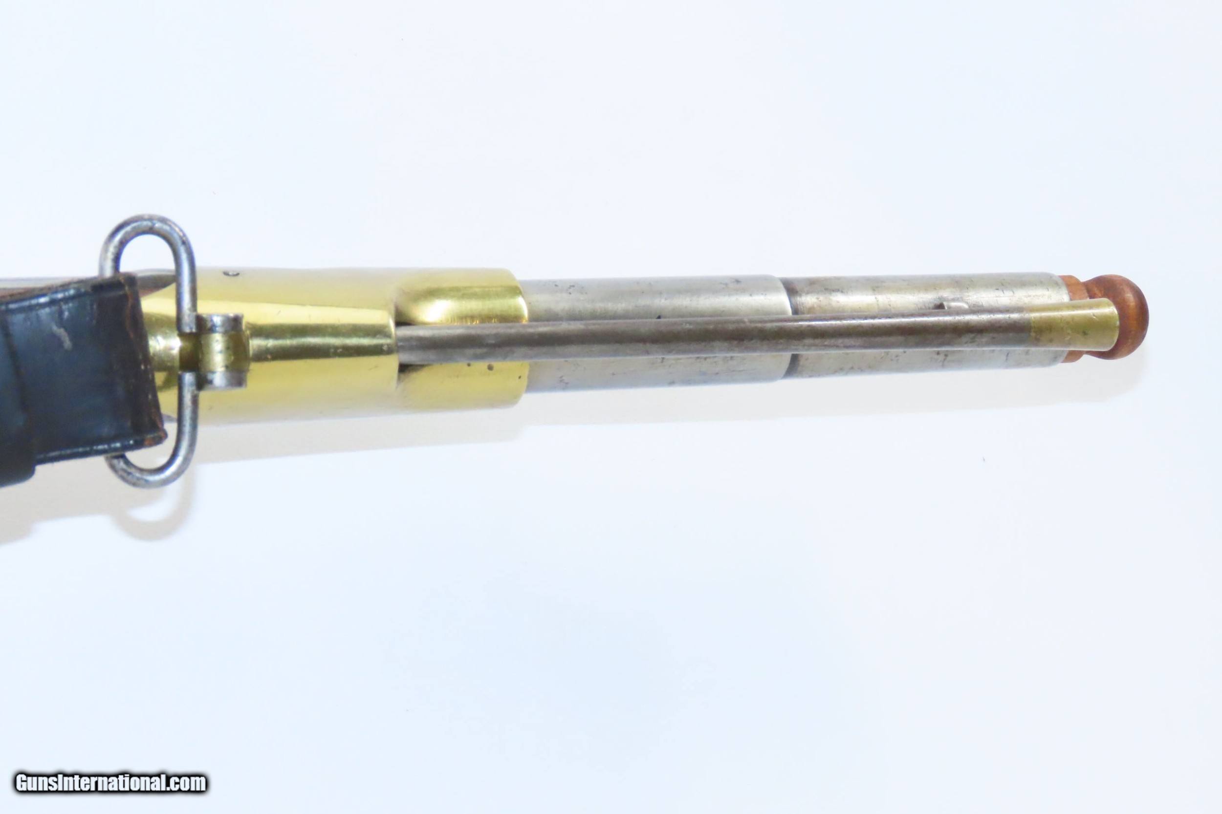 Description: CONFEDERATE Marked NEW YORK STATE Documented REMINGTON US Model 1841 Rifle Rare “Q” Marked GROSZ ALTERATION “Mississippi” Rifle Here we present an antique Confederate Marked New York State Documented U.S. Model 1841 Grosz Alteration “Mississippi” Rifle-Musket, made on contract by E. Remington in Herkimer, New York in 1848/49. Remington contracted with the U.S. Government for 20,000 of these “Mississippi” rifles, delivered between 1846 and 1854. In the case of this rifle, it was one of 5,000 held at the Watervliet Arsenal in New York in 1861 that was sent back to Remington for alteration to accept a bayonet. Since there weren’t enough saber bayonets available, 1,600 were then altered by Frederick Grosz to take a socket bayonet by turning down the muzzle, attaching a stud to the bottom of the barrel, and fitting a new small front sight. As if this rifle wasn’t scarce enough, it also has a “Q” marked just forward of the trigger guard, which is characteristic of Confederate guns that were sent to a Southern armory for work or refurbishment during the war. It would appear then, that this Union rifle was captured at some point (i.e. a battlefield pick-up) and continued to be used in the hands of the enemy. These were highly desirable guns on both sides. Southern states already had plenty of the Model 1841 in their arsenals prior to the war. As mentioned, this example was altered on contract with the State of New York by Frederick H. Grosz circa 1861 for use with the included U.S. Model 1840 socket bayonet. Grosz alteration Remington Model 1841 rifles are described on pages 167-168 of George D. Moller’s book American Military Shoulder Arms Volume III with the muzzle end of this exact rifle photographed on page 167. It also includes a Watervliet Arsenal leather sling and tools in the buttstock. Both sides used this rifle during the American Civil War. Government arsenals that were in the Confederacy at the time of the rebellion had a number of these in them. The overall condition is very good. Strong action. Bright and nicely rifled bore. Fine stock, remains solid and contains 2 cartouches on the left wrist. “1848” dated lock. “1849” dated barrel tang. “US” stamped lock, barrel, butt plate tang, and bayonet. Both the Watervliet sling and bayonet are in good shape. Excellent craftsmanship on the altered muzzle. “Q” stamped just in front of the trigger guard on the bottom of the stock. Own the original! This is a legitimate antique and not a reproduction. Barrel is 33 inches. Caliber: .54 Percussion Overall condition as seen in photos. Very Fast. Very Safe. FREE SHIPPING WORLDWIDE. Delivered directly to your door by express mail! Guaranteed AUTHENTIC & Includes CERTIFICATE OF AUTHENTICITY. ancestryguns $4115 #217050 SOLD Antique: Yes |