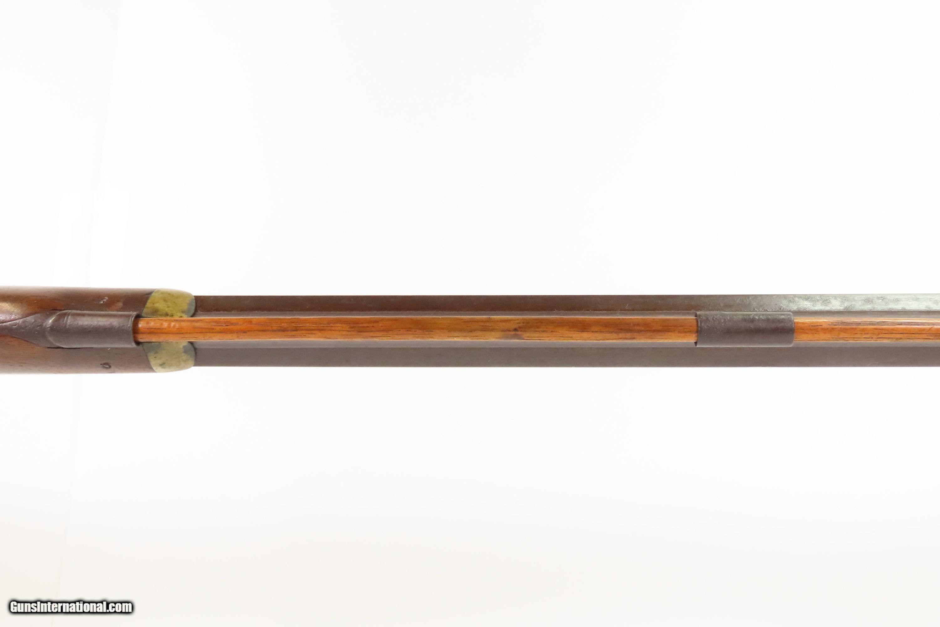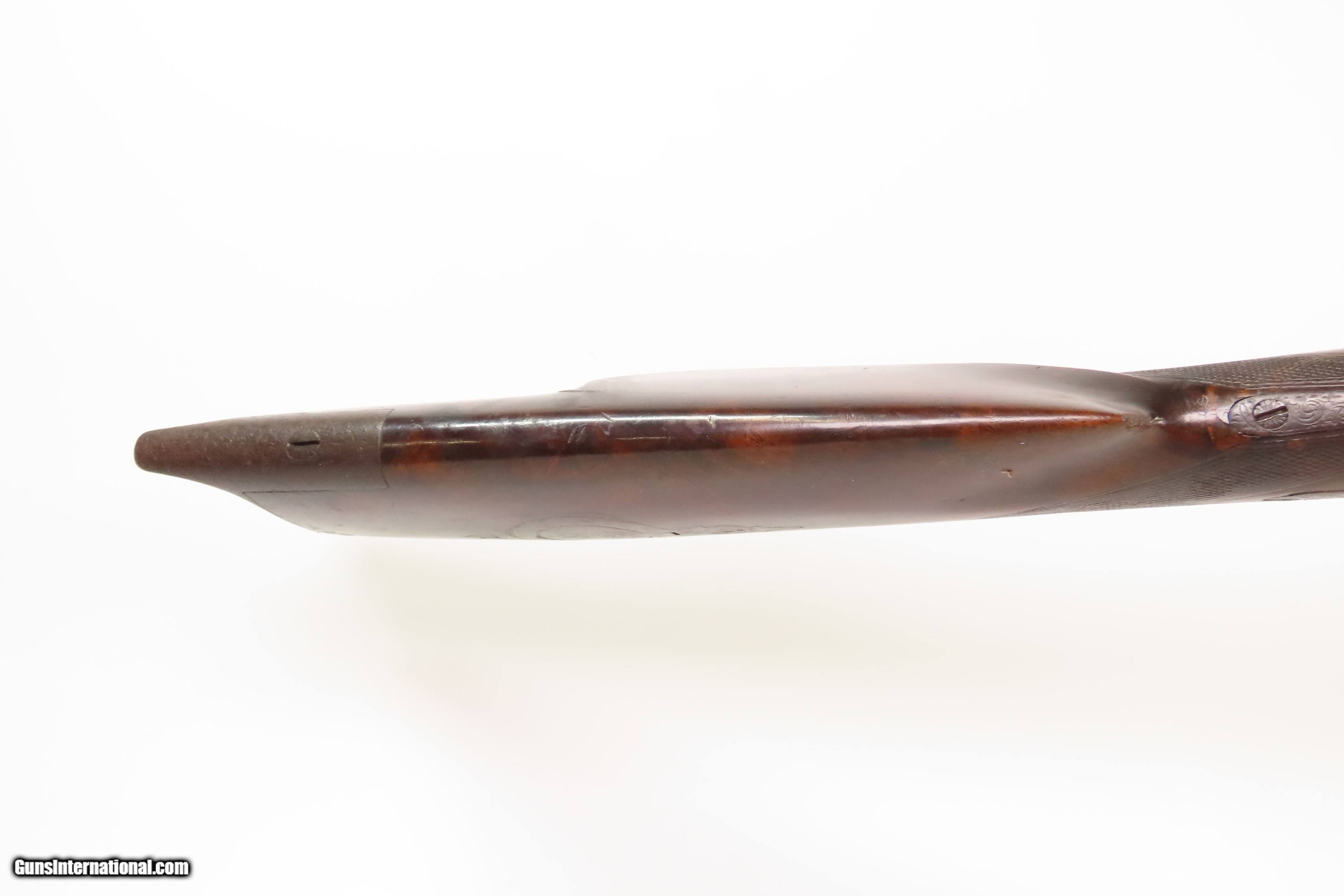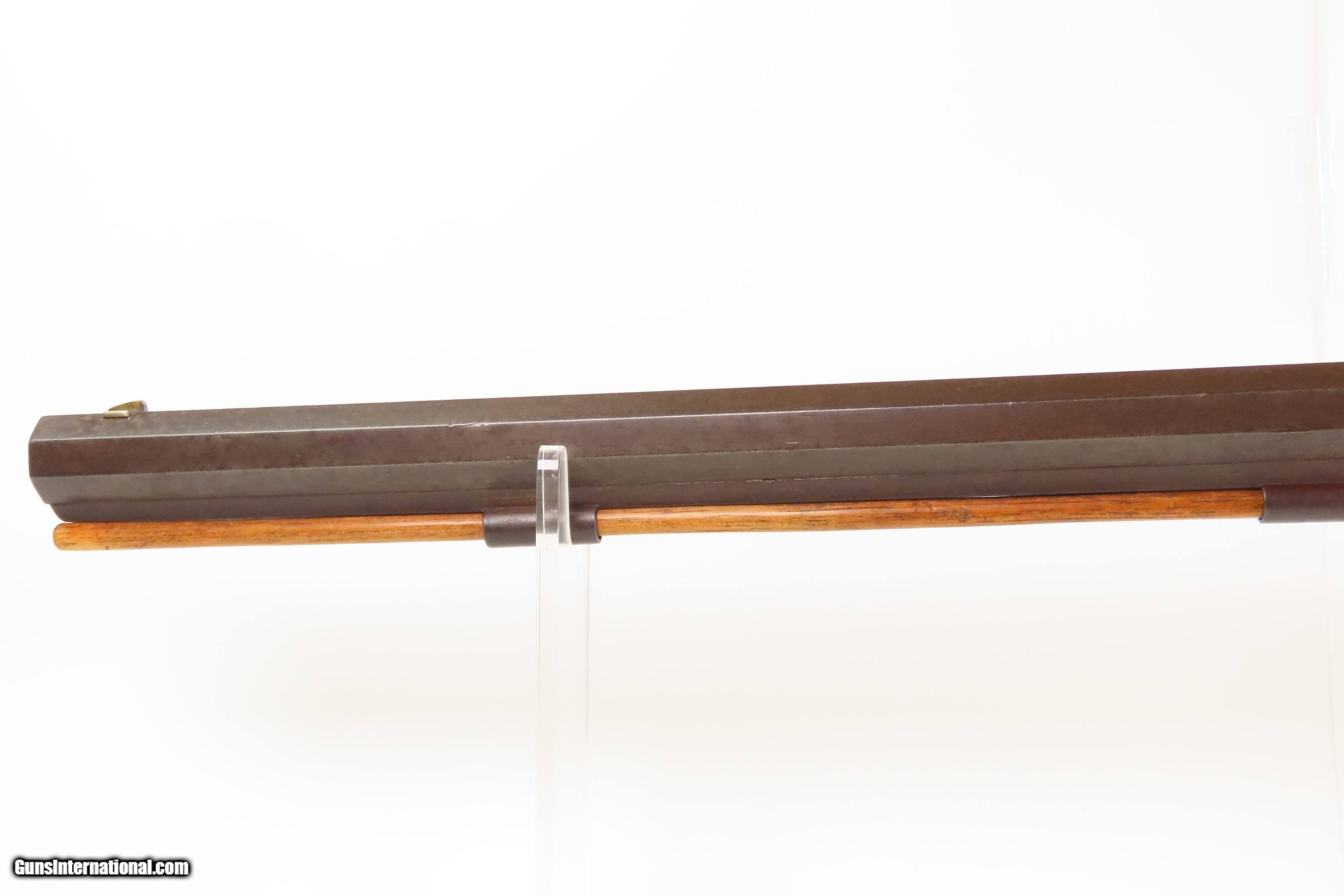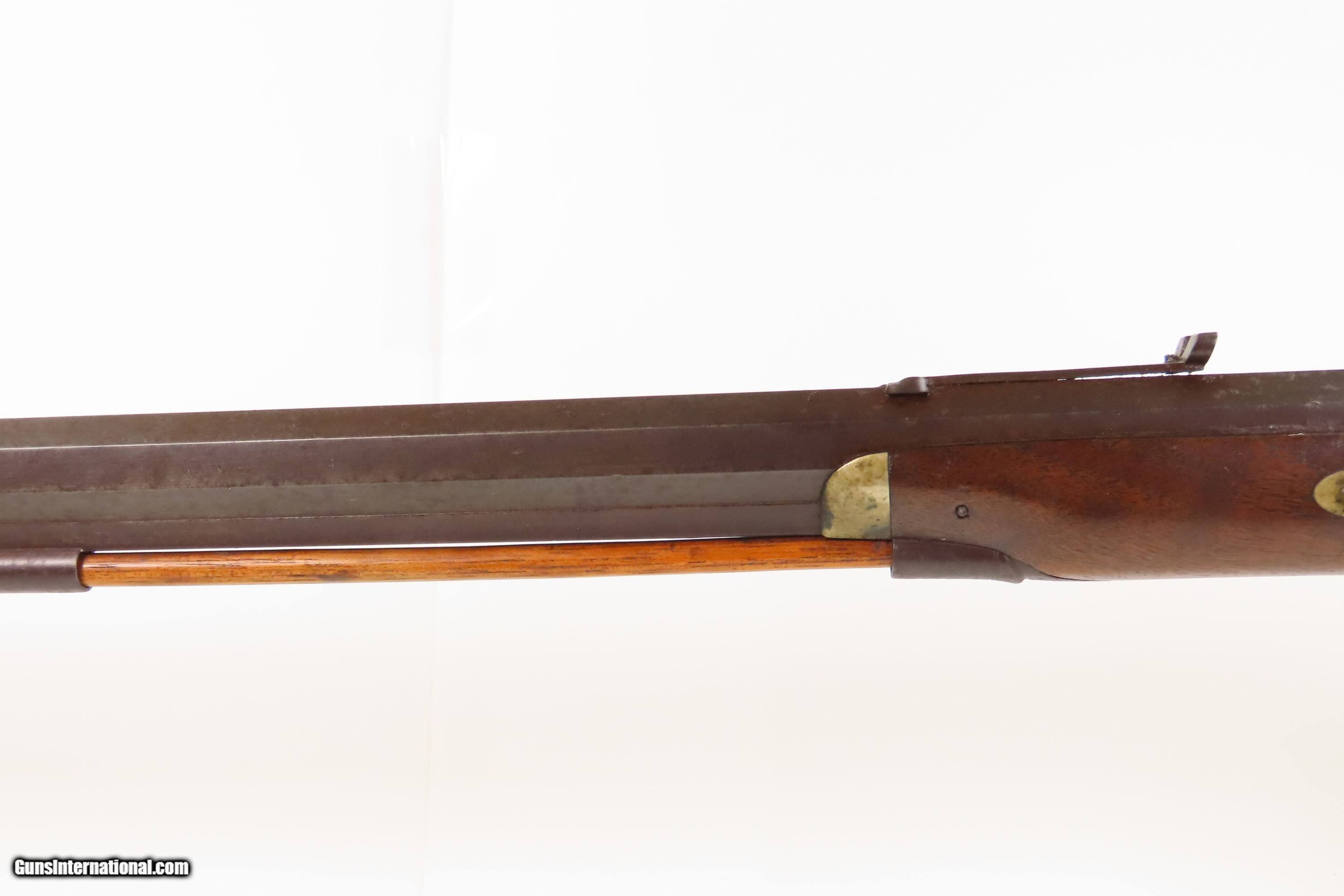 Description: ENGRAVED Antique JOHN WURFFLEIN Half Stock BACK ACTION .40 Percussion Rifle Made by the Founder of the SHUETZEN VEREIN Here we present an antique Engraved John Wurfflein Half Stock Back Action Percussion Rifle, made circa the 1850s. Wurfflein arrived in New York from Germany in 1844 and settled in Philadelphia, Pennsylvania. After applying for U.S. citizenship in 1848, he was granted his citizenship in 1851. He, along with his brother Andrew, also a gunsmith by trade, worked together for some time, and were two of the six that founded the Shuetzen Verein, a prominent German shooting club in Philadelphia, in 1846. Their work included rifles and pistols, including close copies of their Philadelphia neighbor Henry Deringer’s hit pocket pistol. John retired towards the end of the Civil War in 1864 and passed away in Philadelphia in 1884. These locks were called “back action” because the mainspring hangs behind the tumbler. The back action is often used in single and double rifles, and occasionally in single barrel shotguns where the need for strength requires as little steel as possible be removed from the bar of the action. The overall condition is good. Original brown patina. The bore is in good shape for its age. This example sports a solid stock, that has been lightly refinished, with an average amount of wear/repairs. Light engravings are present, albeit thinned. Legible markings. Own the original! This is a legitimate antique and not a reproduction. Barrel is 31-1/4 inches. Caliber: .40 Percussion Overall condition as seen in photos. Very Fast. Very Safe. FREE SHIPPING WORLDWIDE. Delivered directly to your door by express mail! Guaranteed AUTHENTIC & Includes CERTIFICATE OF AUTHENTICITY. ancestryguns $1450 #256043 Antique: Yes Price: $1,450.00 Buy Now Pay with ![]() Contact Seller |