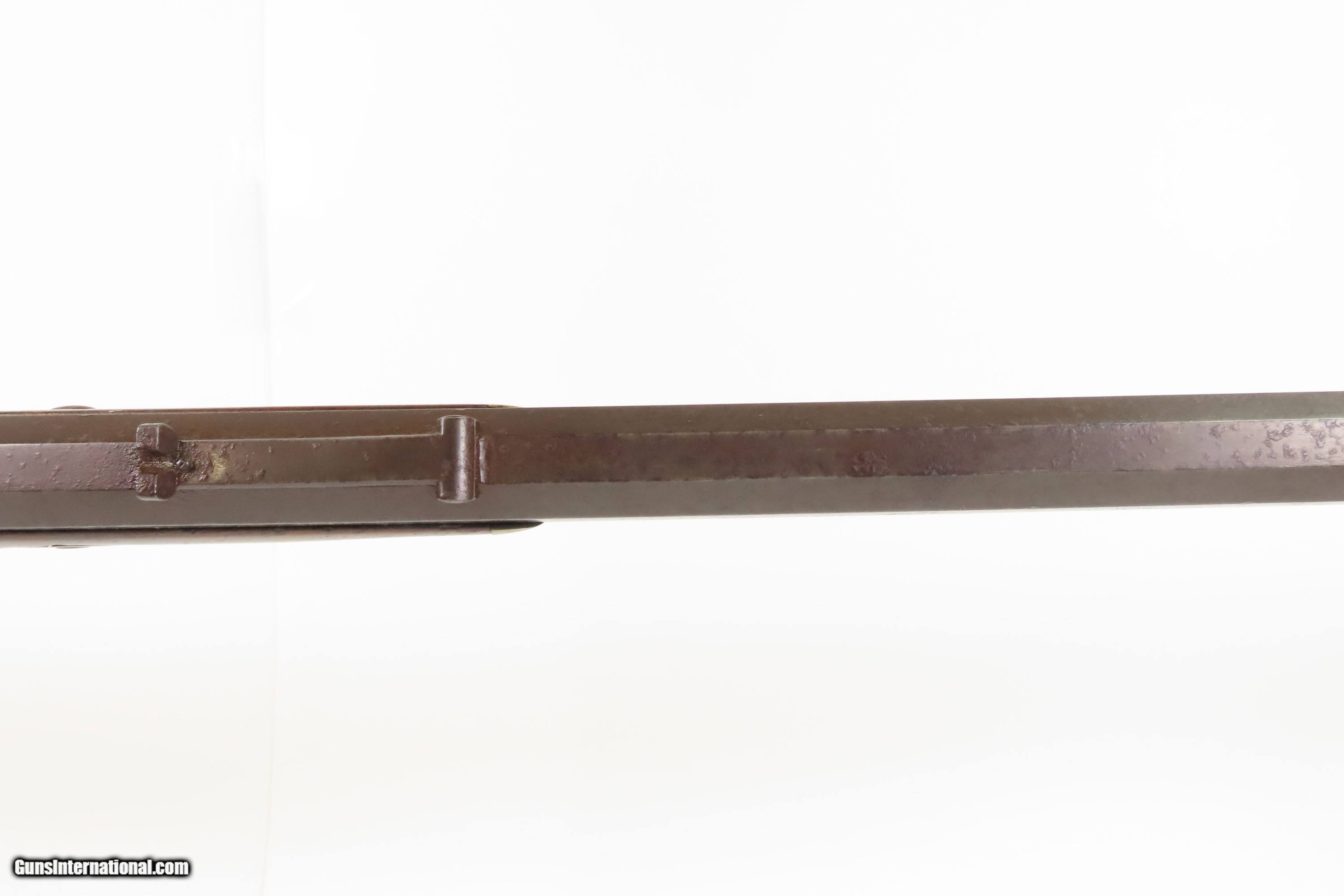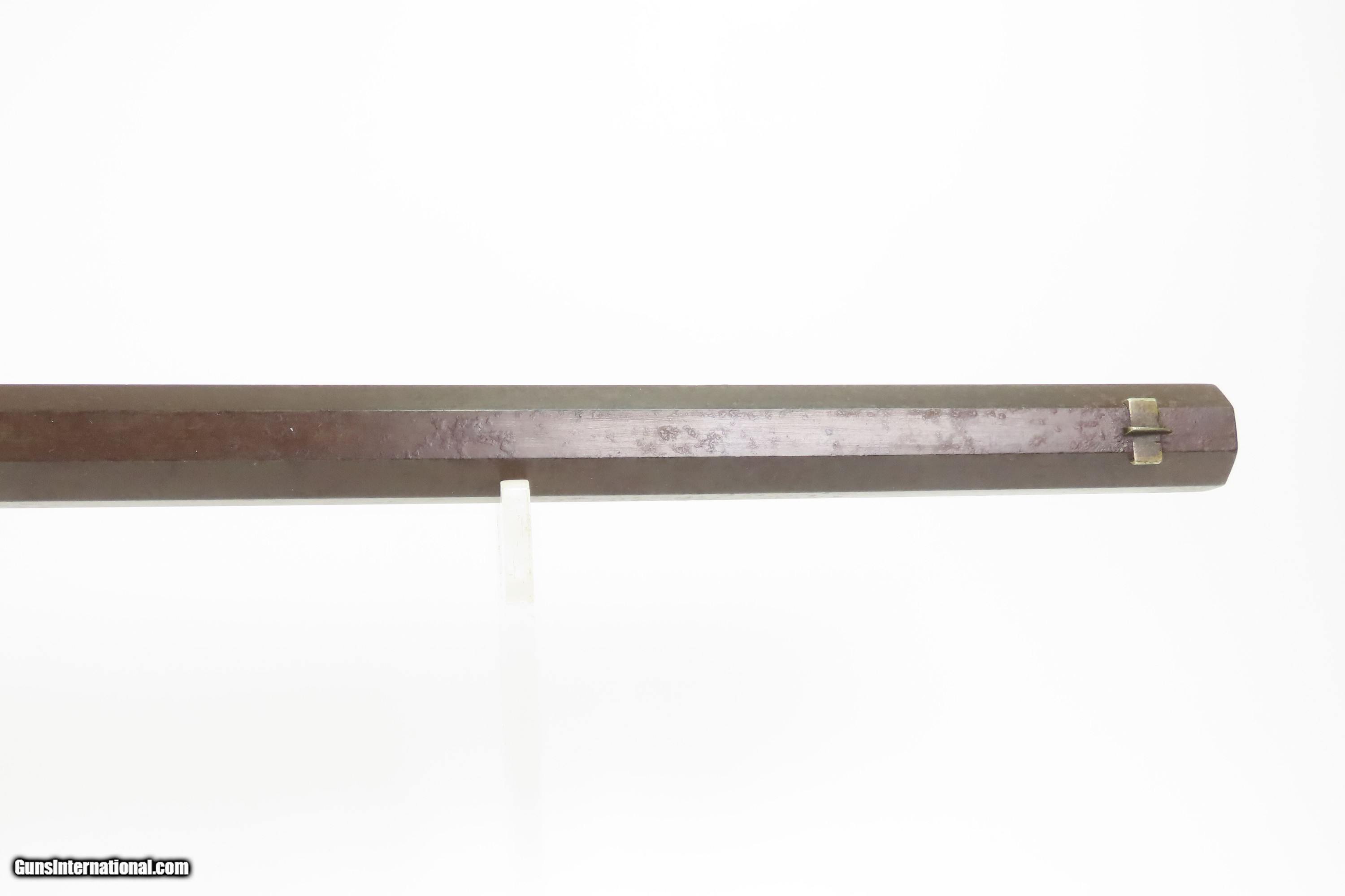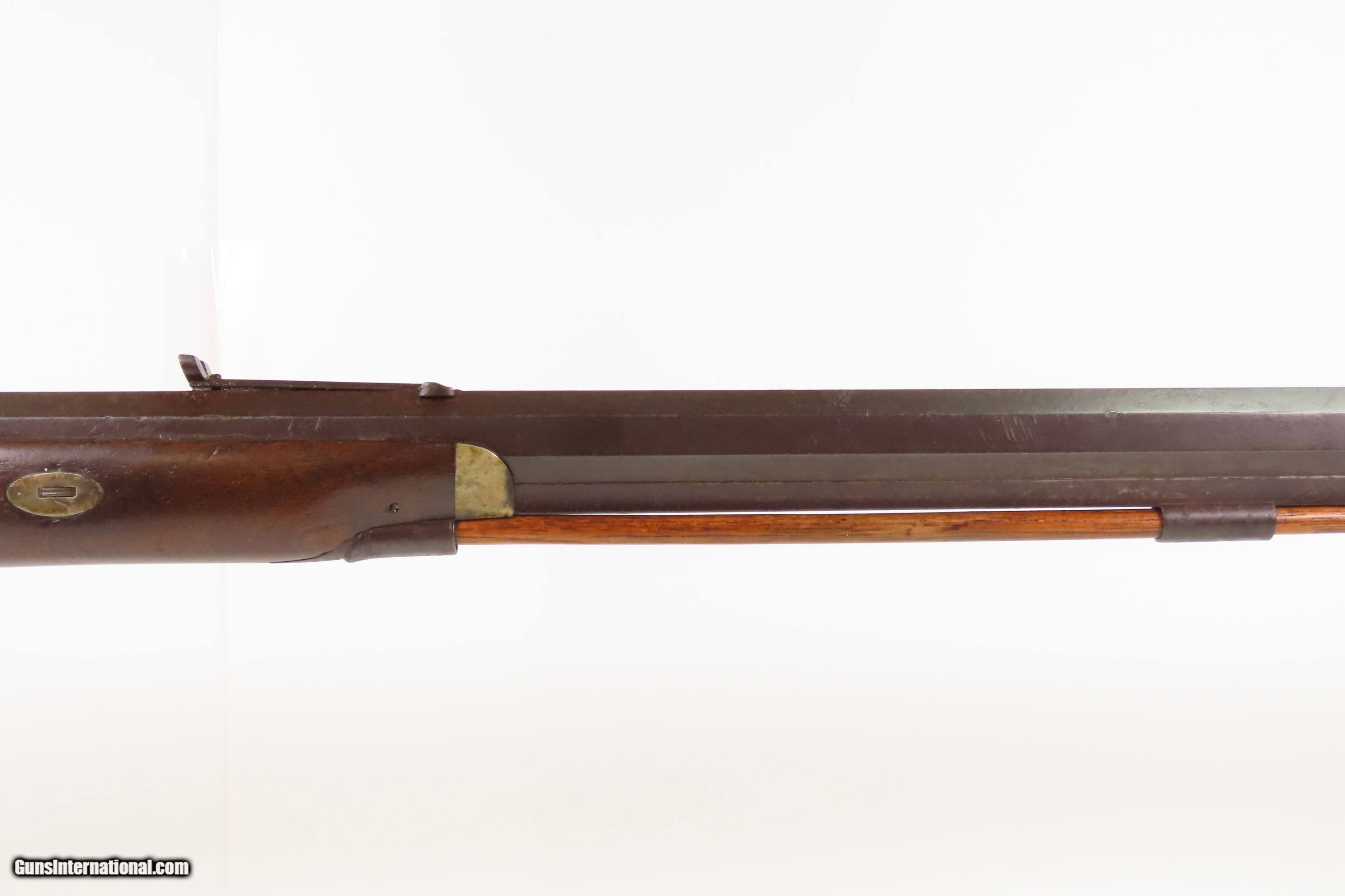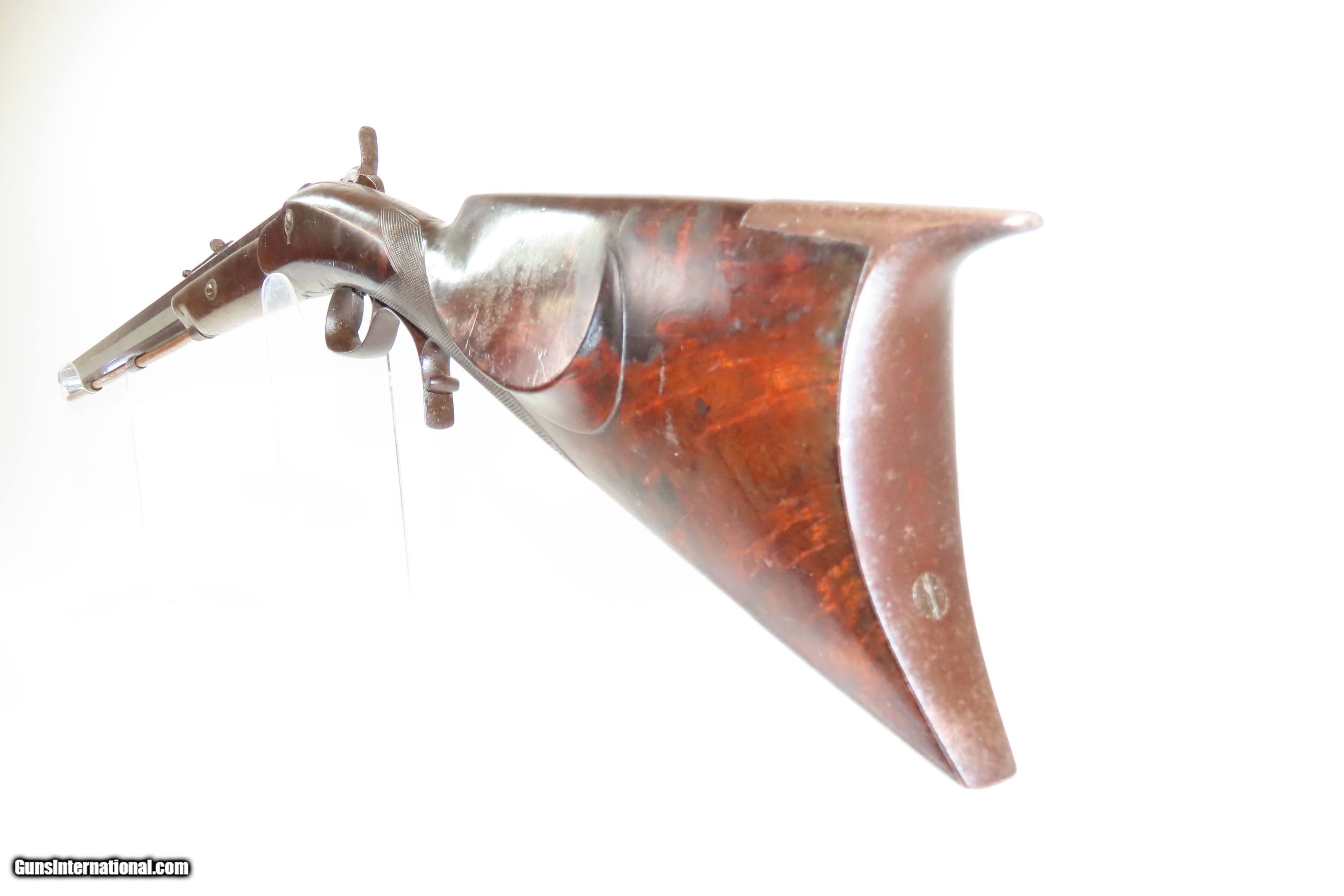 Description: ENGRAVED Antique JOHN WURFFLEIN Half Stock BACK ACTION .40 Percussion Rifle Made by the Founder of the SHUETZEN VEREIN Here we present an antique Engraved John Wurfflein Half Stock Back Action Percussion Rifle, made circa the 1850s. Wurfflein arrived in New York from Germany in 1844 and settled in Philadelphia, Pennsylvania. After applying for U.S. citizenship in 1848, he was granted his citizenship in 1851. He, along with his brother Andrew, also a gunsmith by trade, worked together for some time, and were two of the six that founded the Shuetzen Verein, a prominent German shooting club in Philadelphia, in 1846. Their work included rifles and pistols, including close copies of their Philadelphia neighbor Henry Deringer’s hit pocket pistol. John retired towards the end of the Civil War in 1864 and passed away in Philadelphia in 1884. These locks were called “back action” because the mainspring hangs behind the tumbler. The back action is often used in single and double rifles, and occasionally in single barrel shotguns where the need for strength requires as little steel as possible be removed from the bar of the action. The overall condition is good. Original brown patina. The bore is in good shape for its age. This example sports a solid stock, that has been lightly refinished, with an average amount of wear/repairs. Light engravings are present, albeit thinned. Legible markings. Own the original! This is a legitimate antique and not a reproduction. Barrel is 31-1/4 inches. Caliber: .40 Percussion Overall condition as seen in photos. Very Fast. Very Safe. FREE SHIPPING WORLDWIDE. Delivered directly to your door by express mail! Guaranteed AUTHENTIC & Includes CERTIFICATE OF AUTHENTICITY. ancestryguns $1450 #256043 Antique: Yes Price: $1,450.00 Buy Now Pay with ![]() Contact Seller |