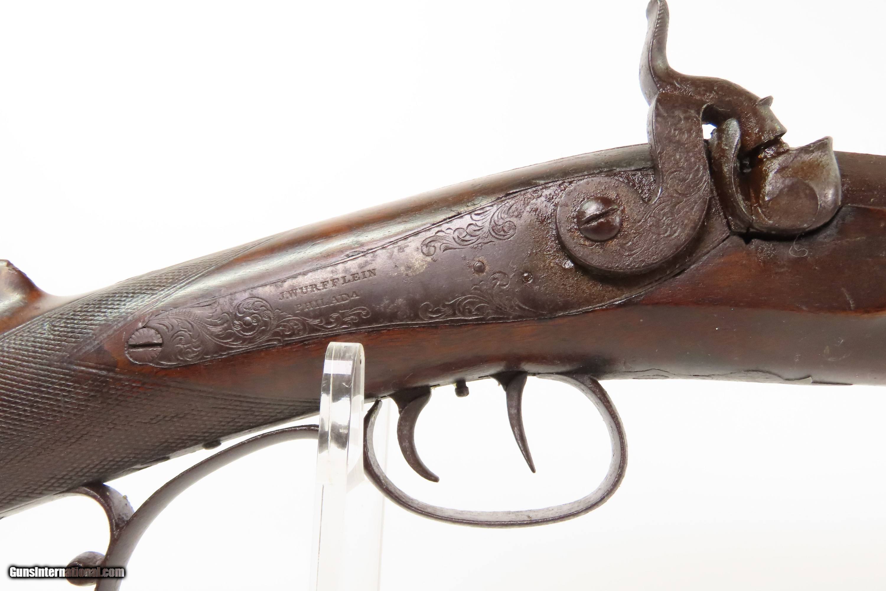 ENGRAVED Antique JOHN WURFFLEIN Half Stock BACK ACTION .40 Percussion Rifle Made by the Founder of the SHUETZEN VEREIN