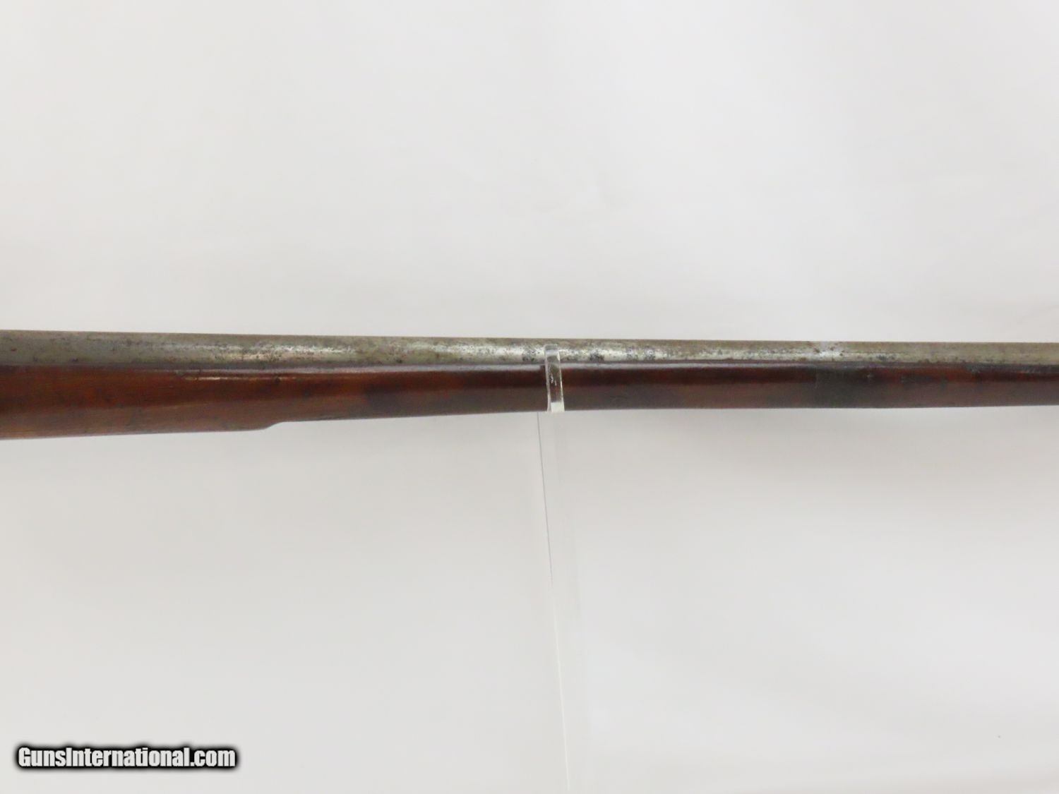 Description: GERMANIC Antique WHEELLOCK Military MUSKET Continental Europe 30 Years War Fascinating European Weapon from the 16th / 17th Century Here we present what is likely an antique Germanic Wheellock Rifle made circa the late 16th to early 17th century, in the German states. The wheellock rifle was developed in Europe in the late 15th or early 16th century, though exactly who developed it is unknown. Leonardo da Vinci produced an early sketch of a wheellock mechanism mounted on a rifle as part of a series of military design commissioned for the Duke of Milan somewhere around 1490. Another early depiction of the wheellock was drawn by Martin Loffelholz of Nuremberg, Germany in 1505, though it shows as being used as a tinder lighter rather than a rifle. A German gunsmith named Johann Kiefuss is often credited with inventing the wheellock in 1517, although there is little evidence of this and is believed to have originated from legend. In 1517, Emperor Maximillian I issued a decree outlawing the civilian use of such guns within the Holy Roman Empire. Some of the earliest surviving examples of these rifles using the wheellock mechanism were made in Italy, probably around the early 1520s. Due to the expense of wheellock weapons, the matchlock remained the standard type of ignition system until the invention of the flintlock. The wheellock was at its zenith during the Thirty Years War, which involved much of Continental Europe and beyond. This piece features what would have been a full-length stock, which was shortened at some point. The lock is large with a flat face and flat bevels around the tail. The stock follows the lower contours of the lock for that pregnant look forward of the trigger guard. The butt stock is relatively narrow with a thick wrist and some unexpectedly graceful contours where the wrist meets the comb. The iron butt plate is marked “82”. The stock is marked “526” just above the lock in what looks to be a later inventory number for a museum or other collection. The left stock flat and the wrist show a very old repair, and, oddly, the comb of the stock is smattered with dozens of differently sized metal fragments. The barrel is round and over 41 inches long. The bore is smooth and .67 caliber. This is a fascinating piece of history that probably has a book full of stories it could tell. The overall condition is good. The wheel has good spring tension. The bore is smooth, dark and dusty. A rare opportunity to own a firearm that is several hundred years old, and one that was a steppingstone in firearms technology. Own the original! This is a legitimate antique and not a reproduction. Barrel is 41-1/4 inches. Caliber: .67 Wheellock Overall condition as seen in photos. Very Fast. Very Safe. FREE SHIPPING WORLDWIDE. Delivered directly to your door by express mail! Guaranteed AUTHENTIC & Includes CERTIFICATE OF AUTHENTICITY. ancestryguns $5400 #191043 SOLD Antique: Yes |